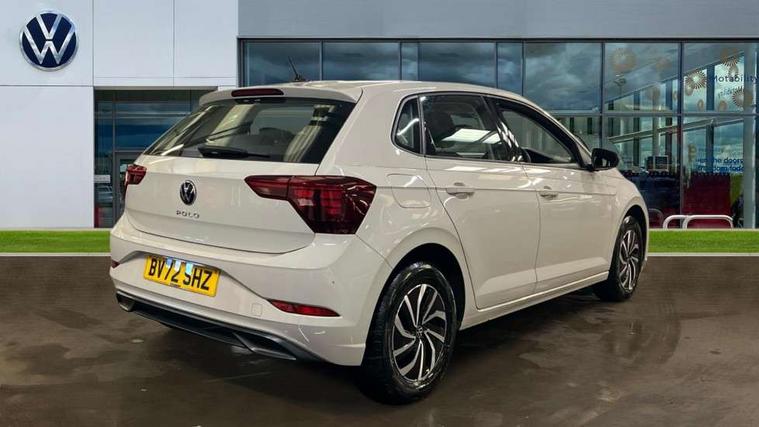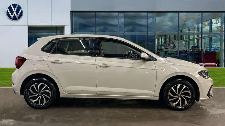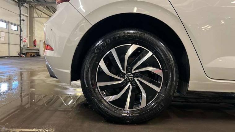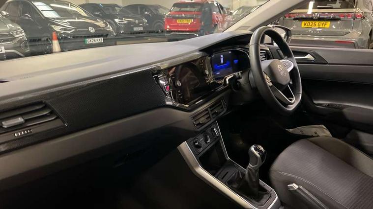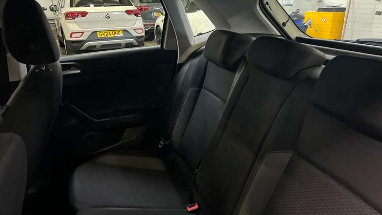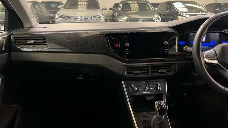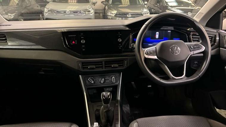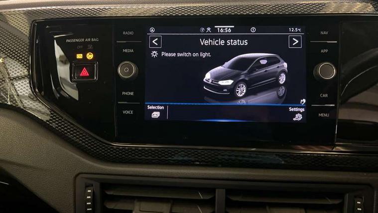 Adaptive cruise control without follow-to-stop and speed limiter, Bluetooth mobile phone interface, Driver alert system, Emergency call service, Front assist system, Power assisted speed sensitive steering, Preparation for We connect and We connect plus, Speedo and rev counter, electronic odometer, trip, service interval display and fuel gauge, Standard rear axle, Travel Assist - Lane keeping system and traffic jam assist, Travel assist including emergency assist, Trip computer, Warning signal and warning light for front and rear seatbelts not fastened, Washer fluid level indicator, Wireless app connect, Front wheel drive, Rear shock absorpion, Start-stop system with battery regeneration (recuperation - energy recovery during braking), DAB Digital radio, Diversity antenna for FM reception, Front and rear 6 speakers, Automatic dimming interior rear view mirror, Body colour bumpers, Body colour door handles, Body colour door mirrors, Electric front windows, Heat insulating darkened glass in side and rear windows, Heat insulating glass windscreen, Power folding adjustable/heated exterior mirrors and front passenger exterior mirror lowering function, Rain sensor, Rear electric windows, Rear fog light, Rear side wing doors, Rear windscreen washer and wiper with interval delay, Third brake light, 12V power socket in centre console, 2 front and 2 rear reading lights, 2 USB-C ports in the front, 2 USB-C charging sockets on the center console in the rear, 3 rear head restraints, 60/40 split folding rear seat and rear seat bench not split, Ceramique headliner, Chrome plated radiator grille inserts, air vent surrounds and light switch surrounds, Door and side trim panel, Driver and front passenger seat height adjustment, Driver/passenger sunvisors with illuminated vanity mirrors, Front centre armrest, Front seat backrest storage pockets, Front standard seats, Handbrake lever handle in leather, Hartley/Thomas cloth upholstery, Isofix child seat preparation easy-fit (for two outer rear seats, and front passenger seat) compatible with I-size, Leather trimmed gear knob, Luggage compartment cover, Luggage compartment floor, Luggage compartment lighting, Multifunction steering wheel, Single front passenger seat, Standard pedal cluster, Light and vision pack - Polo, 3 point height adj front seatbelts + pretensioners, 3x3 point rear seatbelts, ABS, Driver and front passenger airbag with front passenger airbag deactivation, Drivers and front passengers safety optimised head restraints, ESC (Electronic stability control) + EDL (Electronic Differntial lock) and ASR (Traction control), Extended and predictive pedestrian/ cyclist protection, Front curtain and side airbags with center airbag, Front disc brakes, Hill hold control, Manual child lock in rear doors, Rear drum brakes, Single tone horn, Tyre pressure loss indicator, Alarm with interior protection, Anti-theft alarm system with interior monitoring, backup horn, and towing protection, Anti-theft wheel bolts, Electronic engine immobiliser, Lava stone black gloss/matt decorative inserts in dash and front door panels, Low rolling resistance tyres,