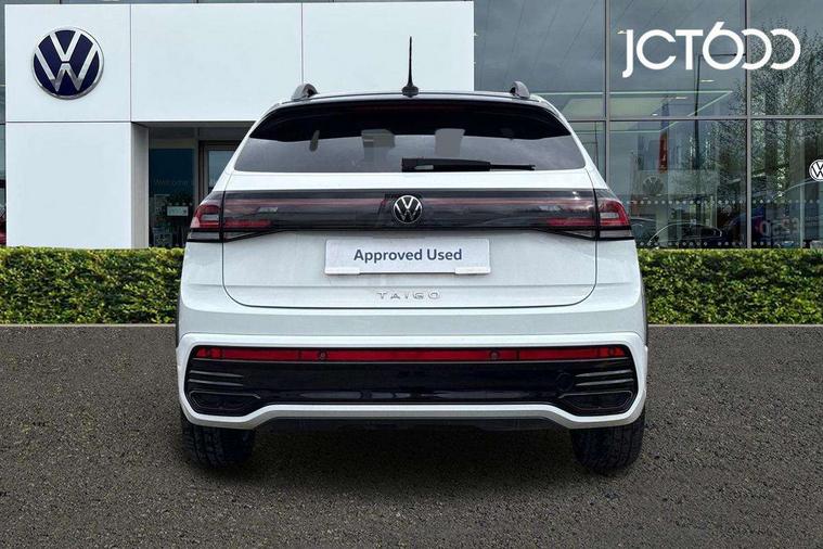 App-Connect including App-Connect Wireless, Digital cockpit pro - 10.25" high resolution TFT dash display screen with customizable menus and information, Driver alert system, Driving profile selection, e-Call (emergency call), Power Steering, Travel assist including emergency assist, Washer fluid level indicator, Wireless Charging including Bluetooth, Start-stop system with battery regeneration (recuperation - energy recovery during braking), XDS electronic differential lock for improved traction and handling, Digital radio reception (DAB+), Diversity antenna for FM reception, WeConnect plus, Aspherical driver's exterior mirror, Auto headlights, Body coloured bumpers, Body coloured exterior mirror housings and door handles, Bumpers in R-Line style, Electric windows, External USB type C socket and charging sockets, Front fog lamps with cornering function, Front scuff plates with R-Line logo, Headlight range control, LED headlamps, LED rear combination lamp, LED third brake light, Left convex exterior mirror, Power folding adjustable/heated exterior mirrors and front passenger exterior mirror lowering function, Rear fog light on one side, reversing light on both sides, Rear side wing doors, Rear wash/wipe with intermittent wipe setting, 12V socket in centre console, 2 front reading lights, 3 rear head restraints, 3 seat bench in 2nd row, Air care climatronic air conditoning system with active combination filter and 2-zone temperature control, Ambient lighting with logo projection, Black carpets, Black roof lining, Child seat anchor for child seat system i-Size, 2x top tether and child seat anchor in front on front passenger side, Chrome bezel for instrument cluster, vents, door handles + gear shift, Driver and front passenger seat height adjustment, Front + rear carpet mats, Front centre armrest, Front footwell illumination, Front sports comfort seats, Height and reach adjustable steering wheel, Interior ambient lighting and surround lighting, Karoso artvelours cloth upholstery, Leather trimmed gear knob, Leather wrapped multifunction steering wheel, Luggage compartment floor, Luggage compartment light, Lumbar support for driver's and front passengers seat, Seat covers in grey + titanium black, Single front passenger seat, Split folding backrest with centre armrest and unsplit rear seat bench, Stainless steel pedals, Storage compartment under front seats, Sun visors with illuminated vanity mirrors, Chrome Package - Taigo, Drivers assistance pack - Taigo, Light and Sight pack including High beam assist - Taigo, 2 x 3-point seatbelts/outer rear seats with ECE label, 3-point seat belts in front with pretensioner and height adjustment, 3-point seatbelt for centre rear seat, Driver and front passenger airbags with front passenger airbag de-activation, front side and curtain airbags, Driver and front passenger safety-optimised head restraints, Electronic stability control, Extended and predictive pedestrian/ cyclist protection, Front and rear disc brakes, Front curtain and side airbags with center airbag, Hill start assist, Manual rear child locks, Single tone horn, Tyre pressure loss indicator, Anti-theft alarm system with interior monitoring, backup horn, and towing protection, Anti-theft wheel bolts, Grey anodised matte decorative inserts in dash and front door panels, Low rolling resistance tyres,