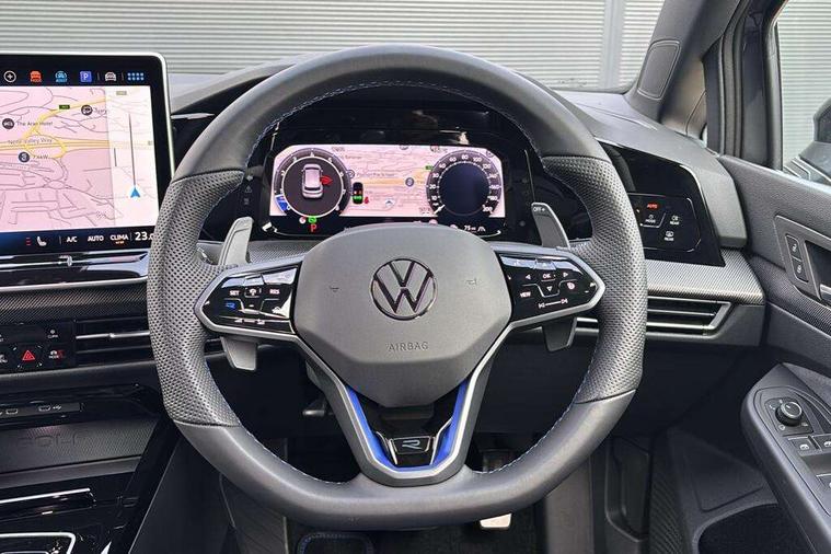 Activated carbon canister, Adaptive cruise control (ACC), Advanced driver attention and drowsiness monitor, Dynamic road sign display, E-Sim card for online connectivity, eCall emergency call system, Electronic maximum speed limit increased to 270 km/h, includes driving Modes 'drift' and 'special', larger roof spolier and GPS laptimer + G-Meter, Multi-color Digital cockpit pro, selection of different info profile possible, Multifunction front facing camera for distance control, Navigation system, Oncoming vehicle braking when turning including swerve support, Progressive steering, Side assist blind spot lane change system, rear traffic alert and exit warning system, Speed limiter, Speedo, rev counter, electronic odometer, trip, service interval display, exterior temperature and fuel gauge, Traffic jam assist, Voice enhancer and voice control, Warning signal and warning light for front and rear seatbelts not fastened, We connect plus preparation, We connect preparation, Wireless app connect, All wheel drive - 4Motion, Petrol Particulate Filter, Start-stop system with battery regeneration (recuperation - energy recovery during braking), XDS electronic differential lock for improved traction and handling, 2 USB C ports in front, 2 USB charging sockets on the centre console in the rear charging capacity upto 45W, Digital radio reception (DAB), Diversity antenna for FM reception, Gaming platform via car app, Infotainment system with 12.9" display, Mobile phone interface with inductive charging feature, 3rd brake light, Auto dimming rear view mirror, Automatic headlamp activation with Coming home and Leaving home feature, Black badge on B-pillar, Black mirror caps, Black strips on radiator grille and headlights, Body colour door handles, Darkened headlights, Darkened R Logos and VW logos in front, rear and on fender, Exterior mirrors convex on the left and aspherical on the right, Front and rear electric windows, Front fog lamps and cornering light, Heat insulating windshield made of laminated glass, Illuminated lighting animation with wake up/goodbye scenario, LED matrix headlights with ambient light V2, advanced high beam, dynamic range contol with cornering, LED rear lamp with indicator, poor weather, LED separate daytime running light, Light assist with High beam control, R name plate, Rain sensor, Rear fog light on one side and reversing lights on both sides, Rear side wing doors, Rear tinted glass 65% light absorbing from B pillar backwards, Rear windscreen washer and wiper with interval delay, Remote electrically foldable door mirrors, puddle lights and reverse activated passenger's door mirror, Welcome light with surround lighting, 12V socket in front centre console, 12V socket in luggage compartment, 3 rear head restraints, 3 seat bench in 2nd row, 30 colour ambient lighting, illuminated center console storage compartment in front, Air care climatronic 3 Zone automatic climate control with rear air conditioning control panel, Aluminium gearshift handle, Brushed stainless steel pedals, Chrome plated radiator grille inserts, air vent surrounds and light switch surrounds, Entry lights, Front + rear black carpet mats, Front centre armrest, Integrated front head restraints, ISOFIX anchors for child seats on outer rear bench seats and on front passanger seat compatible for i-Size, Luggage compartment lighting, Rear cupholder and loadthough, Single front passenger seat, Soul black instrument panel, Soul black roof lining, Split folding backrest with centre armrest and unsplit rear seat bench, Sun visors with illuminated vanity mirrors, Driver assistance pack - Golf Estate/Hatchback Auto, R styling pack - Golf, Technology park and comfort pro package - Golf Hatchback, 3 point height adj front seatbelts + pretensioners, 3 rear three point seatbelts, ABS, Autonomous emergency braking front assist with pedestrian and cyclist monitoring, Child locks on rear doors, Driver and front passenger airbag with front passenger airbag deactivation, Electronic parking brake with auto hold, ESC (Electronic Stability Control), Extended pedestrian protection measures, Front and rear black brake calipers with darkened R-logo, Hill start assist, Rear disc brakes, Two tone horn, Tyre pressure loss indicator, Volkswagen roadside assistance, Anti theft wheel bolts, Preparation for alcohol interlock, Sporty vehicle dynamics, Tool kit for tyre mobility set, Tyre mobility kit Includes 12V compressor and tyre sealant, Wheel hub cover with darkened R-logo,
