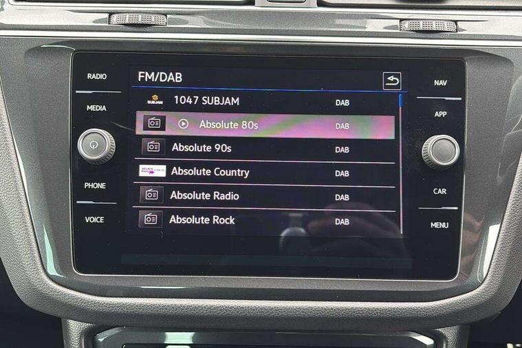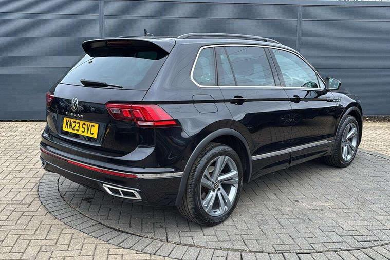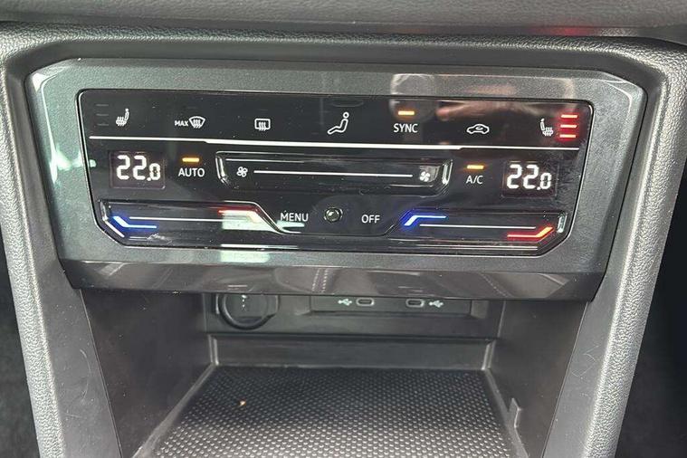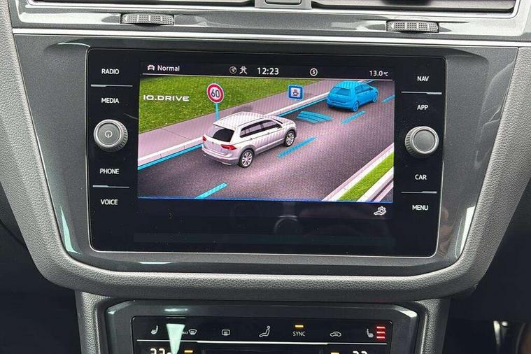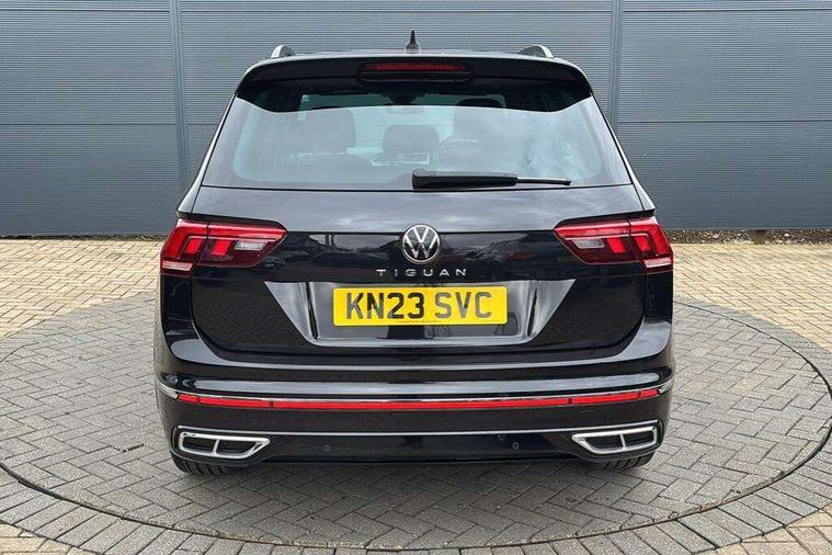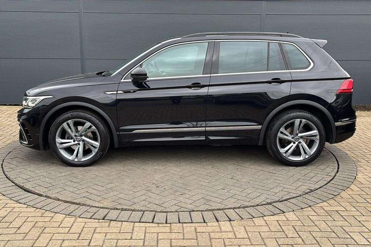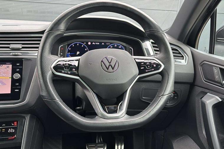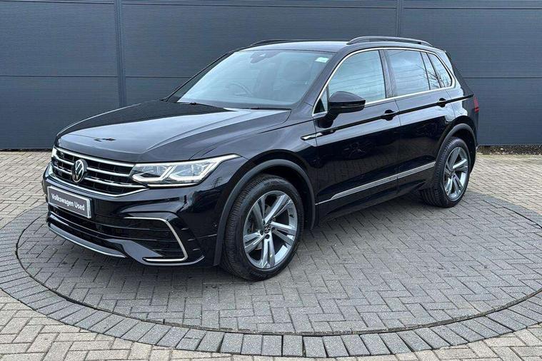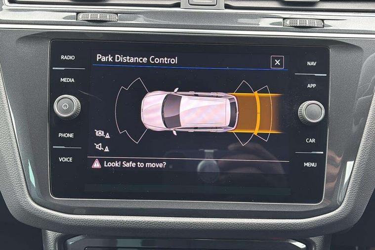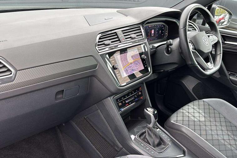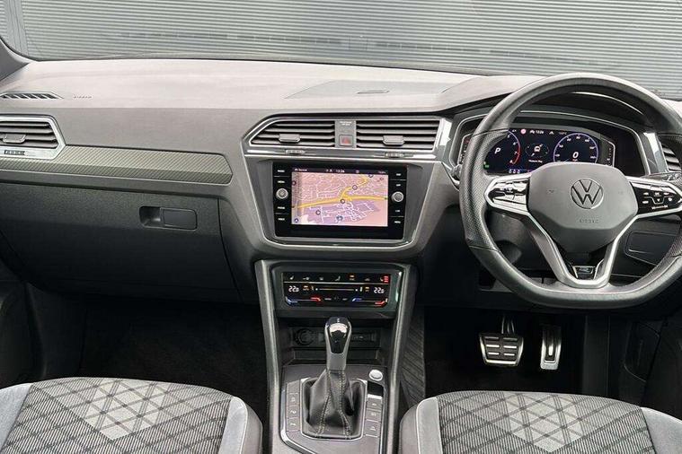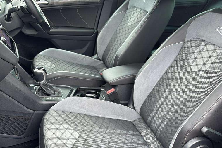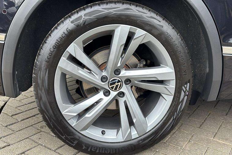 Adaptive cruise control ACC stop and go including speed limiter, App-Connect incl. App-Connect Wireless for Apple CarPlay and Android Auto, Bluetooth phone integration system, Comfort drive travel assist, Digital cockpit pro, Driver alert system, Driver profile selection, Dynamic road sign display, eCall emergency call system, Electromechanical speed sensitive power steering, Emergency assist, Front and rear parking distance sensors, Instrument cluster mph speedometer Great Britain, Lane keeping system Lane Assist, Lights on warning, Multifunction front facing camera, Outside temperature display, Premium multifunction display with multi colour display, Preparation for subsequent activation Navigation feature Discover Media includes Streaming and Internet, Remote control boot opening, Rev counter, Service interval indicator, Speed limit display, Start/stop system with regenerative braking, Tailgate/trunk lid unlocking from outside, Trip computer, Warning sound and light for doors and tailgate open, Battery regeneration during braking, Sports suspension, 8 Speakers, Digital radio reception DAB+, Diversity antenna for FM reception, Radio, Auto dimming interior rear view mirror, Automatic headlight control system, Body colored bumpers in R-Line style, Body colored exterior mirror housings, Body colour door handles, Chrome moldings on the side windows, Coming/leaving home lighting function, Dynamic headlight range control, Front and rear electric windows, Heated rear window, High level 3rd brake light, Laminated safety glass windshield, heat and sound insulating, LED headlamps with LED separate daytime running light and dynamic cornering light, LED rear combination lamps, LED rear number plate lights, License plate carrier in front and rear, Poor weather light and cornering light, Power adjustable, folding and heated door mirrors with surround lighting, front passenger exterior mirror lowering function, Privacy glass for rear side windows and rear window, R Line body kit, R Line side sills, Rain sensor, Rear exhaust tailpipe, Rear fog lamp, Rear side wing doors, Rear spoiler in R style, Rear windscreen washer and wiper with interval delay, Side and rear windows in heat insulating glass, Trailer Stability Programme, Unique R Line badging, Windscreen wipers/ intermittent wipe + 4 position delay, 12V outlet in center console rear and in luggage compartment, 12V outlet in front and tray, 2 LED front reading lights, 2 LED rear reading lights, 3 bench rear seats in 2nd row, 3 rear headrests, Air Care Climatronic 3 zone automatic climate control with enhanced air filter and controls in the rear, Art Velours greyson sports cloth upholstery, Backrest release for left front seat, Black headlining, Brushed stainless steel pedals and footrest, Carpet mats in front and rear with decorative stitching in Gray, Climate control unit rear with touch function, Door and side trim panel in foam film, insert in leatherette, Driver + front passenger lumbar support, Front footwell illumination, Front scuff plates in aluminum with R-Line logo, Front seats head restraints (x-adjustment), Height adjustable front seats, Height/reach adjust steering wheel, Isofix Preparation 2 Rear child seats, Leather gear knob, Rear bench seat asymetrically split folding, longitudinally movable and folding with load-through hatch and center armrest, Remote unlocking for rear seat backrest, Single front passenger seat, Sun visors with illuminated vanity mirrors, Top front comfort seats, Winter pack - Tiguan, 3 point seat belt for centre rear seats, 3 point seat belts with seat belt pretensioners for the outer rear seats, Curtain airbags for front and rear passengers, Driver/Front Passenger airbags, Drivers knee airbag, Electronic parking brake with auto hold, Electronic Stability Control with driver steering recommendation, ABS, ASR, EDL, EDTC and trailer stabilization, Front assist with autonomous emergency braking (for Adaptive Cruise Control ACC up to 130 mph), Front disc brakes, Front passenger airbag deactivation, Front side airbags, Height adjustable front 3 point seatbelts + pretensioners, Manual child proof rear door locks, Pedestrian monitoring system, Proactive passenger protection system in combination with front assist, Rear disc brakes, Two tone horn, Tyre pressure loss indicator, Warning sound and light for front seat belts if unfastened, Warning triangle, Anti theft alarm system with interior monitoring, backup horn and towing protection, Anti theft wheel bolts, Electronic engine immobiliser, Keyless locking and starting system keyless access with safelock, Chrome elements on the mirror switch power window switches and door pulls, Decorative inserts Carbon Gray for dashboard and front door trim panels, Interior door handle in matte chrome, 19" Valencia alloy wheels with AirStop tyres, Tool kit, Tyre mobility kit Includes 12V compressor and tyre sealant,