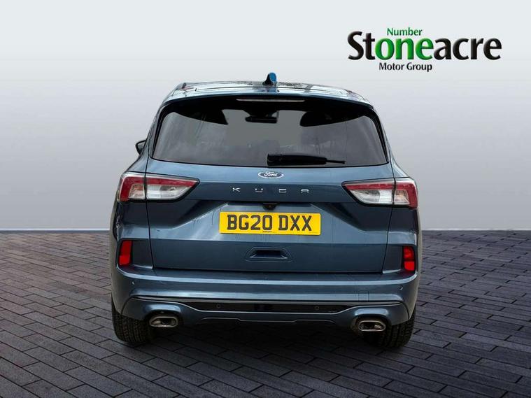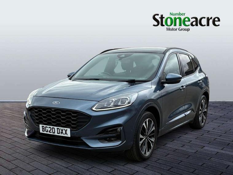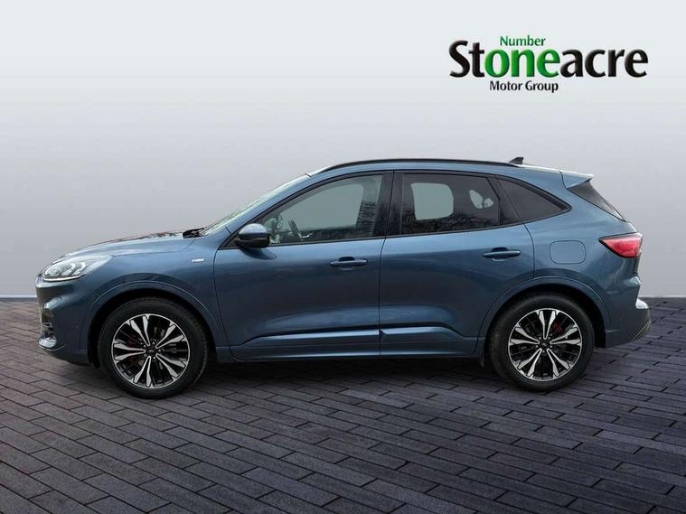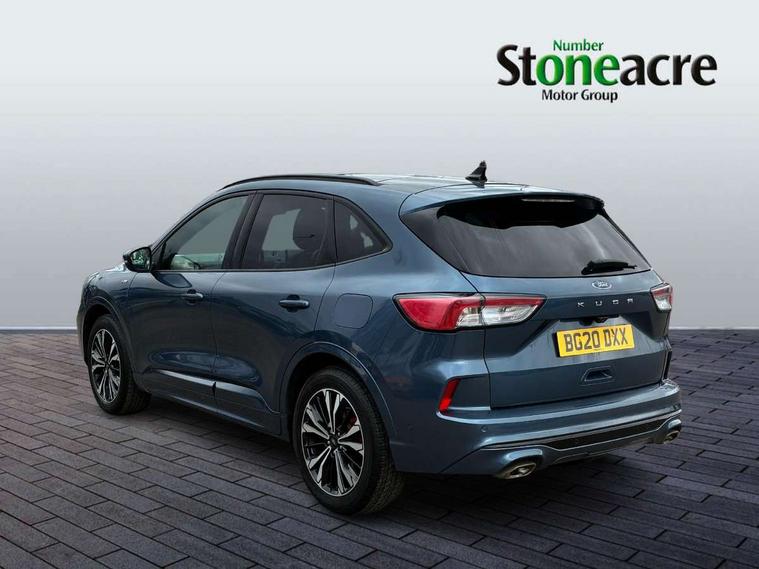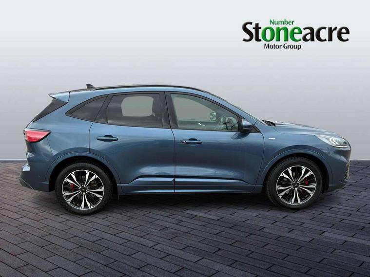 Active park assist, Adaptive cruise control (ACC) with traffic sign recognition, BLIS (Blind spot information system), Driver impairment monitor, Eco coaching, Ford easy fuel, Front and rear parking sensors, Front and rear view camera, Hands free power tailgate, Head up Display, Intelligent speed assist, Lane keeping aid with lane departure warning, Mobile phone wireless charging pad, Power assist steering, Selectable drive modes, SYNC 3 with navigation, DAB audio, Sports suspension, Auto dimming rear view mirror, Auto headlamps with high and low beam, Auto wipers, Black roof rails, Door edge guards, Electrically operated front and rear windows, Front LED fog lights with cornering function, Full LED quad projector headlamps with glare free, Large rear spoiler, LED daytime running lights, LED rear lights, Power folding heated door mirrors with puddle lights, Power front/rear windows with global close, Power opening panoramic roof, Privacy glass, Quickclear heated windscreen, ST Line badges in exterior and interior, ST Line body styling kit with unique front and rear fascia and bumper, rear painted diffuser, front painted skid plates, dark mesh upper grille, ST Line front scuff plates, Twin exhausts, 10 way power adjustable drivers seat, 2nd row sliding seats, 8 way manual passenger seat including lumbar support and height adjust, Alloy pedals, Ambient lighting, Centre console with electronic parking brake, Dark headlining and pillars, Dual electronic automatic temperature control, Flat bottomed leather steering wheel in sensico with red stitching, Front and rear head restraints, Heated passenger and driver seats, Partial leather manual track seat, Rear charging point, Sensico partial premium leather upholstery, Sports seats, ST Line front and rear floor mats, Unique ST Line leather gear knob, B&O with large instrument cluster pack - Kuga, 3x3 point rear seatbelts, Airbags - front driver/passenger, front and rear curtain, Drivers knee airbag, Electronic stability control (ESC) and ABS, Ford MyKey Gen 2 safety system, Hill launch assist, Post collision braking, Powered child proof rear door locks, Pre collision assist with autonomous emergency braking, Red brake calipers, Tyre pressure monitoring system, Engine immobiliser, Keyless entry, Keyless start with 'Ford Power' starter button, Locking wheel nuts, Remote powered central double locking doors, Thatcham category 1 alarm,