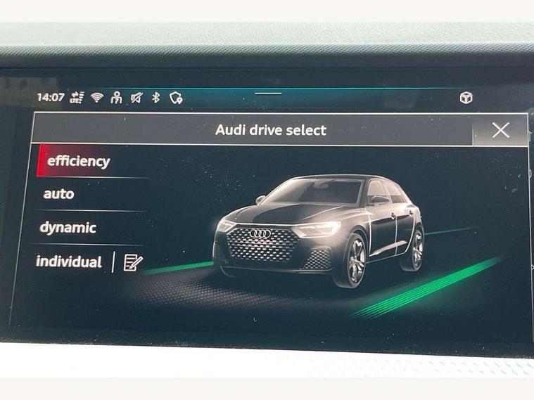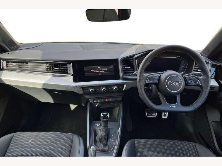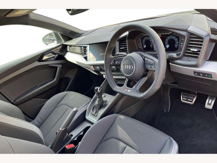 10.25" Digital instrument cluster display classis style instrument dials + speed, odometer, time, outside temperature, telephone menu + fuel level warning, Advanced driver attention and drowsiness monitor, Audi connect emergency call and service, Audi drive select, Audi remote connect and control, Bluetooth interface, Camera based traffic sign recognition, Cruise control, Driver's information system, Electromechanical power steering, Lane departure warning system, Rear parking sensor, Service interval indicator, Smartphone interface, Speed limiter, Start stop system with recuperation, Voice control system, Washer fluid level indicator, Sports suspension, 2 x USB type C connection points, 6 loudspeakers, DAB Digital radio, MMI radio plus with 10.1" colour MMI display screen and MMI touch, Auto dimming rear view mirror, Black door mirror housings, Black side skirts, Body coloured bumpers, Door sill trims with aluminium inlays and logo, Electric front and rear windows, Electrically adjustable, heated, folding door mirrors with integrated LED side indicator, Front side air inlets in grained matt black and C frame in anthracite black, Front wing badges, Headlight cleaning system, Heat insulating glass windscreen and side windows, Heated rear windscreen, High level LED brake light, LED daytime running lights, LED headlights with range control LED rear lights + dynamic rear indicators, Light and rain sensors, Privacy glass, Radiator grille and rear diffuser in matt anthracite black, Radiator protective grille frame in matt aluminium silver, Rear fog lights, Rear side wing doors, Rear wiper, Side front spoiler lips in grained matt black, 12V socket in centre console with two cup holders, 3 rear seats with headrests, 3 seat bench in 2nd row, 3 spoke flat bottomed multi-function plus leather steering wheel with S badging, grips in preforated leather, contrast stitching and paddle shift, 40:60 Split folding rear seat or fully collapsed, Black carpets, Black cloth headlining, Front and rear velour black floor mats with contrast stitching in fine silver, Front head restraints, Front passenger seat, Height and reach adjustable steering wheel, Interior lighting includes roof module, front and rear reading lights and right luggage compartment lighting, ISOFIX child seat mounting for front passenger and outer rear seats including top tether attachment point of outer rear seats, Leather gear knob with aluminium trim, Leather handbrake grip, Manual air conditioning, Manual height adjustable for driver and front passenger seat, Manually adjustable lumbar support in front seats, Stainless steel pedals, Ambient lighting package - A1, Black styling pack - A1 Sportback Black Edition, Luggage compartment pack - A1, 3x3 point rear seatbelts, Audi pre-sense front with pedestrain and cyclist recognition, Brake assist function, Driver and front passenger airbag with front side and head airbags, Electronic Stability Control including ABS, EBD, ASR and EDL, Front passenger airbag deactivation switch, Hill hold assist, Manual rear child locks, Seatbelt height adjustment for front seats, Seatbelt monitoring, Tyre pressure loss indicator, Warning triangle and first aid kit, Anti theft alarm, Anti theft wheel bolts, Immobiliser, Remote control key with safelock, Aluminium trim for control switches, air vents and digital instrument cluster, Black dashboard, Silver grey inlays polygon structure in diamond paint finish, Structured grey accent surfaces insert of air vents, interior door handle recesses and centre console in quartz paint finish,