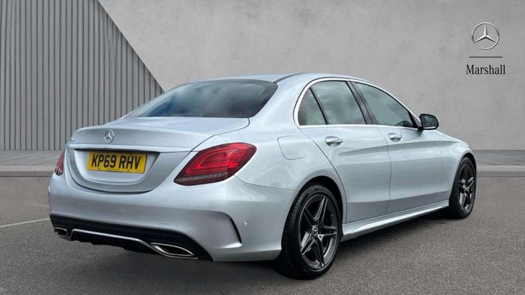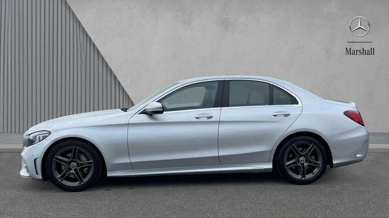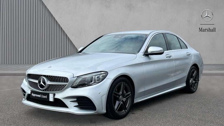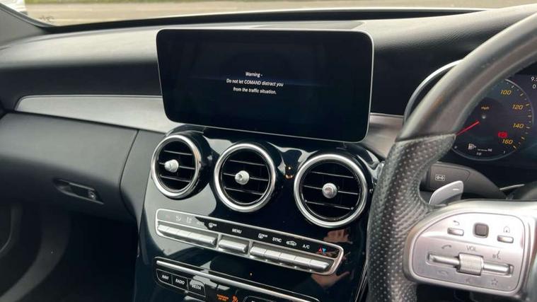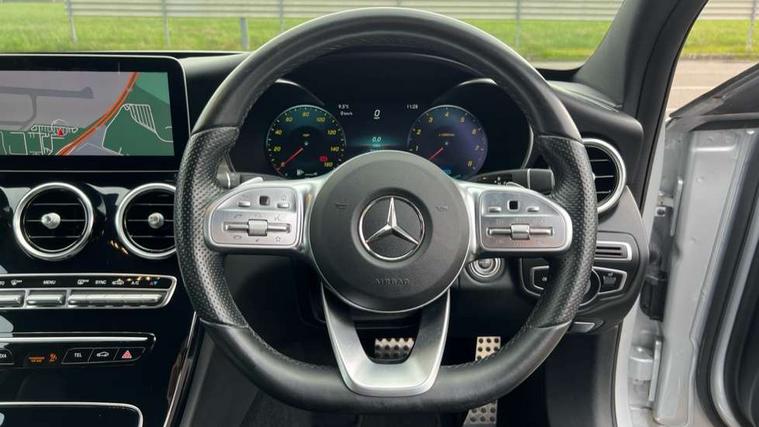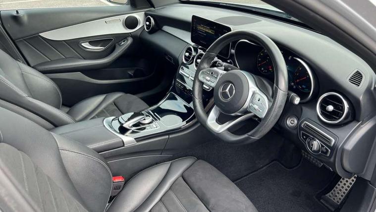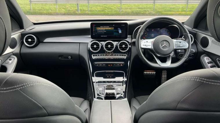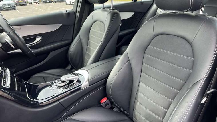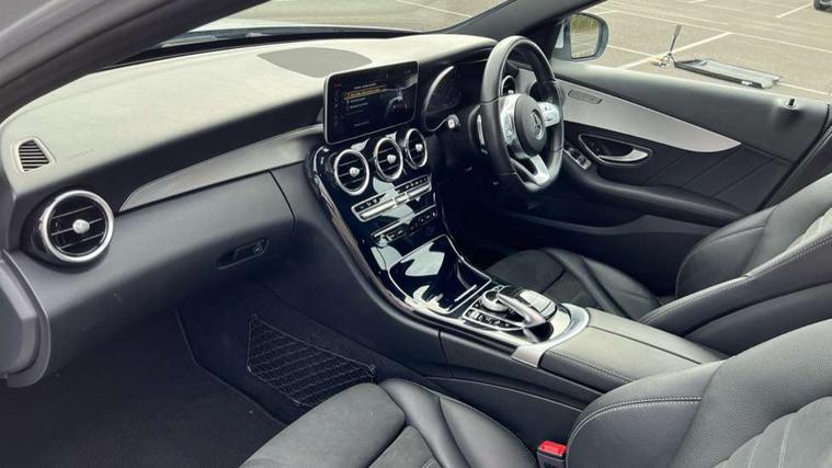 Active park assist with parktronic system, Attention assist, Bluetooth system, Collision prevention assist plus, Comand Online HDD Nav with media interface, radio/CD/DVD/MP3, 10.25 screen, linguatronic voice control, DYNAMIC SELECT with a choice of driving modes (ECO, Comfort, Sport, Sport+ and Individual), Multi function trip computer, Outside temperature gauge, Remote boot release, Reversing camera, Service indicator (ASSYST PLUS), Smartphone integration with Apple CarPlay and Android auto, Wireless charging, Petrol Particulate Filter, 2 USB ports in centre console, DAB Digital radio, Mid-range sound system with 7 speakers and 225W amplifier, SD card slot, Steering wheel mounted audio controls, Adaptive brake lights, Aerial in rear window, AMG body styling, Body coloured bumpers, Body coloured door mirrors, Chrome pins diamond radiator grille with integrated stars, Electric windows one touch open/close, Electrically adjustable and heated door mirrors, Green tinted glass, Heated windscreen washers, LED daytime running lights, LED Indicators, LED tail lights, LED third brake light, Multi beam LED headlights, Rain sensor windscreen wipers, Side windows surround in polished aluminium, Twin exhaust pipes, 2 cupholders in front centre console, 3 spoke flat bottom AMG steering wheel in nappa leather, 40:20:40 split folding rear seats, AMG floormats, AMG sports seats, Auto Mercedes-Benz child seat recognition sensor, Dual zone automatic climate control, Electric front seat height adjustment, Front and rear head restraints, Front centre armrest with storage compartment, Front door sills with Mercedes Benz lettering, Gearshift paddles, Heated front seats, Illuminated glovebox, Interior lighting - 64 colour Ambient lighting, Multifunction steering wheel, Rear top tether child seat ISOFIX attachment, Sports pedals with stainless steel surfaces and rubber studs, Sunvisors with illuminated vanity mirrors, Lighting pack - C class, Mirror pack - C Class, Seat comfort pack - C Class, Stowage space pack - C Class, 3 rear 3 point seatbelts, ABS with Brake Assist, Active bonnet, Adaptive brake system, Black seat belts, Brake calipers with Mercedes-Benz lettering + perforated brake discs, Child proof door locks, Crash sensor, Drivers knee airbag, Drivers pelvis airbag, Dual stage driver/passenger airbags, Electronic parking brake, ESP with ASR, Front passenger seat occupancy sensor, Front side airbags, Hill start assist, Rear seatbelt warning indicator, Tyre pressure monitoring system, Warning triangle and first aid kit, Window airbags, Alarm system/interior protection/immobiliser, Chrome surround in electric key, Remote central locking, Tyre inflation kit,