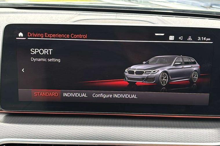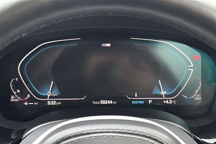 32GB hard disc drive (HDD) memory, Active Guard, BMW ConnectedDrive online services, BMW Live Cockpit Professional sat nav system with 12.3" instrument display and high resolution control display, BMW Teleservices, Brake pad wear indicator, Cruise control with brake assist, Driving experience switch, Electric boot lid - electrically opening/closing rear tailgate, Electric Power Steering (EPS) with Servotronic, iDrive touch controller with shortcut buttons, Intelligent emergency call, Multifunctional instrument panel, Oil sensor for level and grade, On board computer inc. average speed, fuel consumption, liquid crystal Info display, journey computer, outside temperature display, personal profile, On-board diagnosis - OBD, Powered by Operating System 7.0, Service interval indicator, Speed limiting function, Stop/start button, 48V Mild hybrid technology, Diesel particulate filter, Drive performance control with ECO PRO comfort + sport mode, Engine cover with twin turbo designation, M sport suspension, Steptronic sport transmission with gearshift paddle switches on steering wheel, DAB Digital radio, Favourite buttons, Acoustic glazing, All round anti-corrosion system, Automatic windscreen wipers and automatic headlight, Automatically dimming rear view mirror, BMW Individual high gloss shadow line includes exterior mirror frame, window frame surround, B pillar finish, air breather in high gloss black, BMW Individual high gloss shadow line roof rails, Body colour door handles, Body coloured bumpers, Door handle illumination, Dynamic brake lights with LED technology, Electric front and rear windows with fingertip open/close + anti-trap facility and comfort closing function, Electrically adjustable and heated exterior mirrors includes integrated direction indicators and automatic parking function, Folding exterior side mirror with auto- dimming, Follow me home headlight function, Heated windscreen washer jets, High gloss black active air stream kidney grille, Independent opening for tailgate window, LED daytime running lights, LED third brake light, M designation on front side panels, left and right in chrome, Trapezoidal visible exhaust tailpipes, xDrive designation on tailgate, 12V power socket in front and rear, 40/20/40 split folding rear seats with additional mechanism in luggage compartment, Armrest - front and rear integrated door trim, centre console includes storage compartment, rear centre includes 2 cupholders, Child seat ISOFIX attachment with rear outer seats includes top tether, Cup holders (2 front and 2 rear), Front and rear footwell lights, Front reading lights, Height and length adjustable steering column and activation via lateral lever on the steering column, Lockable glove compartment with light, M door sill finishers, M specific pedals, M specific velour floor mats, Multifunction controls for leather steering wheel, Rear headrests, Retractable luggage compartment dividing net, Three spoke sport M leather steering wheel, Ambient lighting pack - 5 Series, Connected package professional - 5 Series, M Aerodynamic pack - 5 Series, Airbags - driver/front passenger, rear and side, first and second row seats head airbags, front passenger seat airbag deactivation + knee airbag, Anti-lock braking system (ABS), Automatic Stability Control (ASC), Brake assist function, Brake energy regeneration, Cornering brake control (CBC), Crash sensor activating central locking release, hazard warning lights, fuel cut off and interior lighting, Deformation zones - front and rear with door reinforcements and bumpers up to 2.5 mph, DSC - Dynamic Stability Control, Dynamic brake control, Dynamic Traction Control - DTC, Electromechanical parking brake with automatic drive away release and auto hold function, Electronic brake force distribution, Engine drag torque control, Front and rear brake discs with interior ventilation, Front head restraints with anti-whiplash, Hill start assist, M Sport brakes in high gloss blue painted brake callipers with M designation, Mechanical child proof lock on rear doors, Passive protection for pedestrians, Side impact protection, Three point seat belts for all four seats, Two tone horn, Tyre pressure indicator, Warning triangle and first aid kit, Alarm system (Thatcham 1) with remote control and electronic engine immobiliser, Locking wheel bolts,