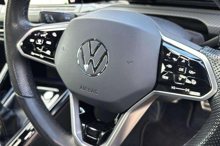 Adaptive cruise control (ACC) with speed limiter and front assist (reacting to vehicles pedestrians and cyclists), Car2X communication, Digital cockpit pro - 10.25" high resolution TFT dash display screen with customizable menus and information, Driver alert system, Driver profile selection, Dynamic road sign display, eCall - Emergency call service for SOS calls to emergency response, Lane assist, Mobile phone interface with wireless inductive charging function, Multifunction camera for distance control, Progressive steering, Speedo, rev counter, electronic odometer, trip, service interval display, exterior temperature and fuel gauge, Start/Stop function, USB-C ports in the front and rear centre console with increased charging performance, Warning buzzer and light for front seatbelts unfastened, Wireless app connect, Petrol Particulate Filter, XDS electronic differential lock for improved traction and handling, Premium USB cable in choice of either Apple or Android smartphone compatibility, Auto dimming rear view mirror, Automatic headlamp activation with Coming home and Leaving home feature, Automatic headlights, Body colour door handles, Body colour door mirrors with integrated indicators, Body colour rear roof spoiler, Electrically heated and adjustable door mirrors with memory feature, Front and rear electric windows, Heat insulating glass windscreen, Heated rear windscreen, High level 3rd brake light, Highway light, LED License plate illumination, R Line body coloured bumpers, Rain sensor, Rear fog light on one side and reversing lights on both sides, Rear lights incorporating LED technology, Rear side wing doors, Rear tinted glass 65% light absorbing from B pillar backwards, Rear windscreen washer and wiper with interval delay, Welcome light, 12V socket in front centre console, 12V socket in luggage compartment, 3 rear head restraints, 3 seat bench in 2nd row, Ambient lighting - Customisable 30 colour ambient lighting, Ambient lighting, exterior illuminated styling elements at the sides, Black roof lining, Brushed stainless steel pedals, Chrome plated surround to electric mirror button, window switch and air vent surrounds, Drivers and front passengers sun visors with vanity mirrors, Front + rear carpet mats, Front centre armrest with storage compartment, Front cupholders x 2, Front passenger seat, Front reading lights x 2 incorporating LED technology, Front seat lumbar support adjuster, Front sports seats, Glovebox, Height adjustable front seats, Height and reach adjustable steering wheel, Isofix child seat preparation for 2 rear child seats and front passenger seat, Luggage compartment lighting, R Line door and side trim panel, R Line front seats integrated head restraints, R-Line leather wrapped multi function sports heated steering wheel, Removable luggage compartment cover, Sardegna cloth upholstery with front and outer rear seats Art Velour inner sides of bolsters, Split folding backrest with centre armrest and unsplit rear seat bench, Titanium black instrument panel, Woven fabric storage compartments in front and rear doors, 3 point height adj front seatbelts + pretensioners, 3 rear three point seatbelts, ABS, Child locks on rear doors, Driver and front passenger airbag with front passenger airbag deactivation, Drivers and front passengers safety optimised head restraints, Electronic parking brake with auto hold, ESC (Electronic Stability Control), Extended pedestrian protection measures, Front and rear passengers curtain airbag system including front side airbags, Front centre airbag, Front disc brakes, Front side airbags with curtain airbags, Rear disc brakes, Two tone horn, Tyre pressure monitoring system, Alarm with interior protection and deactivation via infotainment system, Electronic engine immobiliser, Carbon grey decorative inserts in dash and front door trim panels, High gloss black centre console,