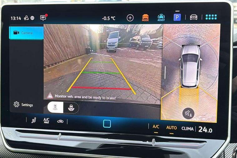 Activated carbon canister, Adaptive cruise control (ACC), Advanced driver attention and drowsiness monitor, Dynamic road sign display, Dynamic steering, E-Sim card for online connectivity, eCall emergency call system, Multi-color Digital cockpit pro, selection of different info profile possible, Multifunction front facing camera for distance control, Navigation system, Oncoming vehicle braking when turning including swerve support, Preparation for light assist system, Speed limiter, Speedo, rev counter, electronic odometer, trip, service interval display, exterior temperature and fuel gauge, Traffic jam assist, Voice enhancer and voice control, Warning signal and warning light for front and rear seatbelts not fastened, We connect plus preparation, We connect preparation, Wireless app connect, Diesel particulate filter, Hybrid propulsion system, Start-stop system with battery regeneration (recuperation - energy recovery during braking), XDS electronic differential lock for improved traction and handling, 2 USB C ports in front, 2 USB charging sockets on the centre console in the rear charging capacity upto 45W, Comfort telephony + wireless charging, without wireless aerial connection, Digital radio reception (DAB), Diversity antenna for FM reception, Gaming platform via car app, Infotainment system with 12.9" display, Mobile phone interface with inductive charging feature, 3rd brake light, Auto headlights, Automatic headlamp activation with Coming home and Leaving home feature, Body colored bumpers in R-Line style, Body colour door handles, Exterior ambient lighting with illuminated door handles, Exterior mirrors convex on the left and aspherical on the right, Front and rear electric windows, Heat insulating windshield made of laminated glass, LED daytime running lights, Rear exhaust tailpipe, Rear fog light on one side and reversing lights on both sides, Rear side wing doors, Rear windscreen washer and wiper with interval delay, Remote electrically foldable door mirrors, puddle lights and reverse activated passenger's door mirror, Welcome light with surround lighting, 12V socket in front centre console, 12V socket in luggage compartment, 3 rear head restraints, 3 seat bench in 2nd row, Ambient lighting with 30 colour including LED light unit in front footwell with selectable light colour, Brushed stainless steel pedals, Carpet mats, front and rear, Chrome plated radiator grille inserts, air vent surrounds and light switch surrounds, Front centre armrest, Integrated front head restraints, ISOFIX anchors for child seats on outer rear bench seats and on front passanger seat compatible for i-Size, Luggage compartment lighting, Plastic gear knob, Premium sports seats in front, Rear cupholder and loadthough, Single front passenger seat, Soul black instrument panel, Split folding backrest with centre armrest and unsplit rear seat bench, Storm grey roof lining, Sun visors with illuminated vanity mirrors, 3 point height adj front seatbelts + pretensioners, 3 rear three point seatbelts, ABS, Autonomous emergency braking front assist with pedestrian and cyclist monitoring, Child locks on rear doors, Driver and front passenger airbag with front passenger airbag deactivation, Electronic parking brake with auto hold, ESC (Electronic Stability Control), Extended pedestrian protection measures, Hill start assist, Rear disc brakes, Two tone horn, Tyre pressure loss indicator, Volkswagen roadside assistance, Anti theft wheel bolts, Preparation for alcohol interlock, Decorative inserts carbon grey for dashboard and front door trim panels,