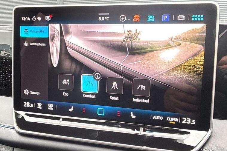 Adaptive cruise control (ACC), Advanced driver attention and drowsiness monitor, Bluetooth mobile phone interface, Digital Cockpit Pro - 10.25" high resolution dash display screen with customisable menus and information, Driving profile selection, Dynamic road sign display, E-Sim card for online connectivity, Easy Open and Close Electric tailgate with virtual pedal activation, eCall emergency call service, Extended safety system (proactive passenger protection system), Front Assist - Autonomous emergency braking with pedestrian and cyclist monitoring, IDA voice assistance with ChatGPT, Inductive smartphone charging without external antenna connection, Lane change system, Side assist, Rear traffic alert and Exit warning system, Multifunction front facing camera, Navigation system, Oncoming vehicle braking when turning including swerve support, Park assist plus with park distance control, Power assisted steering with speed sensitive, Start/stop system with regenerative braking, Tailgate/trunk lid unlocking from outside, Warning signal and warning light for front and rear seatbelts not fastened, Wireless App-Connect, Front shock absorption, Front wheel drive, 12.9" infotainment display, Digital radio reception (DAB), Diversity antenna for FM reception, 3D rear combination light special signal pattern, Ambient lighting with logo projection, Auto dimming interior rear view mirror, Automatic headlight control system, Body coloured door handles, Chrome moldings on the side windows, Coming/leaving home lighting function, Dynamic headlight range control with dynamic cornering light, Exterior mirrors convex on the left and aspherical on the right, Heat insulating glass in side and rear windows, Heat insulating windshield, High Beam Assist, automatic sensing for switching between dipped and main beam, High level 3rd brake light, Highway light, Illuminated door handle recesses, Illuminated lightline between headlamps, Illuminated logo front and rear, Laminated safety glass windshield, LED headlamps, LED separate signature day time running light, Poor weather light, Rain sensor windscreen wipers, Rear fog light on one side, reversing light on both sides, Rear side wing doors, Rear wiper, Remote electrically foldable door mirrors, puddle lights and reverse activated passenger's door mirror, 12V outlet in center console rear and in luggage compartment, 12V socket in centre console, 2 USB-C ports in the front, 2 USB-C charging sockets on the centre console in rear, charging capacity up to 45 W, 230V socket in luggage compartment, 3 bench rear seats in 2nd row, Air care climatronic 3 zone air conditioning system with rear air conditioning control panel, Black roof lining, Brushed stainless steel pedals, Carpet mats, front and rear, Centre console with illuminated storage compartment with sliding cover and two drinks holders, Chrome elements on the mirror switch and power window switches and door pulls, Door and side trim panel insert in Art velour, Drivers seat with manual adjustment of seat travel and height and backrest angle with thigh support longitudinally sliding, Front centre armrest, Front integrated head restraints, Front massage seats, Front scuff plates in aluminium, Front seats with manual height adjustment, Greyson sports cloth upholstery with inner side bolsters in artvelours, Interior ambient lighting with 30 colour options, ISOFIX anchors for child seats on outer rear seats and front passenger seat compatible with i-Size, Leather wrapped heated multifunction steering wheel with touch control and paddle shift, Mechanical rear seat release, Power adjustable lumbar support in front, Rear bench seat, split folding, longitudinally movable and folding with load-through hatch and centre armrest, Safety optimised front head restraints, Single front passenger seat, Sports comfort seats in front, Sun visors with illuminated vanity mirrors, Three rear head restraints, 3 point seat belt for centre rear seats, 3 Point seat belts in front with pretensioners, 3 point seatbelts in outer rear with ECE label, Driver and front passenger airbag with front passenger airbag deactivation, Electronic parking brake with auto hold, First aid kit with warning triangle and safety vest, Front and rear curtain airbags, Front centre airbag, Front disc brakes 1ZA, Hill start assist, Manual child proof rear door locks, Rear disc brakes, Rear side airbags, Two tone horn, Tyre pressure monitoring system, Alarm with interior protection, Central locking system keyless entry, Interior door handle in matte chrome, Soul instrument panel,