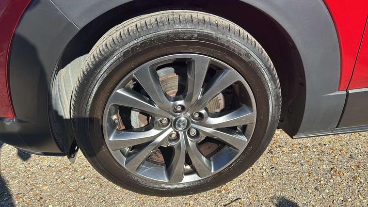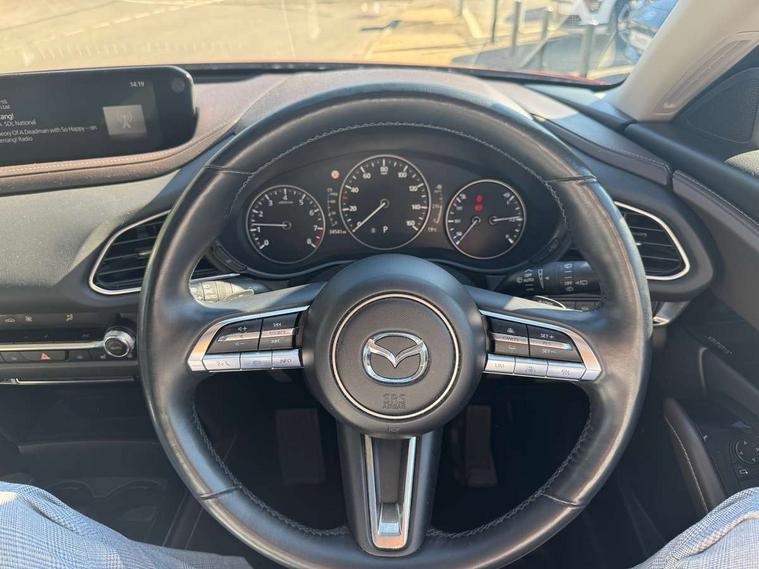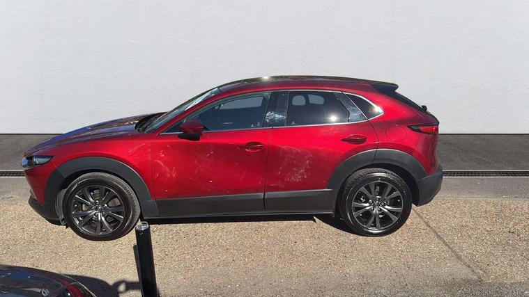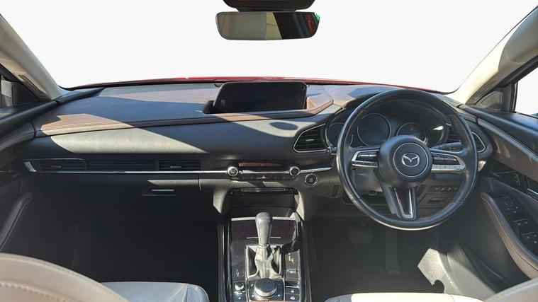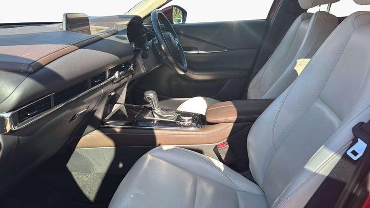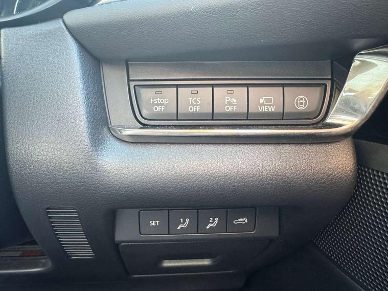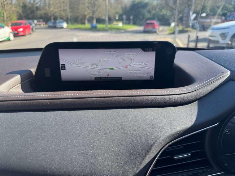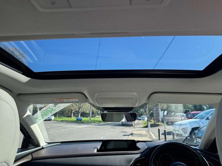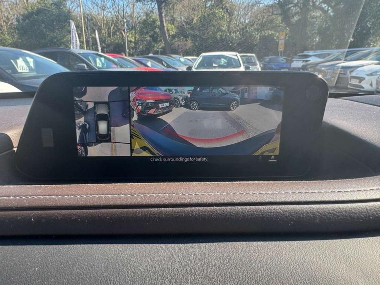 360 View Monitor, 7" TFT Colour driver instrument panel display, 8.8" Colour centre touch screen display with Mazda Connect infotainment, Adaptive cruise control (Mazda radar cruise control) features stop and go, Apple car play/Android Auto, Blind spot monitoring with rear cross traffic alert, Cruising Traffic Support, Drive mode selector, Driver attention alert system, Driver monitoring system, E-call with GPS, Emergency stop signalling system, Engine start/stop button, Front and rear parking sensors, Front Cross Traffic Alert, Integrated bluetooth, Integrated Mazda navigation system, Intelligent speed assist, Lane keep assist system (LAS) with Lane departure warning system (LDWS), PAS, Power lift gate, Service indicator, Trip computer, Window projected colour active driving display (head up display) with traffic sign recognition, i-stop, 2 USB charging ports, Bose surround sound system with 12 Speaker, Bose center point, Bass match and audio pilot technology, CD player, DAB Digital radio, Multimedia Commander including separate volume dial, Steering wheel mounted audio/bluetooth controls, Adaptive LED Headlights, Auto dimming driver's door mirror, B-pillar and C-pillar garnishes in gloss black finish, Body coloured, electrically adjustable, heated auto power folding door mirrors with integrated indicators, Coming/leaving home lighting function, Door mirrors with tilt-down function when reversing, Dual chrome exhaust, Dusk sensing headlights, Electric front/rear windows with one touch auto up/down, Frameless auto dimming interior rear view mirror, Front kodo turn signal, Gloss black front grille, Gloss black rear roof spoiler, High beam assist, LED headlamps with auto levelling, Power tilt/slide sunroof, Privacy glass (rear side windows and rear screen), Rain sensing front wipers with adjustable speed and intermittent wipe, Rear fog lights, Rear wiper, Signature front LED daytime running lights, Signature LED rear combination lights with LED rear turn lights, 12V power outlet in centre console, 60/40 split fold down rear seats, Chrome horn pad ring, Dashboard, door cards and front centre armrest in rich brown leather, Driver and front passenger visors with covered vanity mirror and driver ticket holder, Driver seat memory function, Driver's seat, power tilt, slide, recline, height and lumbar adjustment, Driver, Front passenger and two rear grab handles with coathooks, Dual zone climate control air conditioning with rear air vents, Folding rear centre armrest with two cup holders, Front and rear (x3) head restraints, Front and rear door pockets, Front and rear LED lighting, Front armrest, Front centre storage with two cupholders, Front passengers seat manual slide, recline and height adjustment, Glovebox illumination, Heated front seats with 3 stage setting, Heated steering wheel, ISOFIX child seat anchorage points attached on outer rear seats, Leather wrapped gear shift knob, Leather wrapped steering wheel with telescopic and tilt adjustment, Luggage compartment light, Paddle shift controls, Rear passenger seat map pockets, Roof mounted sunglasses holder, Vinyl leather door panel inserts, 3 point ELR front seat belts x2 with pretensioners, 3 point ELR rear seat belts, Anti-lock braking system (ABS), Driver/Front Passenger airbags, Drivers knee airbag, DSC - Dynamic Stability Control, Electronic parking brake with auto disengage function and auto hold function, Front and rear curtain airbags, Front and rear smart city brake support, Front passenger airbag cut-off switch, Front side airbags, G-Vectoring control plus, Hill launch assist, Mild Hybrid system with regenerative braking, Rear cross traffic braking, Seatbelt reminder for driver/front passenger and rear seats, Traction control system (TCS), Tyre pressure monitoring system (TPMS), Remote central locking with deadlocking and automatic door lock when driving, Smart keyless entry, Thatcham accredited alarm and immobiliser, 18" Bright silver metallic alloy wheels, Emergency tyre repair kit,