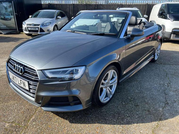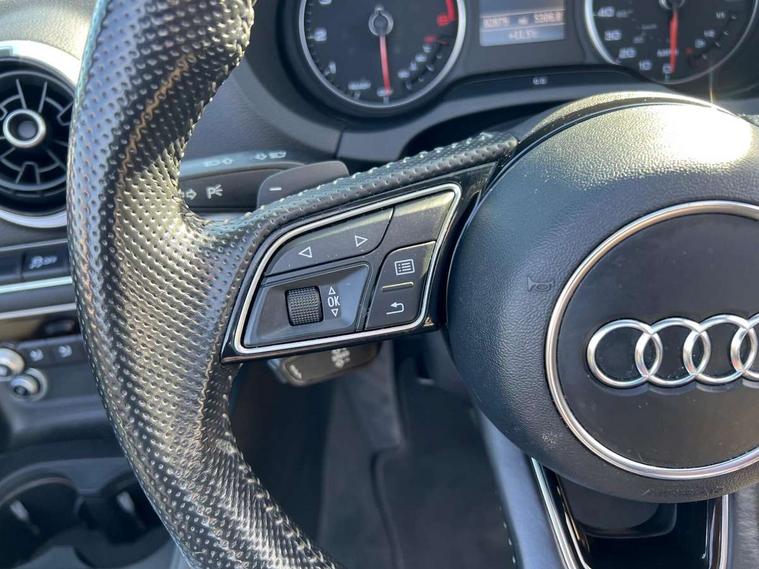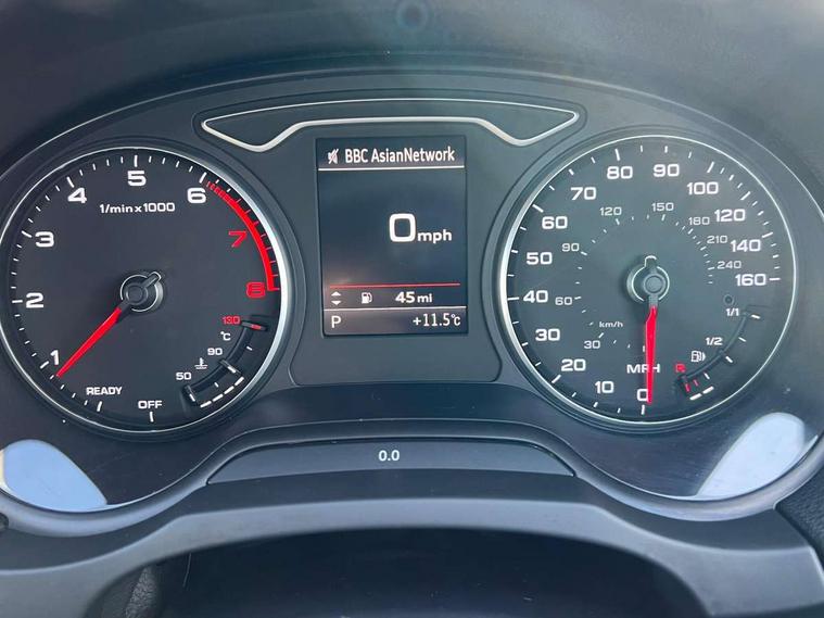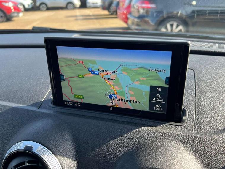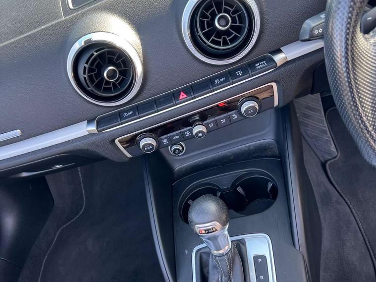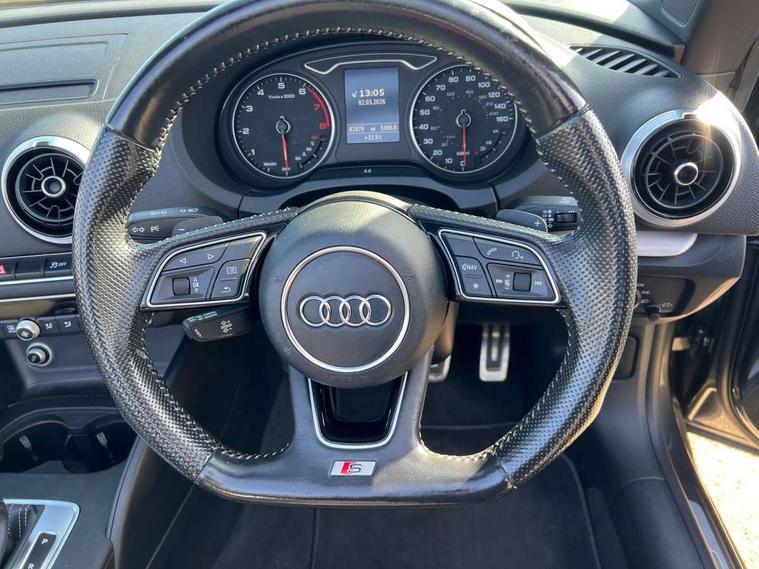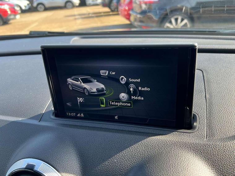 Audi connect, Audi drive select, Audi smartphone interface, Bluetooth interface, Colour driver's information system display, Service interval indicator, 2 USB ports, Audi music interface, DAB Digital radio, Aluminium side window trim, Automatic lights and wipers, Body colour bumpers, Body colour door mirrors with integral indicators, Chrome exhaust tailpipes, Electric operated/heated door mirrors, Front and rear electric windows, Fully automatic acoustic hood, Heated front windscreen, Heated rear window, Heated windscreen washer jets, LED daytime running lights, S Line body styling, 2 height adjustable rear headrests, 3 spoke flat bottom multi-function leather steering wheel including paddle shift, 4 lashing points to secure luggage, 50/50 split folding rear seat, Adjustable front armrest, Driver/passenger sunvisors, Dual zone electronic climate control, Front/rear floor mats, Height adjustable front seats, Height/reach adjustable steering column, Illuminated door sills, Illuminated glovebox, ISOFIX child seat preparation+airbag deactivation, Jack and tool kit, Perforated leather gearknob, Stainless steel pedals, Storage compartment in centre console, Storage compartments in doors, LED interior light pack - A3/RS3, Light and rain sensor pack - A3 Cabriolet, Storage pack - A3 Cabriolet/Saloon, 3 point seatbelts on all seats, ABS/EBD, Active bonnet, Active front headrests, ASR, Automatic roll over protection, Driver and passenger side airbags, Driver/Front Passenger airbags, Drivers knee airbag, EDL, Electromechanical parking brake, ESC - Electronic Stability Control + traction control, Front passenger airbag deactivation, Seatbelt warning, Tyre pressure monitor, Warning triangle and first aid kit, Anti theft alarm, Anti-theft wheel bolts, Immobiliser, Remote control central locking, Aluminium air vent surrounds, Aluminium trim elements, Space saver spare wheel,