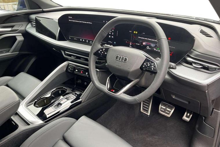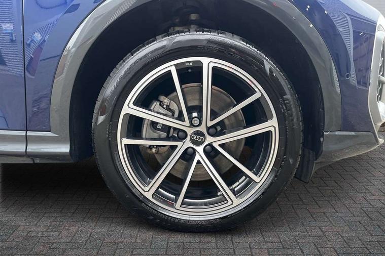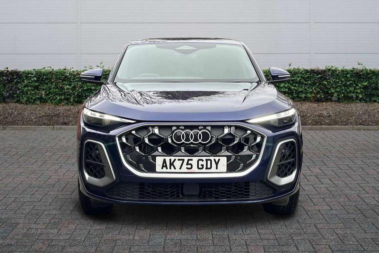 Adaptive cruise control, Advanced driver attention alert, Audi application store, Audi connect emergency call and service, Audi drive select, Audi smartphone interface, Audi virtual cockpit plus with 11.9" OLED colour display, Camera based traffic sign recognition, Fatigue monitor, Front cross traffic intersection assist, Lane departure warning system, MMI navigation plus with high resolution 14.5" OLED touchscreen colour display, Park assist plus, Parking system plus with 360 display, PAS, Reversing camera, Swerve assist and turn assist, Traffic sign based speed limiter, 2 USB-C ports in both the front and rear, Audi sound system impressive sound with 8 loudspeakers including centre speaker and subwoofer, 6-channel amplifier with a total output of 180 watts, DAB Digital radio, Smartphone compartment with wireless charging, Auto dimming rear view mirror, Body coloured door mirrors, Coming/leaving home lighting function, Electrically adjustable heated and folding + automatically dimming exterior mirrors, Front and rear electric windows, Front door sill trims with aluminium inlays, illuminated with 'S' logo, Grill frame, inlay and front air inlets in matt anthracite chrome, Headlight cleaning system, Heated rear window, High beam assist, High gloss window surrounds, LED headlights plus incl. digital DRL, dynamic coming and leaving home function with turning/all weather/motorway/manouevring and intersection lights, LED rear lights pro incl. dynamic rear indicators and illuminated light strip with animated coming and leaving home function, Logo projection light in exterior mirrors, Privacy glass, Projection third brake light for rear window in LED, Radiator grille in phantom black, Rear and side windows with heat insulating glass, Rear honeycombe grille in matt black with inlay in matt anthracite chrome, Rear side wing doors, Rear wash/wipe, S Line badge on the front wings, S line bumpers in contrasting Volcano grey metallic paint finish, Towbar preparation, Windscreen with acoustic glazing, 3 rear head restraints, 3 seat bench in 2nd row, 3 spoke leather steering wheel with multi-function buttons with touch control, flattened on top and bottom, with S badging and contrast stitching, 40:20:40 split folding rear seat bench with centre armrest and cup holders, Comfort centre armrest front, Deluxe 3 zone electronic climate control, Front and rear floor mats, Front seats with manual adjustment for position and 4-way electric lumbar support, Front sport seats with integrated head restraints, Headlining in black cloth, Heated front seats, i-Size child seat mounting on the front passenger side and outer rear seats, i-Size and top tether on the outer rear seats, Interior trim in aluminium look, Luggage compartment lid, electrically opening and closing, Manual steering column adjustment, S embossed logo on front sport seats, Single front passenger seat, Softwrap in leatherette, Stainless steel pedals and footrest, Steering wheel grips in perforated leather and shift paddles, Ambient lighting package plus - Q5, Storage and luggage compartment pack - Q5, 3x3 point rear seatbelts, ABS, Acoustic vehicle alerting system, Driver and front passenger airbag with passenger airbag deactivation, Electric child safety locks, First aid kit with warning triangle and high visibility vests, Front emergency brake assist, Front side airbags with head airbag system and front interaction airbag, Hill hold assist, Rear seat occupant reminder, Tyre pressure loss indicator, Anti theft alarm, Anti-theft wheel bolts, Remote control key with SAFELOCK and keyless go, Accent surfaces and control buttons in gloss black, Anthracite matt brushed aluminium inlays with linear embossing, Black dashboard with contrast stitching, Upper and lower interior elements in artificial leather, Tyre repair kit,