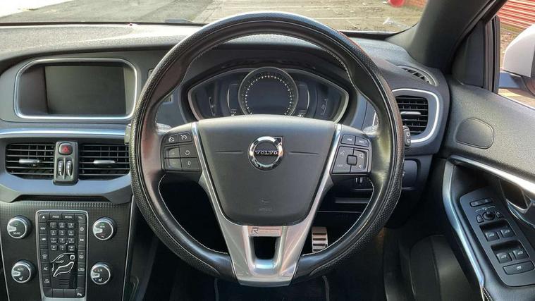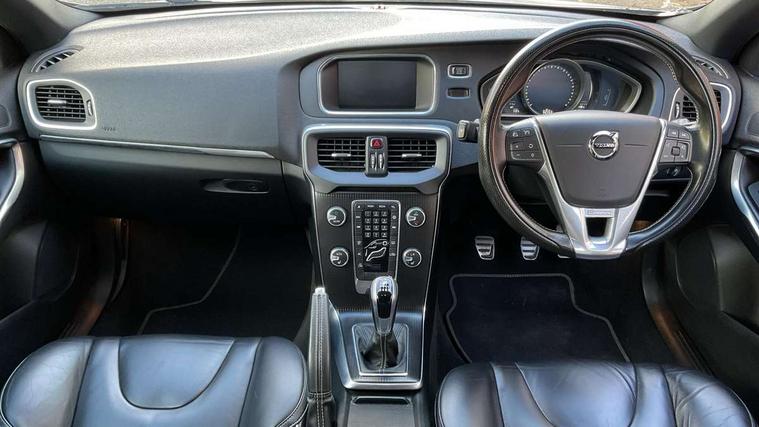 Active TFT crystal driver's instrument display, Bluetooth hands free telephone kit, Intelligent driver information system (IDIS), Sensus navigation system, Service interval indicator, Speed limiter, Speed sensitive steering, Diesel particulate filter, DAB Digital radio, Steering wheel audio controls, Adaptive brake lights, Automatic folding door mirrors with ground lights, Body colour bumpers, Body colour door handles, Dark tinted rear side windows, Dual exhaust pipes, Electrically adjustable and heated door mirrors, Front and rear electric windows, Headlamp levelling, Home safe and approach lighting, LED daytime running lights, LED Headlights, Matt silver finish door mirrors, Rain sensor windscreen wipers, Rear diffuser, Rear wiper, Roof spoiler, Silk metal window trim surround, 12V socket in front + rear tunnel console, 5 headrests, 60/40 split folding rear seat, Adjustable front centre armrest, Charcoal headlining, Electronic climate control (ECC), Folding front passenger seat with height/lumbar adjust, Footwell lights, Front cupholders, Front door step lamp, Front reading lights, Front sports seats, Front storage box, Height/reach adjustable steering column, Illuminated driver/passenger vanity mirrors, Illuminated gear knob, Isofix attachments on outer rear seats, Leather steering wheel with chrome inserts, Load cover, Lockable glovebox, Pollen filter, R Design leather sports upholstery, Rear armrest with cupholder, Rear reading lights, Rear theatre lighting, Sports floor mats, Sports pedals, Theatre dimming interior lights, Ticket holder, WHIPS - Whiplash Protection System, 5 x 3 point seatbelts, ABS+EBA, City safety braking system, Drivers knee airbag, DSTC-Dynamic Stability and Traction Control, Dual stage driver's airbag, Dual stage passenger airbag, Front/rear seatbelt pre-tensioners, Hill start assist, Passenger airbag cut-off device, Side airbags, Side curtain airbags, Tyre pressure monitor, Warning triangle, Anti-theft alarm including immobiliser/volume sensor + level sensor, Deadlocking system, Key integrated remote control central locking, Locking wheel nuts, Stealth aluminium trim,