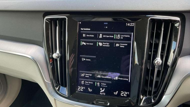 12.3" Active TFT crystal driver's instrument display, 9" centre console touch screen, Adjustable steering wheel force, Bluetooth handsfree system, Drive mode settings, Driver alert control with lane keeping aid, Front and rear park assist, Information centre, Oncoming Lane Mitigation, Power operated tailgate, Sensus navigation with European mapping and traffic information, Service interval indicator, Speed limiter, Speed sensitive steering, Trip computer, Voice activated control for key functions, Volvo on call app, 8 speed automatic transmission with start/stop + manual change functions, Dynamic chassis, DAB Digital radio, Steering wheel remote infotainment controls, Adaptive brake lights with high level LED brake lights, Auto dimming interior mirror, Automatic headlight levelling system, Automatic LED Headlights + Active high beam incorporating daytime running lights, Body colour bumpers, Colour coordinated auto folding and heated power door mirrors, Front aluminium tread plates, Home safe and approach lighting, Integrated roof rails in black, Piano black front grille with chrome surround, Power front and rear windows, Rain sensor with automatic windscreen wiper activation, Rear wiper, Roof antenna, Roof spoiler, Twin exhaust tailpipes with chrome sleeves, Visible VIN plate, 12V socket in front + tunnel console and cargo area, 3 Spoke tailored steering wheel with chrome trim, A-pillar parking ticket holder, B Pillar ventilation, Bright metal luggage compartment threshold, Cargo load hooks, Centre console cupholders, Floor mats, Front footwell illumination, Front head restraints, Front reading lights + Theatre lighting and centre armrest storage illumination, Glovebox compartment with illumination, Heated front seats, Height/reach adjustable steering column, Illuminated vanity mirrors + ticket holder, ISOFIX attachment on outer rear seats, Load cover, Load protection net, Luggage compartment illumination, Rear armrest with storage + cupholders, Underfloor cargo storage, Versatile split folding rear seat - 60/40, WHIPS - Whiplash Protection System, 5 x 3 point seatbelts, City safety with steering support with Pedestrian + cyclist + large animal detection + front collision warning with full auto brake, Dual stage driver/passenger airbags, First aid kit, Hill start assist, IC (Inflatable Curtains) - Full Length, Passenger airbag cut-off switch, Power parking brake with auto hold function, Road sign information display, Run off Road Mitigation, Run off Road Protection, Seatbelt reminder and pretensioners for all seats, SIPS (Side Impact Protection System), SIPS airbags, Slippery road and hazard light alert, Stability and Traction Control with Spin control, Engine Drag Control and Corner Traction Control, Tyre pressure monitoring system, Vehicle deceleration control with Anti-lock Brake System, Electronic Brake Distribution and Emergency Brake Assist, Warning triangle, Anti-theft alarm including immobiliser/volume sensor + level sensor, Care key with user defined top speed, Key integrated remote control central locking + fuel flap with deadlocking system and auto open/close power windows, Keyless start, Locking wheel nuts, Private locking for tailgate, Iron ore inlays,