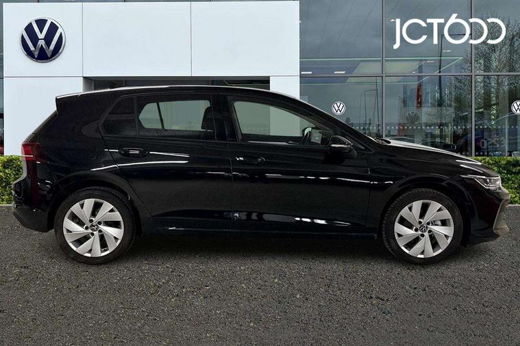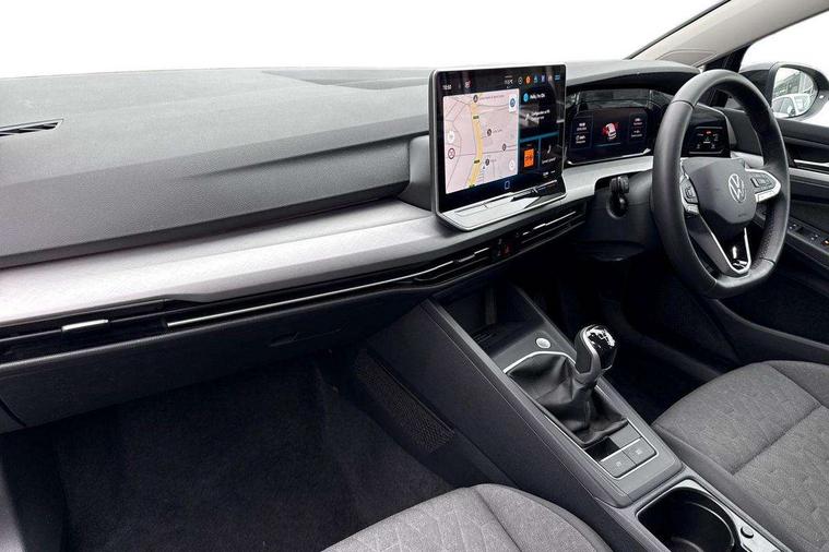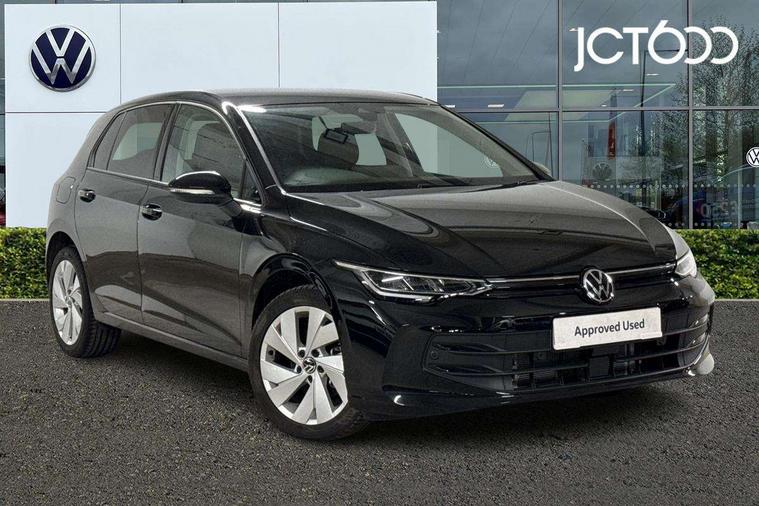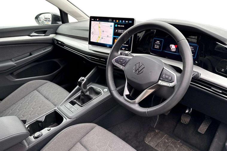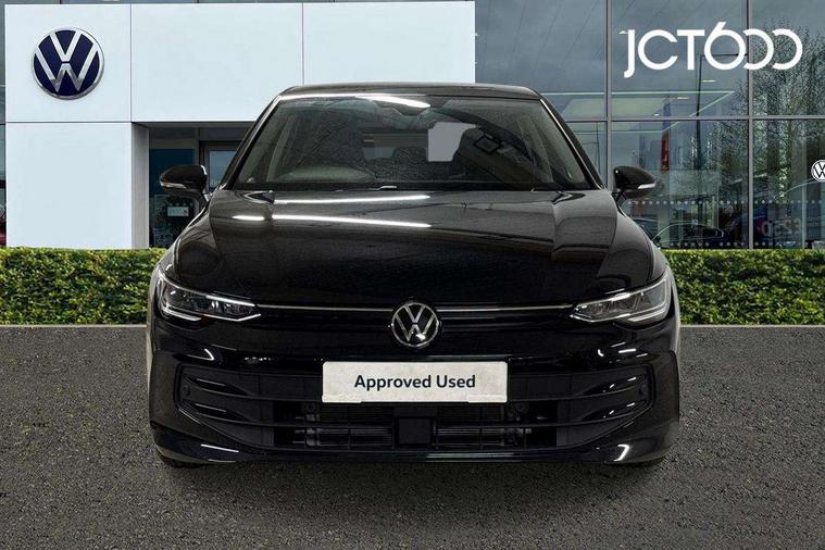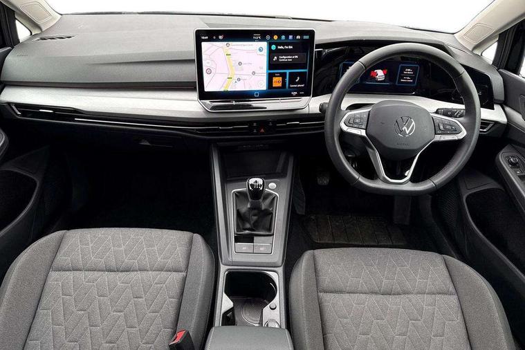 Activated carbon canister, Adaptive cruise control (ACC), Advanced driver attention and drowsiness monitor, Dynamic road sign display, E-Sim card for online connectivity, eCall emergency call system, Multi-color Digital cockpit pro, selection of different info profile possible, Multifunction front facing camera for distance control, Navigation system, Oncoming vehicle braking when turning including swerve support, Preparation for light assist system, Speed limiter, Speedo, rev counter, electronic odometer, trip, service interval display, exterior temperature and fuel gauge, Voice enhancer and voice control, Warning signal and warning light for front and rear seatbelts not fastened, We connect plus preparation, We connect preparation, Wireless app connect, Petrol Particulate Filter, Start-stop system with battery regeneration (recuperation - energy recovery during braking), XDS electronic differential lock for improved traction and handling, 2 USB C ports in front, 2 USB charging sockets on the centre console in the rear charging capacity upto 45W, Comfort telephony + wireless charging, without wireless aerial connection, Digital radio reception (DAB), Diversity antenna for FM reception, Gaming platform via car app, Infotainment system with 12.9" display, Mobile phone interface with inductive charging feature, 3rd brake light, Auto dimming rear view mirror, Auto headlights, Automatic headlamp activation with Coming home and Leaving home feature, Body colour door handles, Body colour door mirrors, Exterior ambient lighting with illuminated door handles, Exterior mirrors convex on the left and aspherical on the right, Front and rear electric windows, Heat insulating windshield made of laminated glass, LED daytime running lights, Rain sensor, Rear exhaust tailpipe, Rear fog light on one side and reversing lights on both sides, Rear side wing doors, Rear tinted glass 65% light absorbing from B pillar backwards, Rear windscreen washer and wiper with interval delay, Remote electrically foldable door mirrors, puddle lights and reverse activated passenger's door mirror, Standard bumpers, Welcome light with surround lighting, 12V socket in front centre console, 12V socket in luggage compartment, 3 rear head restraints, 3 seat bench in 2nd row, Chrome plated radiator grille inserts, air vent surrounds and light switch surrounds, Front centre armrest, Front head restraints, ISOFIX anchors for child seats on outer rear bench seats and on front passanger seat compatible for i-Size, Leather gearshift handle, Luggage compartment lighting, Rear cupholder and loadthough, Single front passenger seat, Soul black instrument panel, Split folding backrest with centre armrest and unsplit rear seat bench, Standard pedal cluster, Storm grey roof lining, Sun visors with illuminated vanity mirrors, Parking and comfort pack - Golf Estate/Hatchback, 3 point height adj front seatbelts + pretensioners, 3 rear three point seatbelts, ABS, Autonomous emergency braking front assist with pedestrian and cyclist monitoring, Child locks on rear doors, Driver and front passenger airbag with front passenger airbag deactivation, Electronic parking brake with auto hold, ESC (Electronic Stability Control), Extended pedestrian protection measures, Rear disc brakes, Two tone horn, Tyre pressure loss indicator, Volkswagen roadside assistance, Alarm with interior protection, Anti theft wheel bolts, Keyless start with SAFE lock, Preparation for alcohol interlock, Nature cross brushed decorative inserts for dashboard and front door panels,