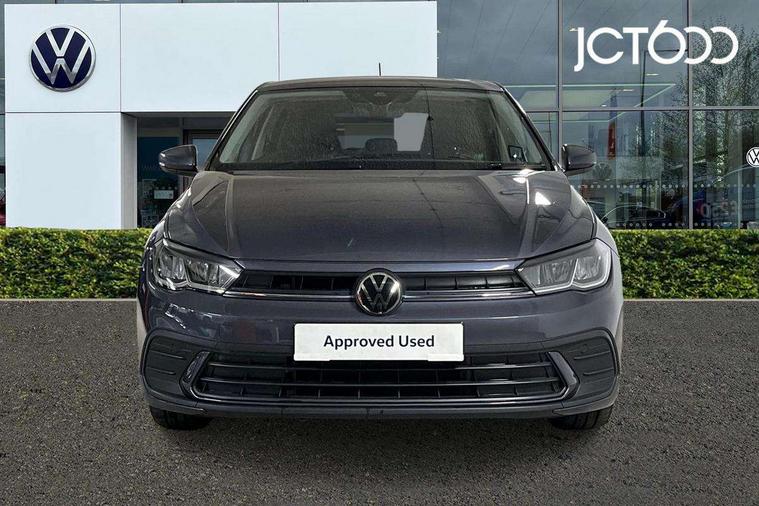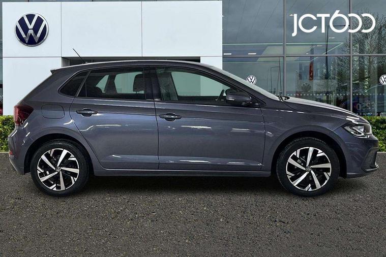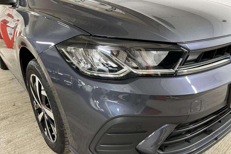 Advanced driver attention and drowsiness monitor, Bluetooth mobile phone interface, Dynamic road sign display, Emergency call service, Multifunction front facing camera for distance control, Park distance control, Power assisted speed sensitive steering, Predictive adaptive cruise control without follow-to-stop and speed limiter, Preparation for navigation system with media and internet package, Preparation for We connect and We connect plus, Rear view camera, Speedo and rev counter, electronic odometer, trip, service interval display and exterior temperature gauge, Standard rear axle, Travel Assist - Lane keeping system and traffic jam assist, Travel assist including emergency assist, Trip computer, Warning signal and warning light for front and rear seatbelts not fastened, Washer fluid level indicator, Wireless app connect, Front wheel drive, Rear shock absorpion, Start-stop system with battery regeneration (recuperation - energy recovery during braking), DAB Digital radio, Diversity antenna for FM reception, Front and rear 6 speakers, Automatic dimming interior rear view mirror, Automatic headlight control with LED separate daytime running lights with coming/leaving home function, Body colour bumpers with chrome inserts, Body colour door handles, Body colour door mirrors, Electric front windows, Engine badge deletion, Headlight range adjustment, Heat insulating and laminated safety glass windshield, LED Headlights, LED rear combination lamps, Power folding adjustable/heated exterior mirrors and front passenger exterior mirror lowering function, Rain sensor, Rear electric windows, Rear fog light, Rear side wing doors, Rear tinted glass from B-pillar backwards approx 65% tinted, Rear windscreen washer and wiper with interval delay, Third brake light, 12V power socket in centre console, 2 front and 2 rear reading lights with switch off delay and dimmer, 2 USB-C ports in the front, 2 USB-C charging sockets on the center console in the rear, 3 rear head restraints, 60/40 split folding rear seat and rear seat bench not split, Ceramique roof lining, Chrome plated radiator grille inserts, air vent surrounds and light switch surrounds, Door and side trim panel, Driver and front passenger seat height adjustment, Driver/passenger sunvisors with illuminated vanity mirrors, Front centre armrest, Front seat backrest storage pockets, Front standard seats, Handbrake lever handle in leather, Hartley/Thomas cloth upholstery, Headliner in recycled material, Isofix child seat preparation easy-fit (for two outer rear seats, and front passenger seat) compatible with I-size, Leather trimmed gear knob, Luggage compartment cover, Luggage compartment lighting, Removable luggage compartment floor, Single front passenger seat, Standard climatic zones, Standard pedal cluster, Three spoke leather wrapped multifunction steering wheel with shifting paddles, Light and vision pack - Polo, 3 point height adj front seatbelts + pretensioners, 3 point seat belt for centre rear seat, 3 point seatbelts, outer rear with ECE lable, ABS, Driver and front passenger airbag with front passenger airbag deactivation, Drivers and front passengers safety optimised head restraints, ESC (Electronic stability control) + EDL (Electronic Differntial lock) and ASR (Traction control), Extended and predictive pedestrian/ cyclist protection, Front assist with autonomous emergency braking (for Adaptive Cruise Control ACC up to 130 mph), Front curtain and side airbags with center airbag, Front disc brakes, Hill hold control, Manual child lock in rear doors, Rear drum brakes, Single tone horn, Tyre pressure loss indicator, Alarm with interior protection, Anti-theft alarm system with interior monitoring, backup horn, and towing protection, Anti-theft wheel bolts, Electronic engine immobiliser, Lava stone black gloss/matt decorative inserts in dash and front door panels, 16" Torsby alloy wheels, Low rolling resistance tyres,