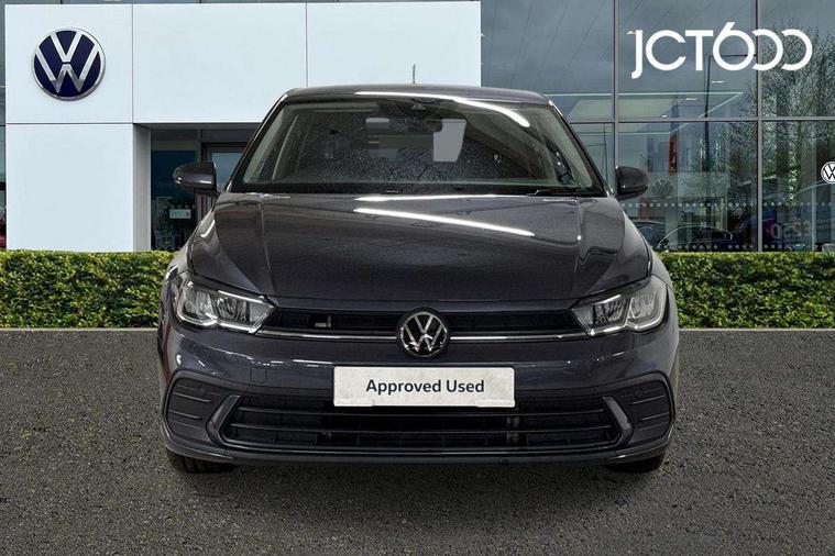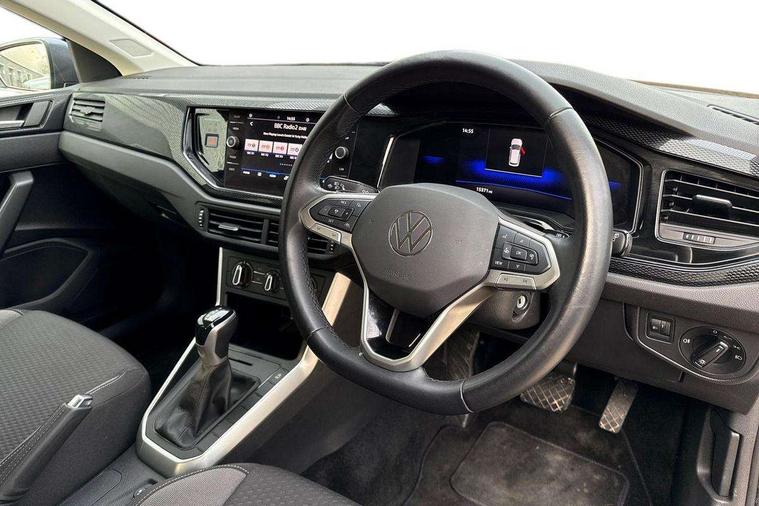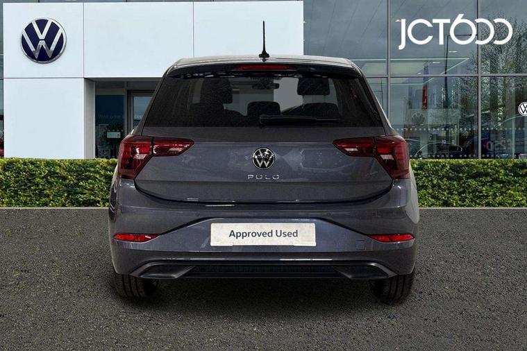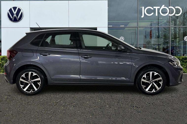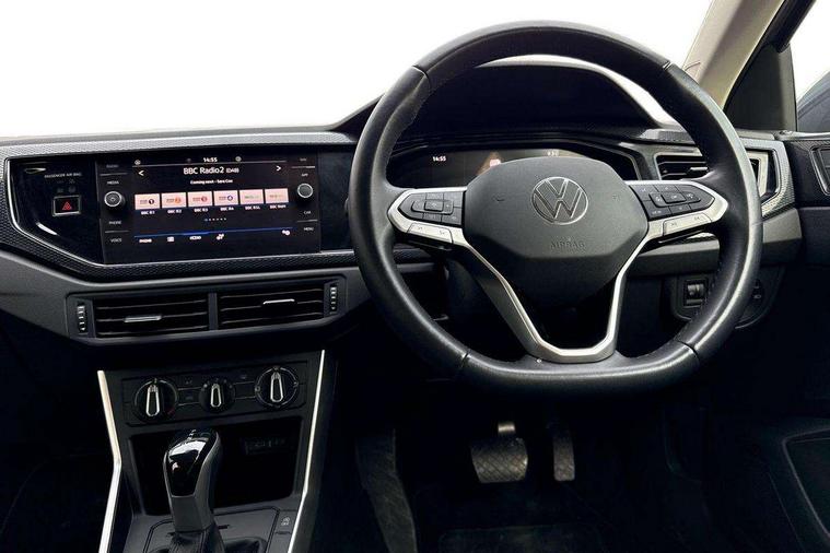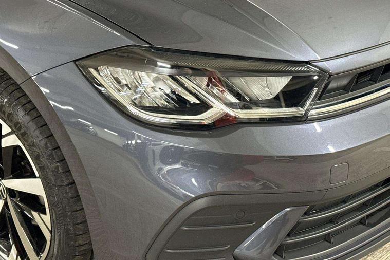 Advanced driver attention and drowsiness monitor, Bluetooth mobile phone interface, Dynamic road sign display, Emergency call service, Multifunction front facing camera for distance control, Park distance control, Power assisted speed sensitive steering, Predictive adaptive cruise control without follow-to-stop and speed limiter, Preparation for navigation system with media and internet package, Preparation for We connect and We connect plus, Rear view camera, Speedo and rev counter, electronic odometer, trip, service interval display and exterior temperature gauge, Standard rear axle, Travel Assist - Lane keeping system and traffic jam assist, Travel assist including emergency assist, Trip computer, Warning signal and warning light for front and rear seatbelts not fastened, Washer fluid level indicator, Wireless app connect, Front wheel drive, Rear shock absorpion, Start-stop system with battery regeneration (recuperation - energy recovery during braking), DAB Digital radio, Diversity antenna for FM reception, Front and rear 6 speakers, Automatic dimming interior rear view mirror, Automatic headlight control with LED separate daytime running lights with coming/leaving home function, Body colour bumpers with chrome inserts, Body colour door handles, Body colour door mirrors, Electric front windows, Engine badge deletion, Headlight range adjustment, Heat insulating and laminated safety glass windshield, LED Headlights, LED rear combination lamps, Power folding adjustable/heated exterior mirrors and front passenger exterior mirror lowering function, Rain sensor, Rear electric windows, Rear fog light, Rear side wing doors, Rear tinted glass from B-pillar backwards approx 65% tinted, Rear windscreen washer and wiper with interval delay, Third brake light, 12V power socket in centre console, 2 front and 2 rear reading lights with switch off delay and dimmer, 2 USB-C ports in the front, 2 USB-C charging sockets on the center console in the rear, 3 rear head restraints, 60/40 split folding rear seat and rear seat bench not split, Ceramique roof lining, Chrome plated radiator grille inserts, air vent surrounds and light switch surrounds, Door and side trim panel, Driver and front passenger seat height adjustment, Driver/passenger sunvisors with illuminated vanity mirrors, Front centre armrest, Front seat backrest storage pockets, Front standard seats, Handbrake lever handle in leather, Hartley/Thomas cloth upholstery, Headliner in recycled material, Isofix child seat preparation easy-fit (for two outer rear seats, and front passenger seat) compatible with I-size, Leather trimmed gear knob, Luggage compartment cover, Luggage compartment lighting, Removable luggage compartment floor, Single front passenger seat, Standard climatic zones, Standard pedal cluster, Three spoke leather wrapped multifunction steering wheel with shifting paddles, Light and vision pack - Polo, 3 point height adj front seatbelts + pretensioners, 3 point seat belt for centre rear seat, 3 point seatbelts, outer rear with ECE lable, ABS, Driver and front passenger airbag with front passenger airbag deactivation, Drivers and front passengers safety optimised head restraints, ESC (Electronic stability control) + EDL (Electronic Differntial lock) and ASR (Traction control), Extended and predictive pedestrian/ cyclist protection, Front assist with autonomous emergency braking (for Adaptive Cruise Control ACC up to 130 mph), Front curtain and side airbags with center airbag, Front disc brakes, Hill hold control, Manual child lock in rear doors, Rear drum brakes, Single tone horn, Tyre pressure loss indicator, Alarm with interior protection, Anti-theft alarm system with interior monitoring, backup horn, and towing protection, Anti-theft wheel bolts, Electronic engine immobiliser, Lava stone black gloss/matt decorative inserts in dash and front door panels, 16" Torsby alloy wheels, Low rolling resistance tyres,
