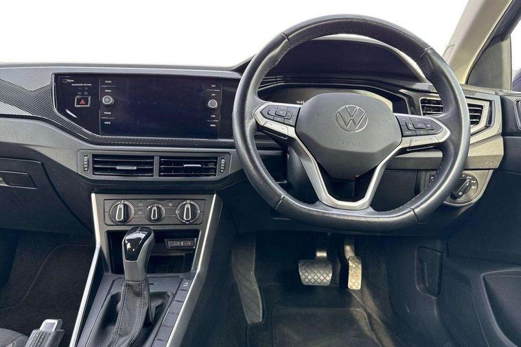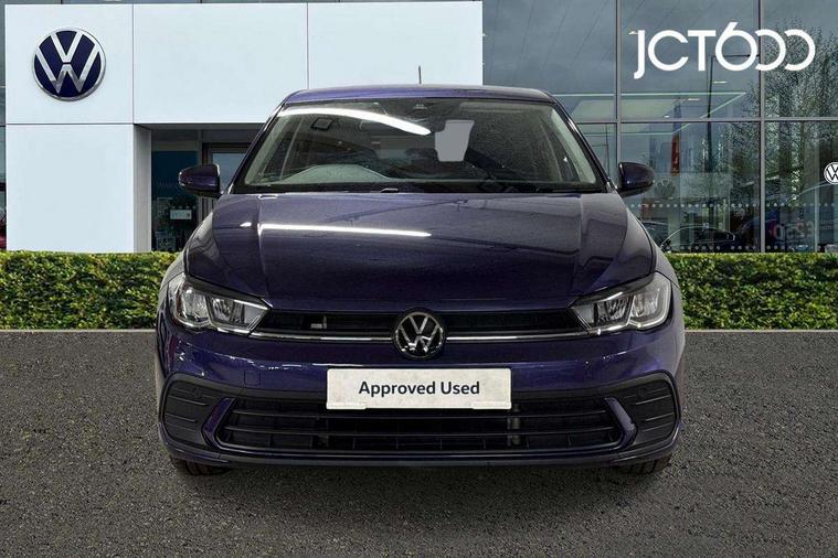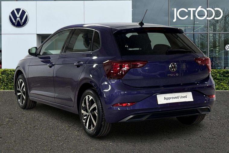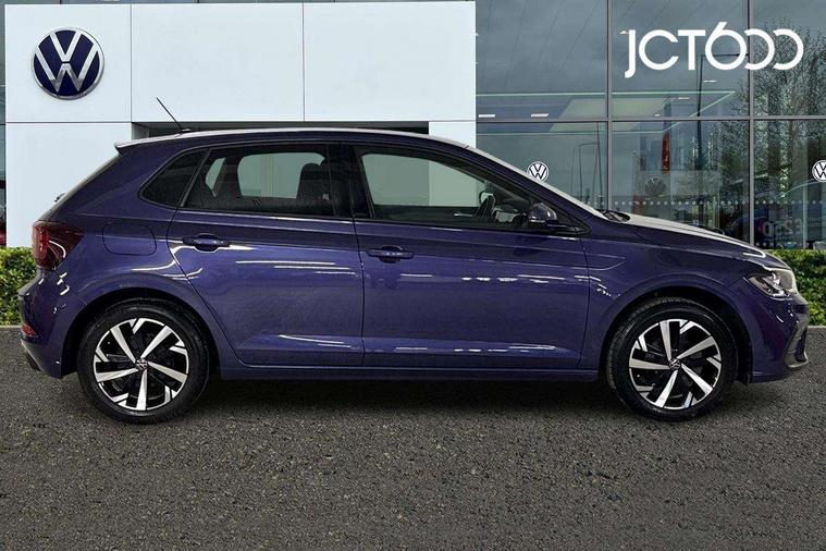 Advanced driver attention and drowsiness monitor, Bluetooth mobile phone interface, Dynamic road sign display, Emergency call service, Multifunction front facing camera for distance control, Park distance control, Power assisted speed sensitive steering, Predictive adaptive cruise control without follow-to-stop and speed limiter, Preparation for navigation system with media and internet package, Preparation for We connect and We connect plus, Rear view camera, Speedo and rev counter, electronic odometer, trip, service interval display and exterior temperature gauge, Standard rear axle, Travel Assist - Lane keeping system and traffic jam assist, Travel assist including emergency assist, Trip computer, Warning signal and warning light for front and rear seatbelts not fastened, Washer fluid level indicator, Wireless app connect, Front wheel drive, Rear shock absorpion, Start-stop system with battery regeneration (recuperation - energy recovery during braking), DAB Digital radio, Diversity antenna for FM reception, Front and rear 6 speakers, Automatic dimming interior rear view mirror, Automatic headlight control with LED separate daytime running lights with coming/leaving home function, Body colour bumpers with chrome inserts, Body colour door handles, Body colour door mirrors, Electric front windows, Engine badge deletion, Headlight range adjustment, Heat insulating and laminated safety glass windshield, LED Headlights, LED rear combination lamps, Power folding adjustable/heated exterior mirrors and front passenger exterior mirror lowering function, Rain sensor, Rear electric windows, Rear fog light, Rear side wing doors, Rear tinted glass from B-pillar backwards approx 65% tinted, Rear windscreen washer and wiper with interval delay, Third brake light, 12V power socket in centre console, 2 front and 2 rear reading lights with switch off delay and dimmer, 2 USB-C ports in the front, 2 USB-C charging sockets on the center console in the rear, 3 rear head restraints, 60/40 split folding rear seat and rear seat bench not split, Ceramique roof lining, Chrome plated radiator grille inserts, air vent surrounds and light switch surrounds, Door and side trim panel, Driver and front passenger seat height adjustment, Driver/passenger sunvisors with illuminated vanity mirrors, Front centre armrest, Front seat backrest storage pockets, Front standard seats, Handbrake lever handle in leather, Hartley/Thomas cloth upholstery, Headliner in recycled material, Isofix child seat preparation easy-fit (for two outer rear seats, and front passenger seat) compatible with I-size, Leather trimmed gear knob, Luggage compartment cover, Luggage compartment lighting, Removable luggage compartment floor, Single front passenger seat, Standard climatic zones, Standard pedal cluster, Three spoke leather wrapped multifunction steering wheel with shifting paddles, Light and vision pack - Polo, 3 point height adj front seatbelts + pretensioners, 3 point seat belt for centre rear seat, 3 point seatbelts, outer rear with ECE lable, ABS, Driver and front passenger airbag with front passenger airbag deactivation, Drivers and front passengers safety optimised head restraints, ESC (Electronic stability control) + EDL (Electronic Differntial lock) and ASR (Traction control), Extended and predictive pedestrian/ cyclist protection, Front assist with autonomous emergency braking (for Adaptive Cruise Control ACC up to 130 mph), Front curtain and side airbags with center airbag, Front disc brakes, Hill hold control, Manual child lock in rear doors, Rear drum brakes, Single tone horn, Tyre pressure loss indicator, Alarm with interior protection, Anti-theft alarm system with interior monitoring, backup horn, and towing protection, Anti-theft wheel bolts, Electronic engine immobiliser, Lava stone black gloss/matt decorative inserts in dash and front door panels, 16" Torsby alloy wheels, Low rolling resistance tyres,