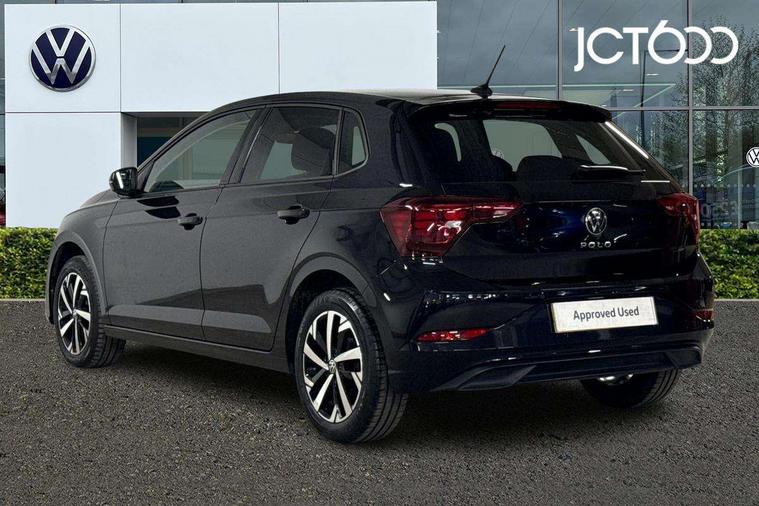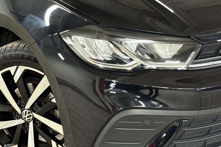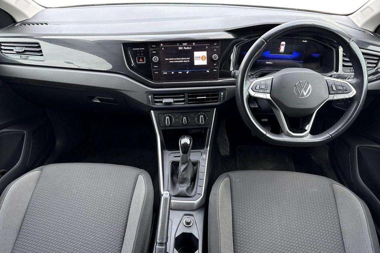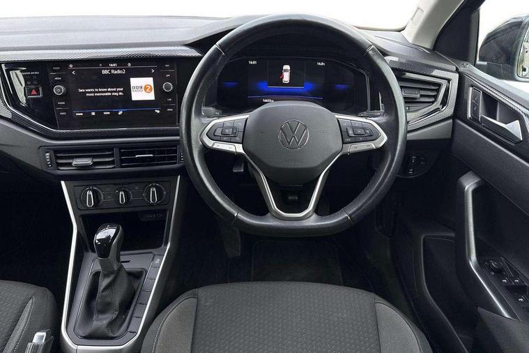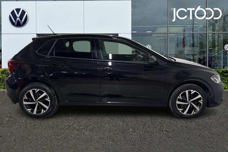 Advanced driver attention and drowsiness monitor, Bluetooth mobile phone interface, Dynamic road sign display, Emergency call service, Multifunction front facing camera for distance control, Park distance control, Power assisted speed sensitive steering, Predictive adaptive cruise control without follow-to-stop and speed limiter, Preparation for navigation system with media and internet package, Preparation for We connect and We connect plus, Rear view camera, Speedo and rev counter, electronic odometer, trip, service interval display and exterior temperature gauge, Standard rear axle, Travel Assist - Lane keeping system and traffic jam assist, Travel assist including emergency assist, Trip computer, Warning signal and warning light for front and rear seatbelts not fastened, Washer fluid level indicator, Wireless app connect, Front wheel drive, Rear shock absorpion, Start-stop system with battery regeneration (recuperation - energy recovery during braking), DAB Digital radio, Diversity antenna for FM reception, Front and rear 6 speakers, Automatic dimming interior rear view mirror, Automatic headlight control with LED separate daytime running lights with coming/leaving home function, Body colour bumpers with chrome inserts, Body colour door handles, Body colour door mirrors, Electric front windows, Engine badge deletion, Headlight range adjustment, Heat insulating and laminated safety glass windshield, LED Headlights, LED rear combination lamps, Power folding adjustable/heated exterior mirrors and front passenger exterior mirror lowering function, Rain sensor, Rear electric windows, Rear fog light, Rear side wing doors, Rear tinted glass from B-pillar backwards approx 65% tinted, Rear windscreen washer and wiper with interval delay, Third brake light, 12V power socket in centre console, 2 front and 2 rear reading lights with switch off delay and dimmer, 2 USB-C ports in the front, 2 USB-C charging sockets on the center console in the rear, 3 rear head restraints, 60/40 split folding rear seat and rear seat bench not split, Ceramique roof lining, Chrome plated radiator grille inserts, air vent surrounds and light switch surrounds, Door and side trim panel, Driver and front passenger seat height adjustment, Driver/passenger sunvisors with illuminated vanity mirrors, Front centre armrest, Front seat backrest storage pockets, Front standard seats, Handbrake lever handle in leather, Hartley/Thomas cloth upholstery, Headliner in recycled material, Isofix child seat preparation easy-fit (for two outer rear seats, and front passenger seat) compatible with I-size, Leather trimmed gear knob, Luggage compartment cover, Luggage compartment lighting, Removable luggage compartment floor, Single front passenger seat, Standard climatic zones, Standard pedal cluster, Three spoke leather wrapped multifunction steering wheel with shifting paddles, Light and vision pack - Polo, 3 point height adj front seatbelts + pretensioners, 3 point seat belt for centre rear seat, 3 point seatbelts, outer rear with ECE lable, ABS, Driver and front passenger airbag with front passenger airbag deactivation, Drivers and front passengers safety optimised head restraints, ESC (Electronic stability control) + EDL (Electronic Differntial lock) and ASR (Traction control), Extended and predictive pedestrian/ cyclist protection, Front assist with autonomous emergency braking (for Adaptive Cruise Control ACC up to 130 mph), Front curtain and side airbags with center airbag, Front disc brakes, Hill hold control, Manual child lock in rear doors, Rear drum brakes, Single tone horn, Tyre pressure loss indicator, Alarm with interior protection, Anti-theft alarm system with interior monitoring, backup horn, and towing protection, Anti-theft wheel bolts, Electronic engine immobiliser, Lava stone black gloss/matt decorative inserts in dash and front door panels, 16" Torsby alloy wheels, Low rolling resistance tyres,