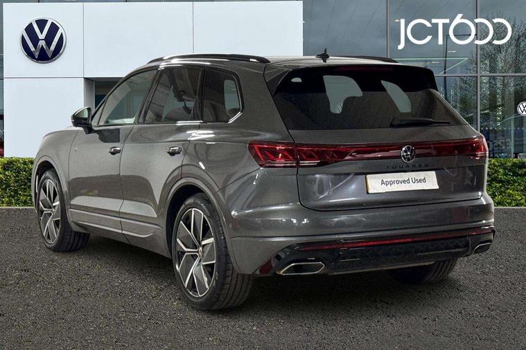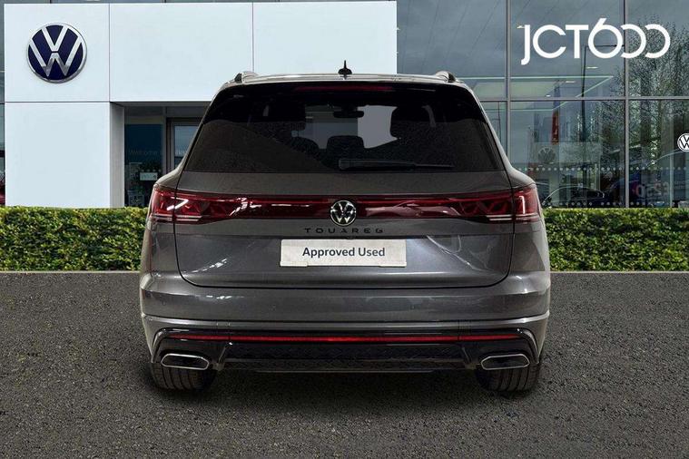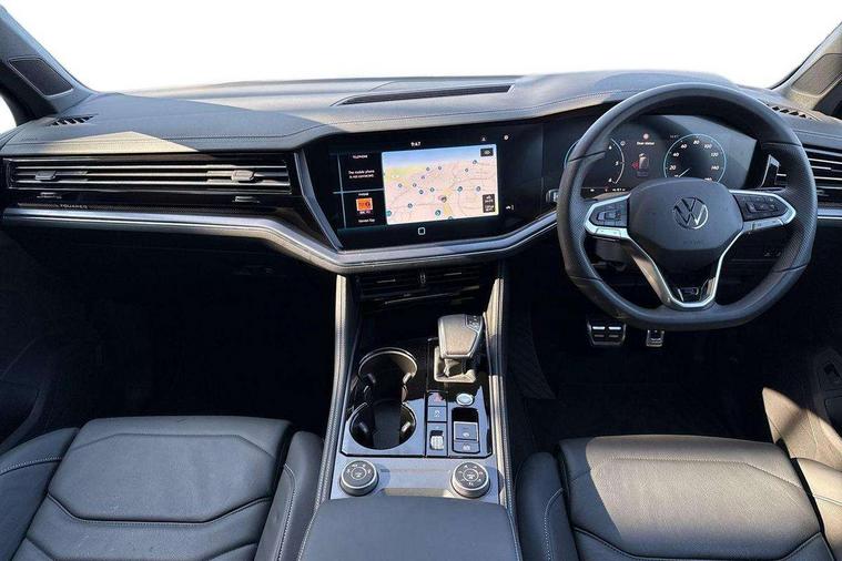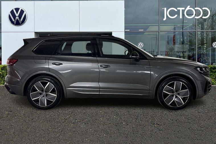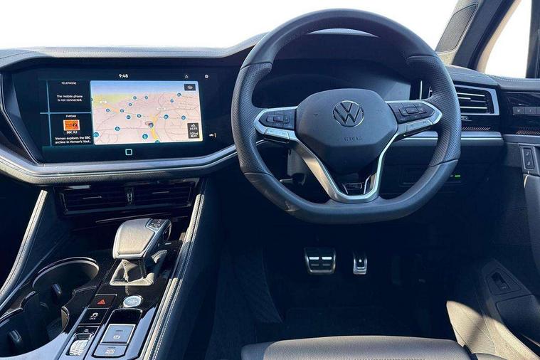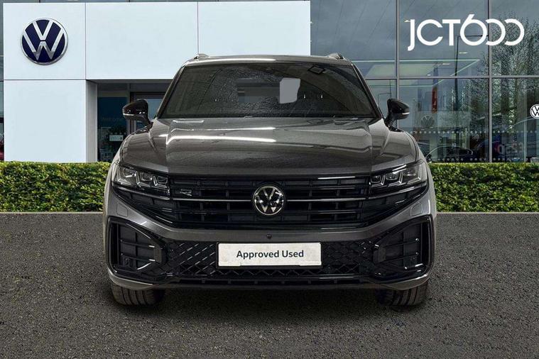 15" Screen Top infotainment system Premium (MIB3), Adaptive cruise control, Advanced driver attention and drowsiness monitor, Driver profile selection, Dynamic road sign display, E-Sim card for online connectivity, eCall emergency system, Innovision cockpit, Intelligent park assist, Mobile phone interface with inductive charging, Multi-colour Active Info display, Park Assist - Sensor controlled steering aid to assist parallel or bay parking, PAS, Warning signal and warning light for front and rear seatbelts not fastened, Wireless app connect, Adaptive chassis control, DAB Digital radio, Diversity antenna for AM/ FM reception, We Connect and We Connect Plus functionality, Automatic coming/leaving home lighting function, Automatic headlights, Black door mirrors, Black style comfort bumpers, Dynamic headlight range control with dynamic cornering light, Electric front tilt/slide panoramic sunroof and fixed rear sunroof, Electrically power adjustable, heated, folding, auto dimming, front passenger exterior door mirror lowering function, External USB type C socket and charging sockets, Gloss black roof rails, HD LED Matrix beam plus digital headlight projection with variable light distribution, Headlight washers, Highway light, LED 3rd brake light, LED daytime running lights, LED rear combination lamp with variable lighting functions and special styling, Poor weather light, Rain sensor, Rear exhaust tailpipe, Rear fog light with back up light on both sides, Rear light bar and illuminated logo, Rear side wing doors, Rear wiper, Stainless steel door sill protection, 12V socket in centre console, 3 rear headrests, 3 seat bench in 2nd row, 4 zone climate control, Airbag label on sun visor and B-pillar, Brushed stainless steel pedals, Double sun visors with illuminated vanity mirrors, Front + rear carpet mats, Front centre armrest, Leather wrapped multifunction sports steering wheel, heated, with touch control and shift paddles, Mechanical rear seat release, Power adjustable lumbar support in front, Power seats in front, right side with memory features and seat cushion depth adjustment, Rear seat backrest and split folding with center armrest, Single front passenger seat, Memory pack plus - Touareg, 3 point seatbelts, outer rear with ECE lable, ABS, Child locks on rear doors, Curtain airbags, Driver and front passenger safety-optimised head restraints, Driver/Front Passenger airbags, Extended pedestrian protection measures, Front assist, Front seat side impact airbags, Generative braking with start and stop system, Height adjustable 3 point front seatbelts with pre tensioners, Passenger airbag deactivate switch, Three 3 point rear seatbelts, Two tone horn, Warning triangle and first aid kit, Alarm system with interior protection, Easy open and close sensor controlled luggage compartment opening and closing with remote unlocking, Keyless Access Keyless locking and starting system with SAFELOCK, Aluminium decorative inserts, Black decorative trims, Gloss black decorative inserts in centre console, Tool kit,