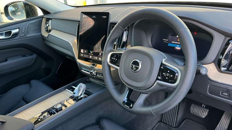 11.2" centre console touch screen, 12.3" Progressive Driver Display, 360 degree surround view parking camera with side proximity sensors, Adaptive cruise control, Adjustable steering wheel force, Android auto (Wired), Apple carplay (wired), Bluetooth handsfree system, Driver alert control with lane keeping aid, Emergency services call system, Front and rear park assist, Google Automotive Services, Intelligent speed assistance, Oncoming Lane Mitigation, PAS, Power operated tailgate with handsfree opening and closing, Service interval indicator, Speed limiter, Speed sensitive steering, Trip computer, Volvo cars services with app, Volvo on call with App, Wireless/Inductive Mobile Phone Charging, 8 speed automatic transmission with start/stop + manual change functions, DAB Digital radio, Premium Sound by Harman Kardon, dirac unison, dolby pro logic II surround sound, 13 speakers/600W output and fresh air subwoofer, Steering wheel remote infotainment controls, Adaptive brake lights with high level LED brake lights, Auto dimming interior + exterior mirrors, Automatic headlight levelling system, Automatic LED Headlights + Active high beam incorporating daytime running lights, Electric adjustable/heated/auto power folding door mirrors, Electric front+rear windows, Front aluminium tread plates, Heated front windscreen, High gloss black door mirrors and window surround, High gloss black front and rear bumper decoratives, High gloss black mesh front grille with high gloss black surround, Home safe and approach lighting, Integrated roof rails in high gloss black, Puddle lights, Rain sensor with automatic windscreen wiper activation, Rear side wing doors, Rear wiper, Roof antenna, Roof spoiler, Tinted windscreen, Visible VIN plate, 12V socket in front tunnel console and luggage compartment, 3 seat bench in 2nd row, 3 Spoke tailored steering wheel with chrome trim, 4 Zone electronic climate control, A-pillar parking ticket holder, Air purifier particulate matter (PM) 2.5 filter, B Pillar ventilation, Bright metal luggage scuff plate, Centre console cupholders and storage, Charcoal floor mats, Front and rear courtesy lights, Front and rear door pocket illumination, Front cupholder illumination, Front footwell illumination, Front reading lights, Front seat cushion extensions, Glovebox compartment with illumination, Head restraints for all seats, Heated front seats, Heated steering wheel, Height/reach adjustable steering column, Illuminated luggage compartment, Illuminated vanity mirrors + ticket holder, Inner door release handle illumination, ISOFIX attachment on outer rear seats, Load cover, Load protection net, Multi directional lumbar support, Power driver seat with memory + exterior mirrors memory, Power height adjustable passenger seat, Power passenger seat with memory, Quilted nordico leather upholstery, Rear armrest with cupholder, Rear footwell and front and rear side step illumination, Rear reading lights, Rear seat concealed storage, Single front passenger seat, Tailgate illumination and ambient door lighting, Underfloor stowage compartment, Versatile split folding rear seat - 60/40, Driver assist pack without Adaptive cruise control - XC60, 5 three point seatbelts, City safety with steering support with Pedestrian + cyclist + front collision warning with full auto brake and rear auto brake, Drivers knee airbag, Dual stage driver/passenger airbags, Electronic parking brake with auto hold, First aid kit, Front seats SIPS airbags, Hill descent control - Off-road drive mode, Hill start assist, IC (Inflatable Curtains) - Full Length, Passenger airbag cut-off device, Power child locks on rear doors, Road sign information display, Run off Road Mitigation, Run off Road Protection, Seatbelt reminder and pretensioners, SIPS (Side Impact Protection System), Slippery road and hazard light alert, Stability and Traction Control with Spin control, Engine Drag Control and Corner Traction Control, Tyre pressure monitoring system, Vehicle deceleration control with Anti-lock Brake System, Electronic Brake Distribution and Emergency Brake Assist, Warning triangle, WHIPS whiplash protection system - front, Anti-theft alarm including immobiliser/volume sensor + level sensor, Key integrated remote control central locking + fuel flap with deadlocking system and auto open/close power windows, Keyless Drive (includes Keyless Entry and Keyless Start), Locking wheel nuts, Private locking for tailgate, Summer tyres,