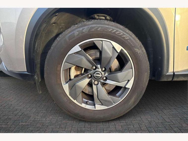 Android auto/Apple CarPlay (Wired), Blind spot warning, Drive assist custom mode, Drive modes (sport, normal, eco, snow, off-road), Driver drowsiness and attention warning, e-Pedal step, Electric speed sensitive power steering, Emergency and breakdown call, Event data recorder, Front and rear parking sensors, Full Digital 12.3" TFT Digital Combimeter, Idle stop/start system, Intelligent driver alert system, Intelligent forward collision warning, Intelligent lane departure warning, Intelligent lane intervention, Intelligent lane keep assist, Maximum speed limiter, Moving object detection, Nissan connect 8" touchscreen infotainment system, Push button starter, Rear cross traffic alert, Rear view camera, Reversing detection, Traffic sign recognition with legal speed adjustment, Trip computer, Wireless charging pad, 6 speakers, AM/FM audio system with DAB, Bluetooth audio streaming, Front USB connections (Type-A and Type-C), Rear USB charging only ports 2 Type-C, Auto dimming rear view mirror, Auto rear wiper when reversing, Body colour mirror caps, Body coloured door handles, Bodyside mouldings, Chrome side window finisher, e-4ORCE badging, e-POWER badging, Electric auto folding door mirrors, Electrically adjustable and heated door mirrors, Follow me home headlights, High beam assist, Intelligent auto headlights, LED 3rd brake light, LED daytime running lights, LED Headlights, LED rear lights, One touch front and rear electric windows with remote opening and closing, Partially body coloured bumpers, Rain sensing wipers, Rear reversing light (bulb lighting), Rear roof spoiler, Rear side wing doors, Rear styling plate, Shark fin antenna, Splash free wipers, Three blink turn signal, 12v power socket in dashboard and luggage, 2 headrests in 3rd row, 2 seat bench in 3rd row, 2x 3-point seat belts in 3rd row, 3 bench rear seats in 2nd row, 3 rear headrests, 40/20/40 folding rear seats with recline, 50/50 split/folding 3rd row of seats, Butteryfly console, Chrome interior door handles, Cloth monoform upholstery, Cup holders in 3rd row, Driver and front passenger sunvisors with illuminated vanity mirrors, Driver seat back pocket, Dual zone automatic climate control with pollen filter, Fore/Aft adjustable rear seats, Front centre console and armrest, Front cupholders, Front door with bottle holders, Height adjustable driver's seat, Height adjustable front headrests, Height adjustable passenger seat, Leather shift knob, Leather steering wheel, Luggage space lighting, Multifunction steering wheel, Passenger seat back pocket, Rear armrest with 2 cupholders, Rear door bottle holders, Single front passenger seat, Tilt/telescopic adjustable steering wheel, Two rear isofix child seat anchorage points with top tether, 3rd row seat belts reminder, 3x3 point rear seatbelt pretensioners + load limiters, ABS with EBD and brake assist, Active brake limited slip, Auto hold function, Child locks on rear doors, Curtain and front side, far side airbags, Driver and passenger airbags, Driver, passenger and 2nd row rear seat belt reminder, Electronic parking brake, Front seatbelt pretensioners + load limiters, Height adjustable front seatbelts, Hill start assist, Intelligent blind spot intervention, Intelligent front emergency braking with pedestrian, cyclist recognition and junction assist, Intelligent rear automatic braking, Tyre pressure monitoring system, Vehicle dynamic control, Approach unlock and walk away lock, Engine immobiliser, Remote central door locking with deadlocking, Thatcham Cat.1 alarm, 18" Diamond cut alloy wheels, Tyre puncture repair kit,