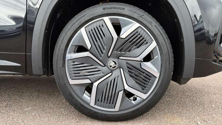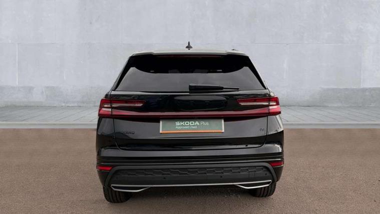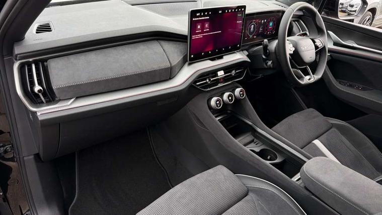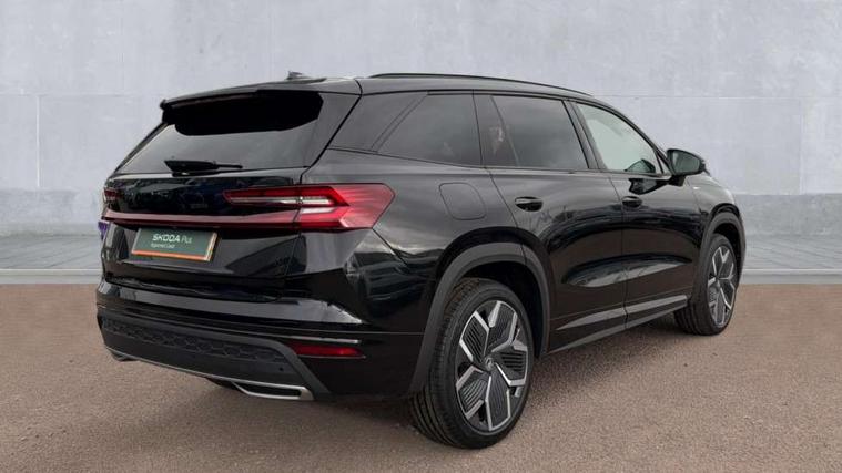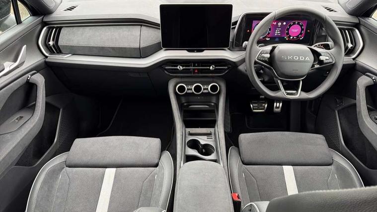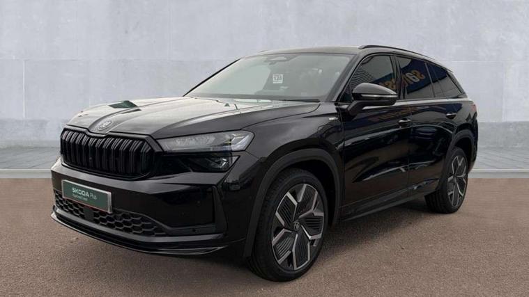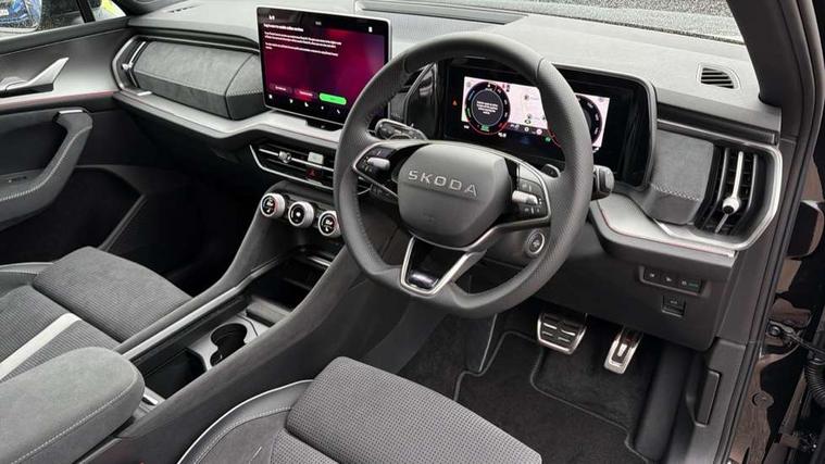 13" satellite navigation touchscreen display, Blind spot detection with door exit warning, Bluetooth system, ChatGPT functionality, Driver alert - Fatigue and drowsiness monitor, Dry display cleaner, Emergency call, Front and rear parking sensors, Front cross traffic assist, Lane assist, PAS, Rear traffic assist, Tailgate unlocking from outside, Traffic sign recognition, USB C Port x 2 in front centre console, Virtual Cockpit - 10.25" digital display, Voice control system, Wireless charging for two smartphones (15W) with cooling function, Wireless SmartLink for Apple CarPlay and Android Auto, 32A charging cable, Stop/start function, 2x USB-C in the rear, DAB Digital radio, Aero front windscreen wipers with intermittent function, Auto dimming rear view mirror, AWL (all weather lighting) and all weather light with cornering function, Black diffuser and decorative tailpipe with a unique dark chrome finish, Black roof rails, Black sports styling including front grille and window surrounds, Black wheel arch surrounds, Body colour door handles, Cornering light and poor weather light, Electric folding /adjustable/separted heated/folding door mirrors, auto dimming with boarding sports and memory function, Electric front and rear windows, Exterior black decorative trims, Front and rear sports bumpers including lower rear chrome strip, Front grille with horizontal light strip, Gloss black door mirrors, Gloss black window frame and D pillar, Heat insulating glass in windshield, Heated rear window, Ice scraper in fuel tank cap, LED daytime running lights, LED matrix headlights with AFS and LED fog lights, LED rear light with welcome effect and dynamic turn signals, LED third brake light in rear spoiler, Light assistant with automatic headlight control and coming home feature, Logo projection in door mirrors, Multiple matrix beam, Privacy glass, Rear roof spoiler, Rear side wing doors, Rear window wiper, Red decorative strip between rear LED lights, Safety reflectors on front and rear doors, Sportline badge on front fenders, Tailgate lettering in Black, Unique dark chrome design logo on alloy wheels, Window control switches with black trim, Windscreen wipers with rain sensor, Without engine designation, 1.5l bottle holder points in all door, 1x centre rear reading light, 3 configurable smart dials with 32mm coloured display, 3 seat bench in 2nd row, 3 spoke multi-function heated leather sports steering wheel with paddle shift, 4 foldable roof handles with rear coat hooks, Aluminium pedals, Ambient interior lighting - Dashboard, front-door stowage compartments, front and rear door panels and footwell lighting, Automatic gear selector on steering column, Chrome interior door handles, Driver/front passenger reading lights, Fabric headlining, Fixed bench 40:60:40 split folding backrests, Front and rear floor mats, Front centre armrest with jumbo box storage compartment, cup holder and 12V socket, Front sport seats, Height adjustable front headrests, Interior black decorative trims, Isofix child seat fittings in outer rear seats and front passenger with top tether, iV badging on boot, Manually adjustable steering column, Pollen filter, Rear centre armrest with cupholders, Rear seat boot backrest release, Single front passenger seat, Skoda lettering on steering wheel, Storage pocket including mobile phone pockets on the backs of the front seats, Sunvisors with illuminated vanity mirrors, Three rear height adjustable headrests, Ticket holder on A Pillar, Tri zone climate control, Umbrella in door panel x1 made from sustainable materials, Upper and lower glovebox with card holder and coin compartment, USB C port by rear view mirror for charging only (15W), Acoustic package - Kodiaq, Performance package - Kodiaq, Sportline design selection pack - Kodiaq, Auto door release and activation of warning lights in the event of an accident, Driver and front passenger airbag with knee airbag and front passenger airbag deactivation, Electric child locks, Electronic parking brake, ESC (incl. ABS+EMD+MSR+ASR+EDL+HBA+DSR+RBS+ESBS+MCB+TSA+XDS), Front assist with braking reaction to vehicles, pedestrians and cyclists, Front disc brakes, Fuel cut off safety device, Height adjustable front 3 point seatbelts + pretensioners, Hill hold assist, Junction assist with automatic emergency braking, Rear disc brakes, Safety vest holder in door, Seat belt reminder for all seats, Three point rear seat belts, Two tone horn, Tyre pressure monitor, Alarm with interior monitoring and tilt sensor with safe function, Anti-theft wheel bolts, Immobiliser, Remote central locking with 2 keys, 20" Rila anthacite polished alloy wheel with black matte aero covers, Breakdown kit, Tool kit,