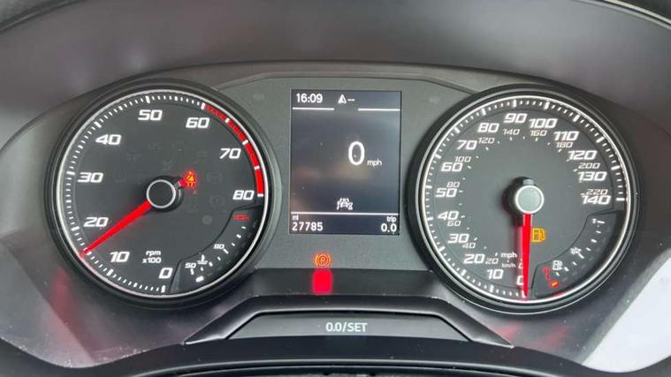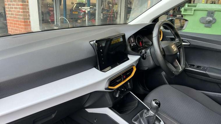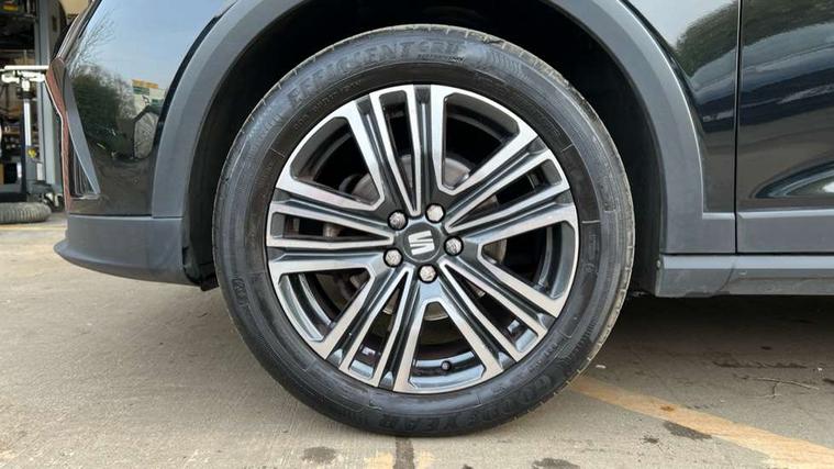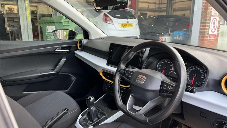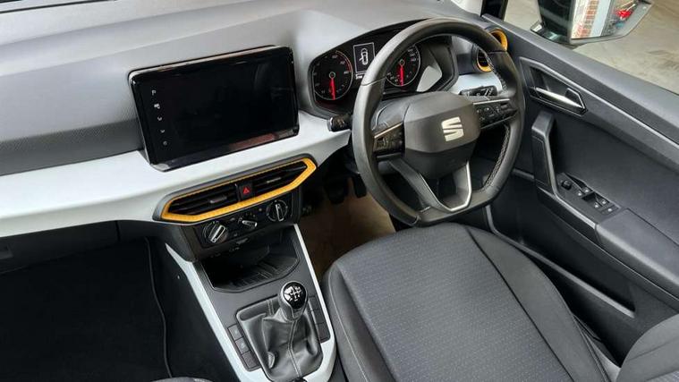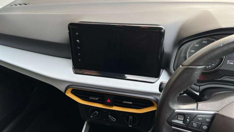 'Lights On' Reminder warning buzzer, 8" Digital cockpit, Cruise control and speed limiter, Digital clock, E-call, Electric speed sensitive power steering, Full Link Smartphone Integration with Mirror Link, Apple Car Play, Google Android Auto with USB cable for Apple and Android compatibility, Lane keeping system, Low fuel warning light, Outside temperature display, Rear parking sensor, RPM counter, Seat connect with safety, service, remote and online, Trip computer, Bluetooth interface for hands free and audio streaming, DAB digital radio and AM/FM radio, Steering wheel mounted audio controls, Anti theft roof antenna, Automatic activation of hazard warning lights, Black roof rails and window surrounds, Body coloured bumpers, Body coloured door handle inserts, Body coloured door mirrors, Dimming rear view mirror, ECO LED automatic headlights and LED daytime running lights, Electric adjustable door mirrors, Electric front/rear windows, Hidden exhaust pipe, Licence plate lights, Protective side mouldings, Rain sensing wipers, Rear fog lights, Rear side wing doors, Rear spoiler, Rear window wash/wipe, Third brake light, Visible VIN plate, Windshield wiper with intermittent control and potentiometer, 2 cupholders, 3 seat bench in 2nd row, 60/40 split folding rear seat, Air conditioning, Cloth upholstery, Double boot floor, Driver sunvisor with covered mirror + card holder, Dust/pollen filter, Flat bottomed leather steering wheel/gear knob/handbrake, Front courtesy light with front reading lights, Gear shift indicator, Grey interior roof, Height adjustable front seats, Height/reach adjustable steering column, Illuminated boot, Instrument lighting with brightness control, ISOFIX points in outer rear seats with top tether anchorage points, Passenger sunvisor with vanity mirror, Single front passenger seat, Two front and three rear height adjustable headrests, Connectivity pack plus - Arona, Interior chrome pack - Arona, 3 point seatbelts on all rear seats, ABS, Active front headrests, Child locks on rear doors, Driver and front passenger airbags with front passenger airbag de activation, front side and curtain airbags, Electronic stability control, Emergency Brake Assist (EBA) and front assist, Front and rear seatbelt reminder, Hill hold control, Multi-Collision braking, Tiredness recognition system, Traction control, Tyre pressure monitoring system, Electronic engine immobiliser, Locking wheel bolts, Remote central locking + deadlocks, Titan black dashboard, 17" Dynamic machined alloy wheels,