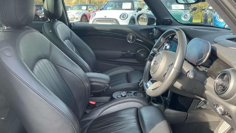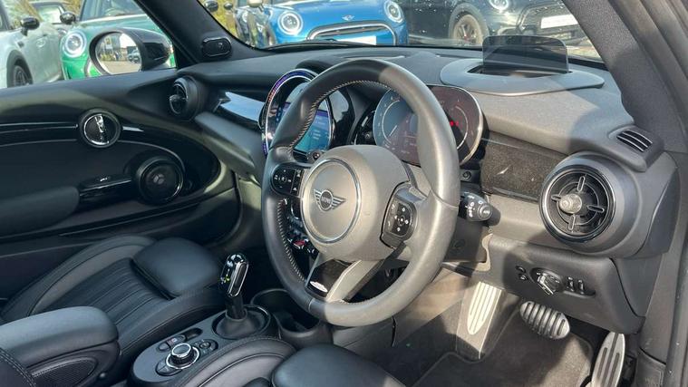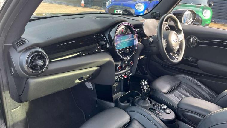 Apple CarPlay, Automatic start/stop function with brake energy recuperation, Compatible mobile phone bluetooth with audio streaming, Cruise control with brake assist, Electro-mechanical speed dependant steering assistance, Flexible car sharing preparation, Instrument cluster, MINI Driving Modes - centre toggle switch to control driving setting (sport, mid and green), Mini E-call, MINI TeleServices, On board computer, Rear park distance control, Service interval indicator, Double Vanos system, Eight speed steptronic sport transmission, with gearshift paddles, Fully variable valve control, High precision injection, Performance Control, 8.8" touchscreen with LED ring, FM tuner and DAB digital radio, 3rd brake light, Automatic headlight activation switch, Bonnet scoop, Dynamic brake lights, Electric front windows, Heated rear window, Heated windscreen washer jets, JCW Aerodynamic kit - Front and rear bumpers with sporty JCW styling and part-painted side sills with MINI John Cooper Works door sill finishers, John Cooper Works logo above an individual grille strut in Chilli Red, John Cooper Works rear spoiler, LED headlight with closed ring and daytime driving lights, Radiator grille piano black border with honeycomb structure in black matt, Rain sensor window wipers, Rear fog lights, Rear LED lights with union jack design, Rear window wiper, Side scuttle panel with integrated indicator, Side scuttle with MINI John Cooper Works logo in black high-gloss with red border, Sun/heat protection glass, Two central exhaust tailpipes with chrome finisher, White indicator lenses, 12V Accessory socket in centre console, 2 seat bench in 2nd row, 4 lashing eyes in luggage compartment, 60/40 split folding rear seat, Anthracite headliner including grab handles and clothes hooks, Carbon black colour line - Knee roll and door armrest, Chrome interior highlights, Cupholders, Front and rear isofix with front passenger airbag deactivation, Front floor mats in velour, Glove compartment, Height and length steering column adjustment, Interior lighting with 12 different colours across the dashboard, underneath door bezel with illuminated laser-engraved design on central display, JCW Sport seats with integrated headrests, adjustable thigh support and John Cooper Works logo, Leatherette gearshift lever and handbrake gaiters, LED reading lights, vanity mirror lights, front foot well light and spotlight on front seats, Manual air conditioning, Mechanical seat adjustment - forward/back & backrest for front seats and driver seat height adjust, Multifunction steering wheel, Passenger seat height adjuster, Rubberised stainless steel pedals, Single front passenger seat, Storage compartments in doors, Storage pocket on back of front seats, Sunvisors with vanity mirrors, Tool kit, Walknappa leather steering wheel with grey seam and John Cooper Works badge on Piano Black lower steering wheel spoke, Piano black exterior pack - JCW, 3 point seatbelts on all four seats, 4-piston fixed-calliper brakes front, 6 Airbags - front, side, head and seat belt tensioners, Anti-lock braking system (ABS), DSC - Dynamic Stability Control, Front and rear disc brakes, Red brake callipers with John Cooper Works logo, Single tone fanfare horn, Tyre pressure monitoring system, Alarm system with tilt sensor, monitoring doors, bonnet interior and tailgate, Electronic vehicle immobiliser, Start/stop toggle with keyless go,