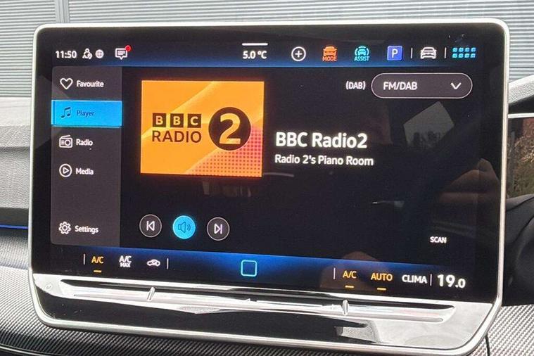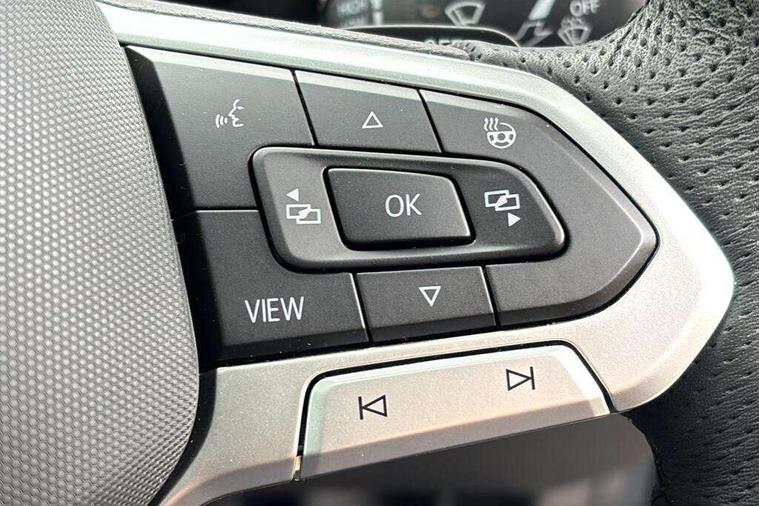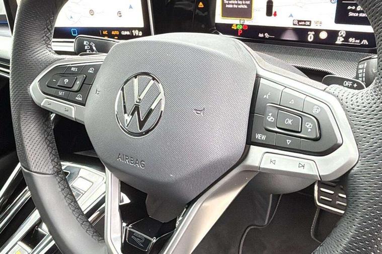 Activated carbon canister, Adaptive cruise control (ACC), Advanced driver attention and drowsiness monitor, Dynamic road sign display, Dynamic steering, E-Sim card for online connectivity, eCall emergency call system, Multi-color Digital cockpit pro, selection of different info profile possible, Multifunction front facing camera for distance control, Navigation system, Oncoming vehicle braking when turning including swerve support, Preparation for light assist system, Speed limiter, Speedo, rev counter, electronic odometer, trip, service interval display, exterior temperature and fuel gauge, Traffic jam assist, Voice enhancer and voice control, Warning signal and warning light for front and rear seatbelts not fastened, We connect plus preparation, We connect preparation, Wireless app connect, Diesel particulate filter, Hybrid propulsion system, Start-stop system with battery regeneration (recuperation - energy recovery during braking), XDS electronic differential lock for improved traction and handling, 2 USB C ports in front, 2 USB charging sockets on the centre console in the rear charging capacity upto 45W, Comfort telephony + wireless charging, without wireless aerial connection, Digital radio reception (DAB), Diversity antenna for FM reception, Gaming platform via car app, Infotainment system with 12.9" display, Mobile phone interface with inductive charging feature, 3rd brake light, Auto headlights, Automatic headlamp activation with Coming home and Leaving home feature, Body colored bumpers in R-Line style, Body colour door handles, Exterior ambient lighting with illuminated door handles, Exterior mirrors convex on the left and aspherical on the right, Front and rear electric windows, Heat insulating windshield made of laminated glass, LED daytime running lights, Rear exhaust tailpipe, Rear fog light on one side and reversing lights on both sides, Rear side wing doors, Rear windscreen washer and wiper with interval delay, Remote electrically foldable door mirrors, puddle lights and reverse activated passenger's door mirror, Welcome light with surround lighting, 12V socket in front centre console, 12V socket in luggage compartment, 3 rear head restraints, 3 seat bench in 2nd row, Ambient lighting with 30 colour including LED light unit in front footwell with selectable light colour, Brushed stainless steel pedals, Carpet mats, front and rear, Chrome plated radiator grille inserts, air vent surrounds and light switch surrounds, Front centre armrest, Integrated front head restraints, ISOFIX anchors for child seats on outer rear bench seats and on front passanger seat compatible for i-Size, Luggage compartment lighting, Plastic gear knob, Premium sports seats in front, Rear cupholder and loadthough, Single front passenger seat, Soul black instrument panel, Split folding backrest with centre armrest and unsplit rear seat bench, Storm grey roof lining, Sun visors with illuminated vanity mirrors, 3 point height adj front seatbelts + pretensioners, 3 rear three point seatbelts, ABS, Autonomous emergency braking front assist with pedestrian and cyclist monitoring, Child locks on rear doors, Driver and front passenger airbag with front passenger airbag deactivation, Electronic parking brake with auto hold, ESC (Electronic Stability Control), Extended pedestrian protection measures, Hill start assist, Rear disc brakes, Two tone horn, Tyre pressure loss indicator, Volkswagen roadside assistance, Anti theft wheel bolts, Preparation for alcohol interlock, Decorative inserts carbon grey for dashboard and front door trim panels,