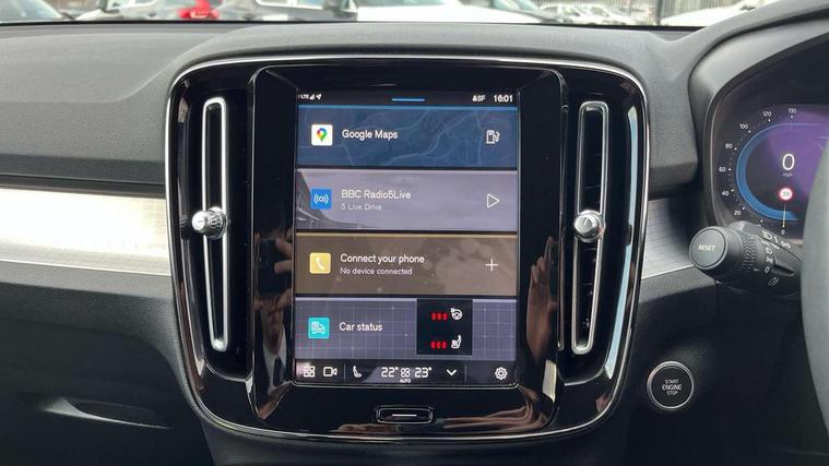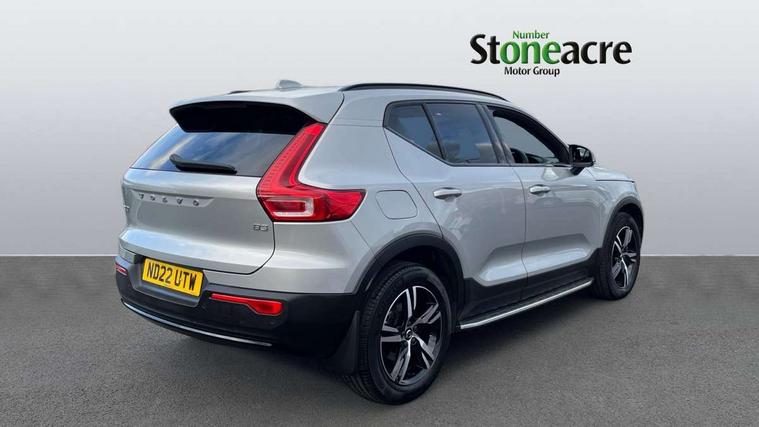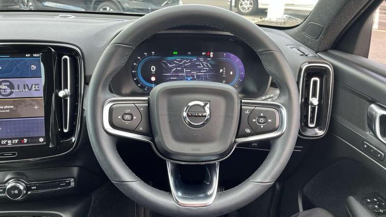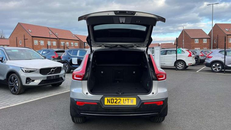 12.3" Progressive Driver Display, 9" centre console portrait touch screen, Adjustable steering wheel force, Bluetooth hands free telephone kit, E-call, eCall emergency call system, Front park assist, Google automatic services - Nav with google maps, apple carplay/android auto, voice recognition with google assistant, Hands free power tailgate, Lane keep assist with driver alert control, Oncoming Lane Mitigation, Rear park assist, Speed limiter, Speed sensitive steering, Wireless/Inductive Mobile Phone Charging, Dynamic chassis, DAB Digital radio, High performance sound, 8 speakers/250W, front USB and 2 rear type C USB, Steering wheel mounted remote controls, Adaptive brake lights with high level LED brake lights, Auto dimming interior mirror, Automatic headlamp levelling, Automatic LED Headlights + Active high beam incorporating daytime running lights, Front aluminium tread plates, Front and rear electric windows, High gloss black front and rear skid plate, High gloss black mesh front grille with high gloss black surround, High gloss black window trim, Home safe and approach lighting, Integrated roof rails in high gloss black, LED front fog lights, Puddle lights, Rain sensor with automatic windscreen wiper activation, Rear side wing doors, Rear wiper, Roof antenna, Roof spoiler, Visible VIN plate, 12V socket in front tunnel console and luggage compartment, 2-Zone electronic climate control with CleanZone air quality system and pollen filter, 3 seat bench in 2nd row, 60/40 versatile split folding rear seat, A-pillar parking ticket holder, Ambient front door and instrumental panel lighting, Centre console cupholders and storage, Flexible load floor and grocery bag holder, Floor mats, Front door pocket and front cupholder illumination, Front footwell illumination, Front headrests, Front reading light and theatre lighting, Front seat cushion extensions, Front tunnel pocket, Glovebox bag hook, Height adjustable passenger seat, Height/reach adjustable steering column, Height/tilt adjustable driver's seat, High gloss centre tunnel deco, Illuminated glovebox, Illuminated luggage compartment, Illuminated tailgate, Illuminated vanity mirrors, Integrated waste bin, Isofix attachments on outer rear seats, Load protection net, Multi directional lumbar support, Power driver seat with memory + exterior mirrors memory, Rear armrest / integral cup holders / storage tray, Rear headrests, Rear reading and courtesy lights, Single front passenger seat, Underfloor cargo storage, Climate pack - XC40, 3x3 point rear seatbelts, City safety includes pedestrian, cyclist and large animal detection and front collision warning with full auto brake, Drivers knee airbag, Dual stage driver/passenger airbags, Electronic parking brake with auto hold, First aid kit, Front and outer rear seatbelt reminder and pretensioners, Front seats SIPS airbags, Hill descent control, Hill start assist, Inflatable curtain, Passenger airbag cut-off device, Power child locks on rear doors, Road sign information display, Run off Road Mitigation, Run off Road Protection, SIPS (Side Impact Protection System), Slippery road and hazard light alert, Stability and Traction Control with Spin control, Engine Drag Control and Corner Traction Control, Tyre pressure monitoring system, Vehicle deceleration control with Anti-lock Brake System, Electronic Brake Distribution and Emergency Brake Assist, Warning triangle, WHIPS whiplash protection system - front, Anti-theft alarm including immobiliser/volume sensor + level sensor, Care key with user defined top speed, Key integrated remote control central locking + fuel flap with deadlocking system and auto open/close power windows, Keyless drive plus handsfree tailgate opening/closing, Locking wheel nuts, Private locking for tailgate,