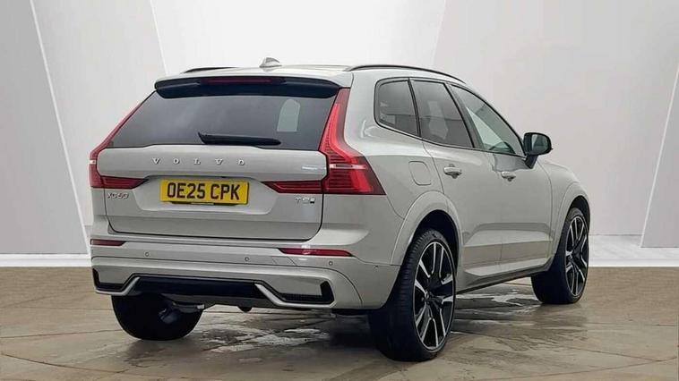 12.3" Progressive Driver Display, 360 degree surround view parking camera with side proximity sensors, 9" centre console touch screen, Adjustable steering wheel force, Apple carplay (wired), Bluetooth handsfree system, Drive mode settings, Driver alert control with lane keeping aid, Emergency services call system, Front and rear park assist, Google Automotive Services, Intelligent speed assistance, Oncoming Lane Mitigation, PAS, Power operated tailgate with handsfree opening and closing, Service interval indicator, Speed limiter, Speed sensitive steering, Trip computer, Volvo cars services with app, Volvo on call with App, Wireless/Inductive Mobile Phone Charging, 2 phase on board charger 6.4kW (home charging limited to 3.7kW), 7m 10amp charge cable with 3 pin plug and 6m 3 phase 16amp type 2/mode 3 charge cable, 8 speed automatic transmission with start/stop + manual change functions, Active four-C chassis + four corner adaptive damper with electronic rear air suspension, Electric rear axle drive, Recharging port located in nearside front wing, DAB Digital radio, Low speed exterior sound speaker, Premium sound by Bowers and Wilkins, dirac live, dolby pro logic II surround sound, 14 speakers/1100W output and fresh air subwoofer, Steering wheel remote infotainment controls, Active bending headlights with adaptive shadow technology, Adaptive brake lights with high level LED brake lights, Auto dimming interior + exterior mirrors, Automatic headlight levelling system, Automatic LED Headlights + Active high beam incorporating daytime running lights, Dark tinted windows for rear side windows and cargo area, Electric adjustable/heated/auto power folding door mirrors, Electric front+rear windows, Headlight cleaning system, High gloss black door mirrors and window surround, High gloss black front and rear bumper decoratives, High gloss black mesh front grille with high gloss black surround, Home safe and approach lighting, Integrated roof rails in high gloss black, Power glass tilt and slide panoramic sunroof with sun curtain, Puddle lights, Rain sensor with automatic windscreen wiper activation, Rear side wing doors, Rear wiper, Roof antenna, Roof spoiler, Tinted windscreen, Visible VIN plate, 12V socket in front tunnel console and luggage compartment, 2 zone electronic climate control with Clean zone air quality system and pollen filter, 3 seat bench in 2nd row, A-pillar parking ticket holder, Air purifier particulate matter (PM) 2.5 filter, B Pillar ventilation, Bright metal luggage scuff plate, Centre console cupholders and storage, Charcoal floor mats, Front and rear courtesy lights, Front and rear door pocket illumination, Front cupholder illumination, Front footwell illumination, Front reading lights, Front seat cushion extensions, Glovebox compartment with illumination, Head restraints for all seats, Heated front seats, Heated steering wheel, Height/reach adjustable steering column, Illuminated luggage compartment, Illuminated vanity mirrors + ticket holder, ISOFIX attachment on outer rear seats, Load cover, Load protection net, Multi directional lumbar support, Power driver seat with memory + exterior mirrors memory, Power folding rear headrests, Power passenger seat with memory, Rear armrest with cupholder, Rear footwell and front and rear side step illumination, Rear reading lights, Rear seat concealed storage, Recharge aluminium tread plates, Single front passenger seat, Tailgate illumination and ambient door lighting, Underfloor stowage compartment, Versatile split folding rear seat - 60/40, Driver assist pack with Driver awareness - XC60, 5 three point seatbelts, City safety with steering support with Pedestrian + cyclist + front collision warning with full auto brake and rear auto brake, Drivers knee airbag, Dual stage driver/passenger airbags, Electronic parking brake with auto hold, First aid kit, Front seats SIPS airbags, Hill descent control - Off-road drive mode, Hill start assist, IC (Inflatable Curtains) - Full Length, Passenger airbag cut-off device, Power child locks on rear doors, Run off Road Mitigation, Run off Road Protection, Seatbelt reminder and pretensioners, SIPS (Side Impact Protection System), Slippery road and hazard light alert, Stability and Traction Control with Spin control, Engine Drag Control and Corner Traction Control, Tyre pressure monitoring system, Vehicle deceleration control with Anti-lock Brake System, Electronic Brake Distribution and Emergency Brake Assist, Warning triangle, WHIPS whiplash protection system - front, Anti-theft alarm including immobiliser/volume sensor + level sensor, Care key with user defined top speed, Key integrated remote control central locking + fuel flap with deadlocking system and auto open/close power windows, Keyless Drive (includes Keyless Entry and Keyless Start), Locking wheel nuts, Private locking for tailgate, Tailored instrument panel with contrast stitching, Tyre sealant kit + 12v compressor,