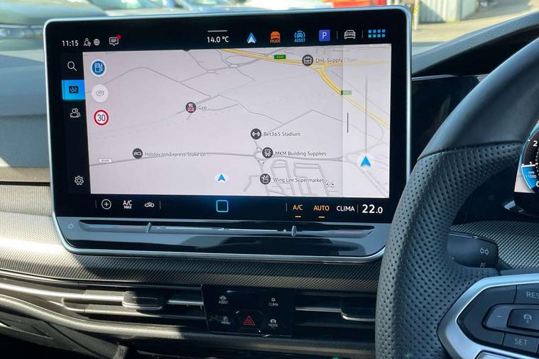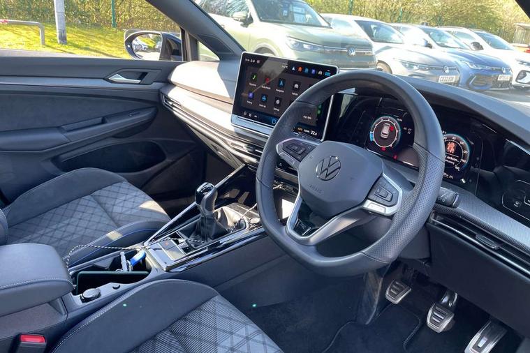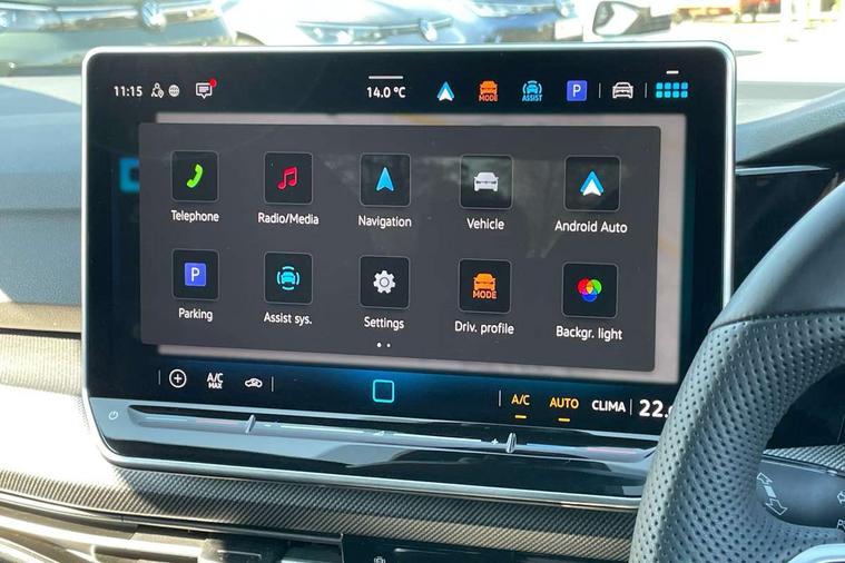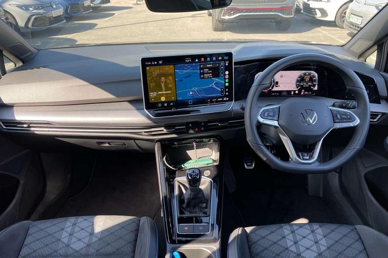 Activated carbon canister, Adaptive cruise control (ACC), Advanced driver attention and drowsiness monitor, Dynamic road sign display, Dynamic steering, E-Sim card for online connectivity, eCall emergency call system, Multi-color Digital cockpit pro, selection of different info profile possible, Multifunction front facing camera for distance control, Navigation system, Oncoming vehicle braking when turning including swerve support, Preparation for light assist system, Speed limiter, Speedo, rev counter, electronic odometer, trip, service interval display, exterior temperature and fuel gauge, Traffic jam assist, Voice enhancer and voice control, Warning signal and warning light for front and rear seatbelts not fastened, We connect plus preparation, We connect preparation, Wireless app connect, Petrol Particulate Filter, Start-stop system with battery regeneration (recuperation - energy recovery during braking), XDS electronic differential lock for improved traction and handling, 2 USB C ports in front, 2 USB charging sockets on the centre console in the rear charging capacity upto 45W, Comfort telephony + wireless charging, without wireless aerial connection, Digital radio reception (DAB), Diversity antenna for FM reception, Gaming platform via car app, Infotainment system with 12.9" display, Mobile phone interface with inductive charging feature, 3rd brake light, Auto headlights, Automatic headlamp activation with Coming home and Leaving home feature, Body colored bumpers in R-Line style, Body colour door handles, Exterior ambient lighting with illuminated door handles, Exterior mirrors convex on the left and aspherical on the right, Front and rear electric windows, Heat insulating windshield made of laminated glass, LED daytime running lights, Rear exhaust tailpipe, Rear fog light on one side and reversing lights on both sides, Rear side wing doors, Rear windscreen washer and wiper with interval delay, Remote electrically foldable door mirrors, puddle lights and reverse activated passenger's door mirror, Welcome light with surround lighting, 12V socket in front centre console, 12V socket in luggage compartment, 3 rear head restraints, 3 seat bench in 2nd row, Ambient lighting with 30 colour including LED light unit in front footwell with selectable light colour, Brushed stainless steel pedals, Carpet mats, front and rear, Chrome plated radiator grille inserts, air vent surrounds and light switch surrounds, Front centre armrest, Integrated front head restraints, ISOFIX anchors for child seats on outer rear bench seats and on front passanger seat compatible for i-Size, Leather gearshift handle, Luggage compartment lighting, Premium sports seats in front, Rear cupholder and loadthough, Single front passenger seat, Soul black instrument panel, Split folding backrest with centre armrest and unsplit rear seat bench, Storm grey roof lining, Sun visors with illuminated vanity mirrors, 3 point height adj front seatbelts + pretensioners, 3 rear three point seatbelts, ABS, Autonomous emergency braking front assist with pedestrian and cyclist monitoring, Child locks on rear doors, Driver and front passenger airbag with front passenger airbag deactivation, Electronic parking brake with auto hold, ESC (Electronic Stability Control), Extended pedestrian protection measures, Rear disc brakes, Two tone horn, Tyre pressure loss indicator, Volkswagen roadside assistance, Anti theft wheel bolts, Preparation for alcohol interlock, Decorative inserts carbon grey for dashboard and front door trim panels,