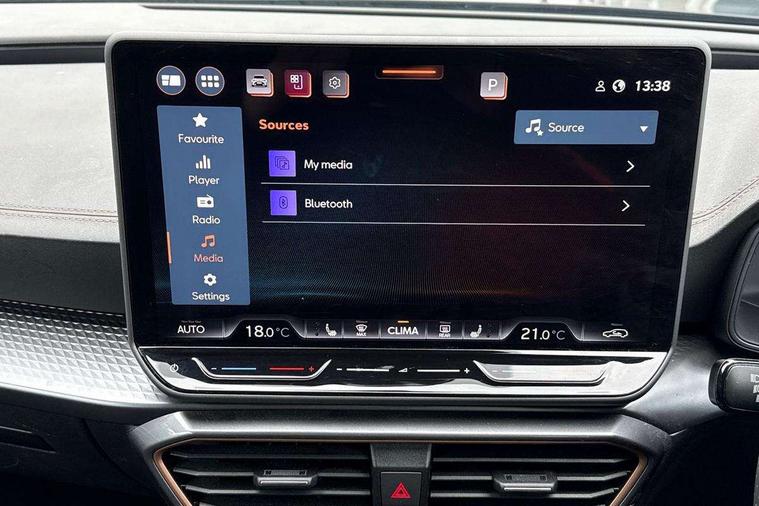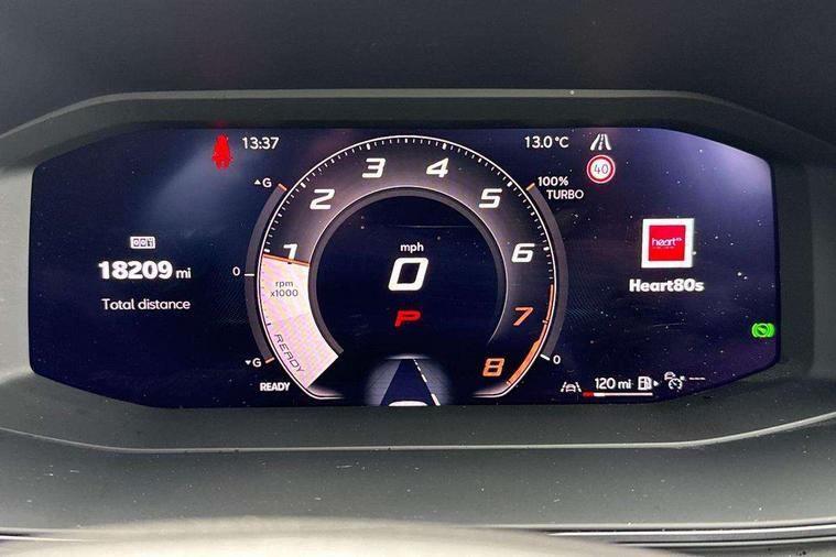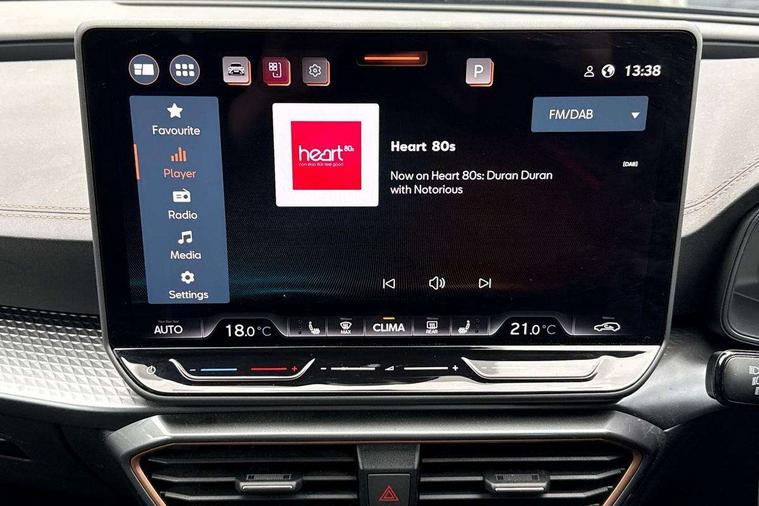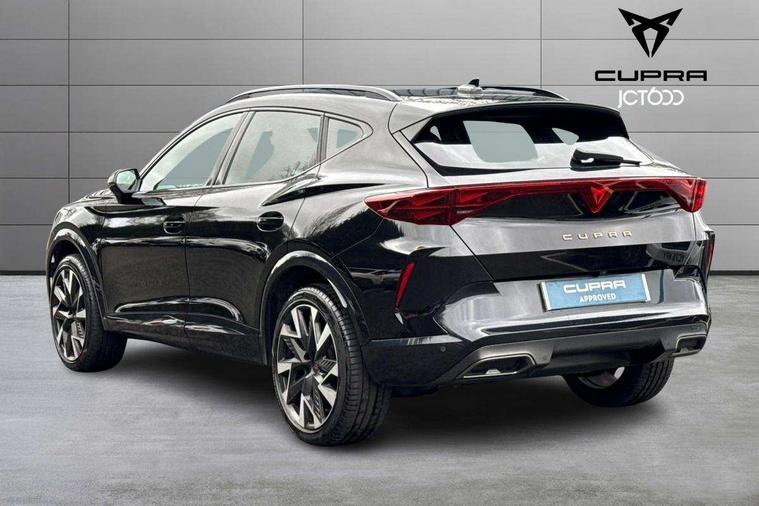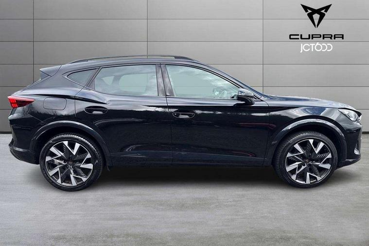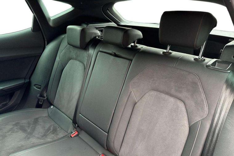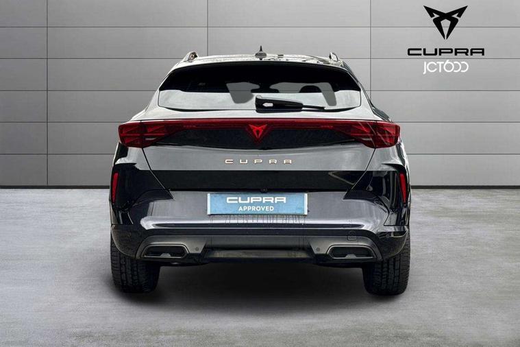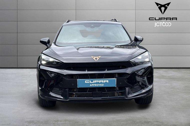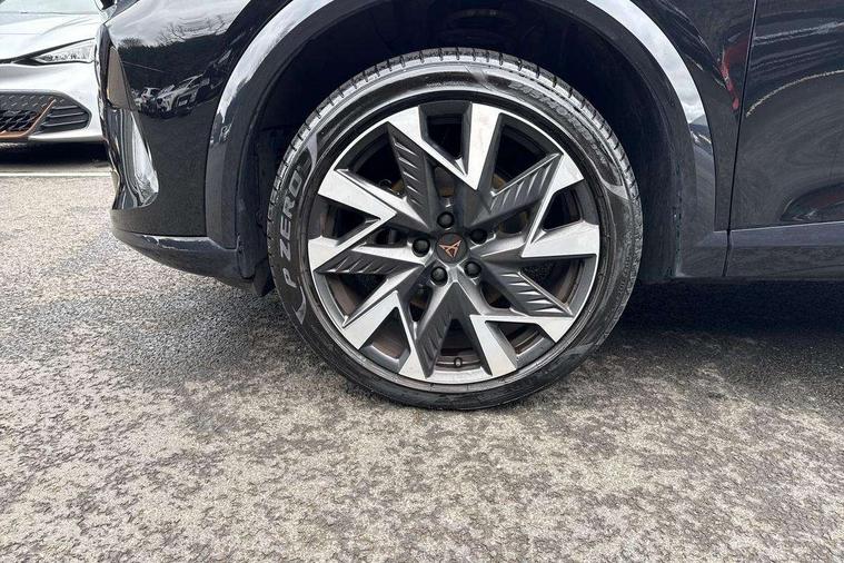 10.25" digital cockpit and configurable dashboard, Adaptive cruise control with follow-to-stop and speed limiter, Advanced driver alert system, Driving profile selection, Dynamic road sign display, Emergency steering support with turn assist, Forward collision warning with automatic braking, Front and rear parking sensors, Full link phone integration, Lane assist, Progressive steering, Rear view camera, RPM, trip computer, outside temp gauge, instrument light brightness, low fuel warning light, lights on reminder, gearshift indicator, Service interval indicator, Start/stop system with regenerative braking, Virtual pedal and electric tailgate, Voice control system, Wired Android Auto, Wireless apple carplay, Wireless phone charger, CUPRA sport suspension, Electronic locking differential and dynamic traction support, 2 front and 2 rear USB type C sockets, Media system with navigation, 12.9" touchscreen display, voice control, DAB, steering wheel mounted controls, Auto dimming rear view mirror, Body colour door handles, Body coloured bumpers, Dark grey wing mirror, Daytime running light with automatic headlight control and coming home feature, Door panel ambient lighting, Dynamic headlight range control, Electric front/rear windows, Electrically adjustable heated and folding door mirrors with memory function, Gloss black roof rails and window surrounds, High beam assist, LED 3rd brake light, LED front fog lamps with cornering function, LED Headlights, LED Taillights with dynamic indicator, Rain sensing wipers, Rear diffuser with black simulated exhaust pipes, Rear fog lights, Rear side wing doors, Rear wash/wipe, Tinted rear windows, Welcome lights (within exterior mirror housing), 12V socket, 2 front and 2 rear reading lights, 3 seat bench in 2nd row, 60/40 split rear bench seat with armrest and mechanical seat release, Black headlining, Black interior roof lining, Cupra sports pedals, Dust/pollen filter, Electrically adjustable driver's seat with memory and lumbar support, Front and rear head restraints, Front centre armrest, Heated front seats, Heated supersports multifunction leather steering wheel with satellite buttons and gear shift paddles, Height/reach adjust steering wheel, Illuminated aluminium doorsteps, Illuminated interior front door sills, Illuminated sunvisor with mirror, Isofix, Leather dashboard, door insert and side trim panel, LED smart wraparound lighting, PVC/Dinamica microfiber upholstery + bucket seats, Satellite steering wheel, Single front passenger seat, Storage pockets on rear of front seats, Three zone climate control with control panel in rear, Variable luggage/load compartment floor, 3 point seatbelts on all rear seats, ABS, Brake control system - ESC and brake booster, Child proof door locks, Driver and front passenger airbags with front passenger airbag de-activation, Electronic parking brake, Front and rear disc brakes, Front side curtain airbags, Hill hold control, Public e-call, Seat belt reminder for front and rear seats, Tyre pressure monitoring system, Anti theft alarm system, KESSY Advanced - Keyless start, keyless entry with SAFELOCK, Locking wheel bolts, Copper and aluminium interior detailing, 19" Sandstorm machined sport black and silver alloy wheels,