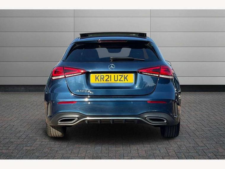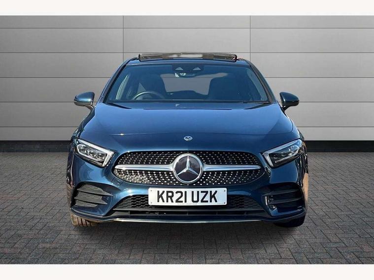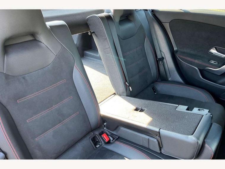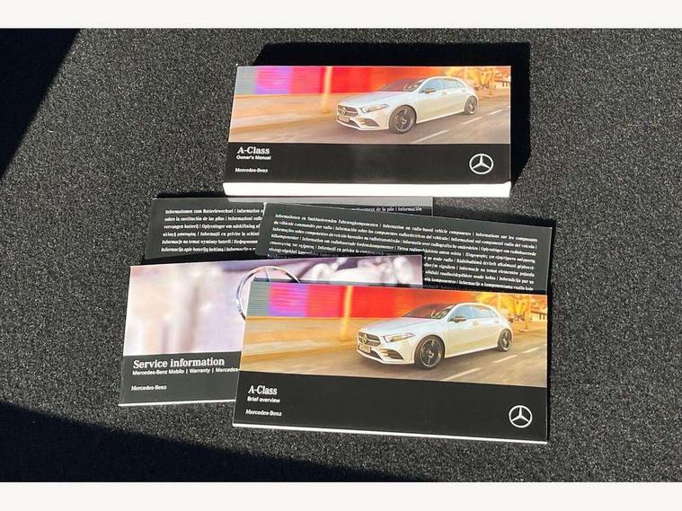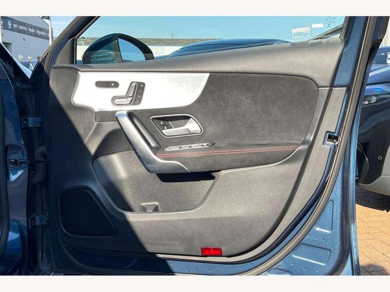 Ultrasonic sensors positioned in the front and rear bumpers, 10.25" Digital instrument cluster display screen, 10.25" media display, 180 degree rear view camera with parking guidelines, Active parking assist with visual and audible warning of detected obstacles, Attention assist, Brake pad wear indicator warning light, Car wash mode, Direct steering, Dual bluetooth interfaces, DYNAMIC SELECT with a choice of driving modes (ECO, Comfort, Sport and Individual), ECO start/stop function, Fluid level warning indicator for fuel, oil, coolant and washer fluid, Hard-disk navigation, Hey Mercedes Voice activation, Lamp failure indicator, MBUX augmented reality for navigation, Mercedes me connect including emergency call system, accident recovery, breakdown management and maintenance, Mercedes me remote services, Outside temperature gauge, Owners manual in English, Pre-installation for car sharing, Preinstallation for Mercedes Benz link, Service indicator (ASSYST), Smartphone integration with Apple CarPlay and Android auto, Traffic sign assist, Trip computer, Wireless charging, Lowered comfort suspension, Rear axle torsion beam, 10 speakers, 2 USB ports (type C) in rear stowage compartment and one in front of center console, DAB Digital radio, MBUX multimedia system with DAB digital radio and touchpad including satellite navigation, Mercedes-Benz advanced sound system - 225W, 4 Electric Front and Rear windows, Adaptive brake lights, AMG bodystyling - Front apron with splitter in chrome, rear apron with chrome trim and chrome visible trim elements in tailpipe, Black weather strip, Body colour bumpers, Body colour door handles, Body colour side skirt, Body coloured door mirrors, Chrome beltline trim, Diamond radiator grille with chrome pins and silver louvre + chrome insert, Electric adjustable and heated door mirrors with integrated LED side indicators, Exhaust system - Twin visible tailpipes in polished stainless steel, Headlamp assist automatic headlamp activation, Heated glass rear windscreen + timer control, LED high performance headlamps with integrated LED daytime running lights, LED tail lamp, LED third brake light, Multibeam LED with adaptive highbeam assist plus, Panoramic sliding sunroof, Privacy glass, Radio aerial, Rain sensing windscreen wipers with two sensitivity settings, Rear fog lights, Rear wiper, Window line trim strip in chrome, 3 Spoke flat bottom leather multi function steering wheel with perforated leather in grip area, 40:20:40 split folding rear seats, Artico man-made leather/Microfibre Dinamica upholstery with red contrast stitching, Auto Mercedes-Benz child seat recognition sensor, Black air vents with surround in silver chrome, Black roof lining, Brushed stainless steel sports pedals with rubber studs, Controller on centre console with chrome surround, Electrically adjustable front memory seats including lumbar support, Floor mats with stitched edging and AMG lettering, Front centre armrest with storage compartment, Front seat backs luggage nets, Front seat cushion length adjustment, Galvanished gear shift paddles on steering wheel, Heated front seats, Height/reach adjustable steering column, Illuminated front door sills with changeable cover, Interior lighting - 64 colour Ambient lighting, Interior mirror with reading lamps in black and frameless, ISOFIX and top tether child seat fixing points in two outer rear seats, Rear armrest with 2 cupholders, Rear head restraints, Seat occupancy sensor for front passenger seat, Sports seats with integrated headrests, Stowage compartment in centre console with retractable cover, Sunvisors with illuminated vanity mirrors, Touchpad on center console, Twin front cupholders, Two zone thermotronic luxury automatic climate control, Light and sight pack - A Class, Mirror package - A Class, Seat comfort pack - A Class, 3 rear 3 point seatbelts, ABS with Brake Assist, Active bonnet, Adaptive brake assist with hold function and hill start assist, Black seatbelts, Childproof locks manually operated for rear doors and electrically operated for rear power windows, Crash responsive emergency lighting, Driver and passenger head and side airbags, Drivers knee airbag, Dual stage driver/passenger airbags, Electronic parking brake, ESP curve dynamic assist, ESP with ASR, Front and rear seatbelt reminder, Front brake callipers with Mercedes Benz lettering, Tyre pressure monitoring system, Warning triangle and first aid kit, Window airbags, Alarm system/interior protection/immobiliser, Keyless entry lock/unlock, Keyless Go, Remote central locking and crash sensor with emergency opening function, Urban guard vehicle protection system with immobiliser and interior protection, Light aluminium with longitudinal grain interior trim, 18" AMG 5 twin spoke light alloy wheels in titanium grey with highsheen finish, Summer tyres, Tirefit sealant kit,