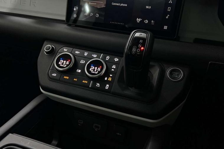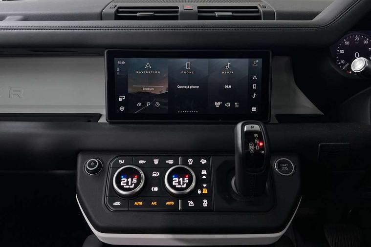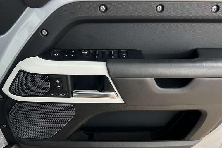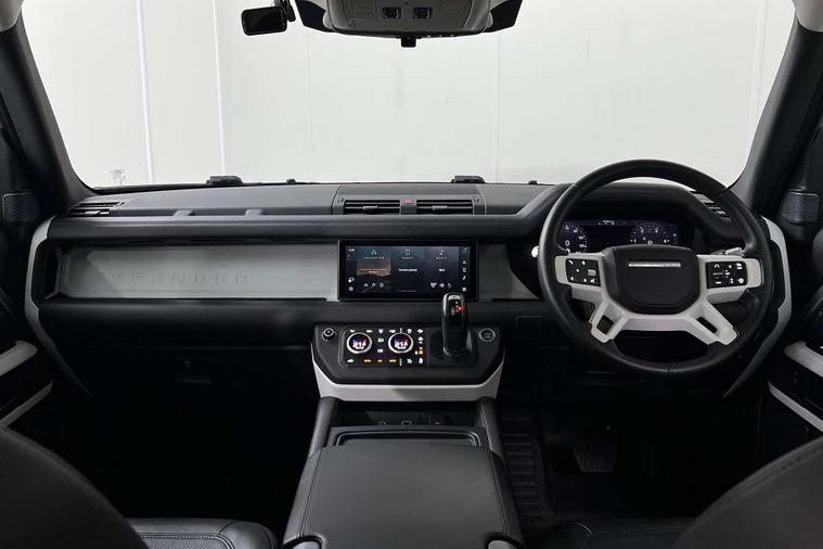 10" touch screen, 360 degree parking aid, 3D Surround Camera with 360 View, 180 Rear View, Front Traffic Detection, Forward Vehicle Guidance, Tow Hitch Assist and clear sight Ground View, Adaptive cruise control, Android Auto, Apple CarPlay, Blind spot assist, Bluetooth system, Clear exit monitor, Click and go integrated base unit, Connected navigation pro, Driver condition monitor, Interactive driver display, Lane keep assist, PAS, Pivi Pro connected navigation system with upgraded Infotainment, Rear collision monitor, Rear traffic monitor, Traffic sign recognition with adaptive speed limiter, Trip computer, Wade Sensing, Adaptive dynamics, Electronic air suspension, DAB Radio (Digital Audio Broadcasting), Automatic headlight levelling, Automatic headlights, ClearSight interior rear view mirror, Front fog lights, Heated windscreen, LED tail lights, Matrix LED headlights with signature DRL, Power fold, auto-dimming, heated door mirrors with memory and approach lights, Puddle lights, Rain sensing windscreen wipers, Signature graphic (with interior storage), Sliding panoramic roof, Standard tread plates, 14 way heated and cooled electric adjustable memory front seats with 4 way manual headrests, Carpet mats, Electric reach + rake adjustable steering column, Extended leather upgrade, Front passenger isofix child seat attachment, Heated steering wheel, Leather gearshift, Leather steering wheel, Loadspace cover, Morzine headlining, Multifunction steering wheel, Rear headrests, Rear ISOFIX, Sunvisors with illuminated vanity mirrors, Twin front cupholders with cover, Windsor leather upholstery, Online pack with data plan - Defender, 5 x 3 point seatbelts, ABS, Driver and passenger airbags, Emergency braking, ESP + traction control, TPMS (Tyre pressure monitoring system), Alarm, Immobiliser, Intrusion sensor, Keyless entry and go, Locking wheel nuts, Remote locking,