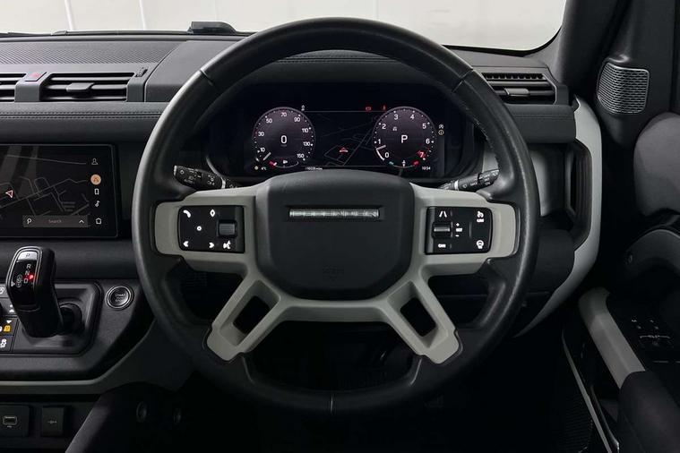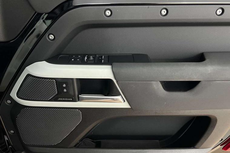 360 degree parking aid, 3D Surround Camera with 360 View, 180 Rear View, Front Traffic Detection, Forward Vehicle Guidance, Tow Hitch Assist and clear sight Ground View, Android Auto, Apple CarPlay, Assisted tailgate with soft close, Blind spot assist, Bluetooth system, Brake pad wear indicator, Clear exit monitor, Connected navigation pro, Cruise control + speed limiter, Driver condition monitor, Electric power assisted steering (EPAS), Lane keep assist, Push button start, Rear traffic monitor, Traffic sign recognition with adaptive speed limiter, Trip computer, Wade Sensing, 8 speed automatic transmission, Adaptive dynamics, All wheel drive system, Electronic air suspension, Twin speed transfer box, DAB Radio (Digital Audio Broadcasting), Meridian 400w sound audio system with 11 speakers and subwoofer, Pivi pro connected, Automatic headlight levelling, Automatic headlights, Body coloured roof, Centre high mounted stop light, ClearSight interior rear view mirror, Electric heated/power fold door mirrors with approach lights and auto dimming driver side, Electric windows with one touch open/close and anti-trap, Follow me home lighting, Front fog lights, Heated rear window with timer, Heated windscreen, Illuminated metal treadplates with brand name script, LED tail lights, Matrix LED headlights with signature DRL, Panoramic rear side glass, Privacy glass, Puddle lights, Rain sensing windscreen wipers, Rear fog lights, Rear wiper, Side hinged tailgate, Sliding panoramic roof, Trailer stability assist, 12 way heated and cooled electric memory front seats with 2 way manual headrests, 12V power socket in loadspace, 3 seat bench in 2nd row, 40:20:40 fixed rear seats with centre armrest, Alpine lights, Durable rubber cabin flooring, Durable rubber loadspace flooring, Electric cabin pre conditioning, Electric reach + rake adjustable steering column, Footwell lights, Front centre console refrigerator compartment, Grained Leather upholstery, Heated steering wheel, Leather gearshift, Light oyster morzine headlining, Loadspace cover, Loadspace Hook, Multifunction steering wheel, Overhead stowage for sunglasses, Premium cabin lighting, Rear headrests, Rear ISOFIX, Rear reading lights, Single front passenger seat, Standard interior, Standard leather steering wheel, Standard seat configuration, Storage glovebox, Sunvisors with illuminated vanity mirrors, Twin front cupholders with cover, Online pack with data plan - Defender, XS Edition exterior pack - Defender, 5 x 3 point seatbelts, ABS, Brake hold function, Cornering brake control (CBC), Cross car beam in light grey powder coat brushed finish, Customer configurable autolock, DSC - Dynamic Stability Control, EBD - Electronic brakeforce distribution, Electric parking brake (EPB), Emergency brake assist, Emergency braking, ESP + traction control, Front airbags with passenger seat occupant detector, HDC - Hill descent control, Hill launch assist, Low traction launch, Remote for (e-Call, Optimised assistance call, InControl app, Climate, beep and flash and door), RSC - Roll stability control, Seat belt reminder, TPMS (Tyre pressure monitoring system), Alarm, Immobiliser, Intrusion sensor, Keyless entry, Locking wheel nuts,