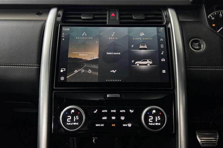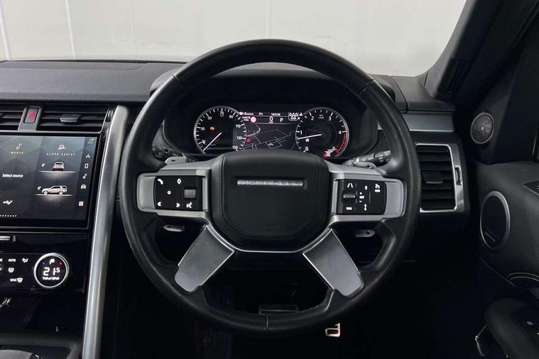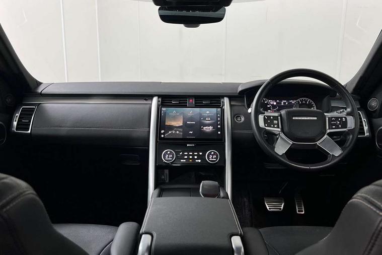11.4" touchscreen, 3D surround camera, Adaptive cruise control, Android Auto, Apple car play, Blind spot assist, Driver condition monitor, Electric power assisted steering (EPAS), Emergency services call system, Front and rear parking aid, Lane keep assist, Power inner tailgate, Push button start, Rear collision monitor, Rear traffic monitor, Remote, Remote boot release, Service interval indicator, Speed proportional steering, Sportshift selector, Stop/start system, Traffic sign recognition with adaptive speed limiter, Trip computer, Wade Sensing, Adaptive dynamics, Dynamic stability control, Electronic air suspension, Front axle open differential, Digital Audio Broadcast radio-DAB, Dynamic volume control, Meridian surround sound system - 14 speaker + subwoofer, 18 channel amplifier, 700W, Pivi pro connected, USB/aux input socket, Acoustic laminated windscreen, Animated directional indicators, Auto dimming interior rear view mirror, Automatic headlight levelling, Automatic headlights, Body colour bumpers, Body colour door handles, Centre high mounted stop light, D300 badge, Electric heated/power fold memory door mirrors with approach lights and auto dimming driver side, Electric windows with one touch open/close and anti-trap, Heated rear window, Heated windscreen, LED darkend tail lights, Matrix LED headlights with signature DRL, Metal treadplates with R-Dynamic branding, Narvik black Discovery script, Privacy glass, Puddle lights, Rain sensing windscreen wipers, Rear fog lights, Rear side wing doors, Rear wash/wipe, Trailer stability assist, Variable intermittent wiper, 12V power sockets, 12V USB charging socket in loadspace, 2 seat bench in 3rd row, 3 seat bench in 2nd row, Central hinged twin lidded storage, Ebony morzine headlining, Electric adjustable steering column, First and second row door bins, Footwell lights, Front and rear 12V with front USB, Front passenger seat isofix location point, In-facia storage, Isofix child seat preparation for front passenger seat, Loadspace cover, Loadspace Hook, Loadspace light, Lockable glovebox, Lower centre console storage, Luggage tie downs in loadspace, Multi function steering wheel, Overhead lighting console, Premium cabin lighting, Premium carpet mats, Rear ISOFIX, Shopping bag hook, Single front passenger seat, Storage glovebox, Sunvisors with illuminated vanity mirrors, Third row storage, Twin front cupholders with cover, USB with 12V socket in centre console, Online pack with data plan - Discovery, R-Dynamic black exterior pack - Discovery, 3x3 point rear seatbelts, Anti-lock braking system (ABS), Brake pre-fill technology, Cornering brake control, Curtain airbags, Customer configurable autolock, Driver and passenger airbags, EBD - Electronic brakeforce distribution, Electronic traction control, Emergency brake assist, Emergency braking, ESP, Front side airbags, Gradient acceleration control, Hill descent control, Hill launch assist, Power operated child locks, Rear airbags, Roll stability control, Seat belt reminder, Torque vectoring brake, Tyre pressure monitoring system, Immobiliser, Intrusion sensor, Keyless entry, Locking wheel nuts, Remote central locking, All terrain tyres,