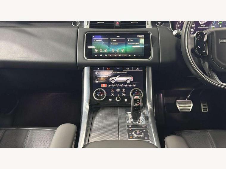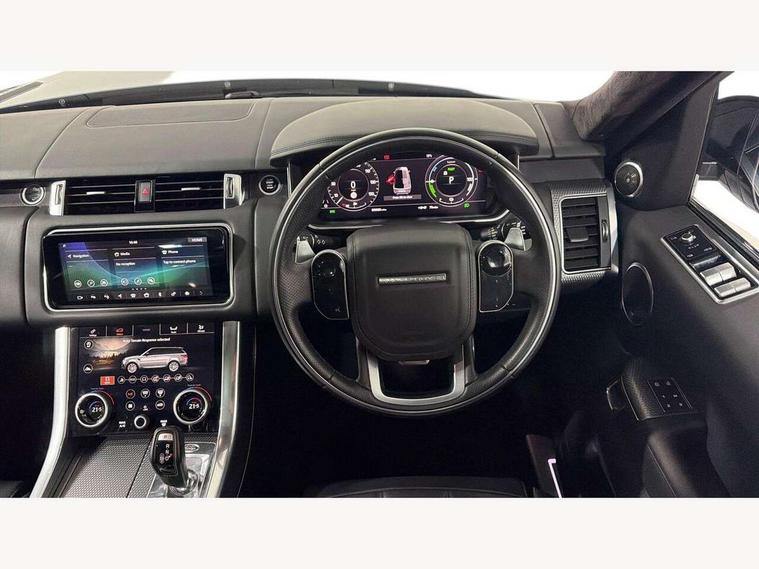 360 Parking aid, All Terrain Info Centre, Android Auto, Apple car play, Bluetooth connectivity, Clear exit monitor, Driver condition monitor, Electric power assisted steering (EPAS), Incontrol apps in vehicle touchscreen, Interactive Driver display instrument cluster, Mist sensor, Navigation pro system with 10" touch screen, app interface and media storage, Pro services and wifi hotspot, Push button start, Rear traffic monitor, Remote premium - Upgraded Incontrol remote app including remote climate control (engine dependent), remote lock + Unlock and remote beep + flash, TFT Virtual Instrument Panel, Touch pro duo system, Traffic sign recognition with adaptive speed limiter, Trip computer, 7 kW onboard charger, Adaptive dynamics, Electronic active differential with brake torque vectoring, Electronic air suspension, Gradient release control (GRC), Public charging cable, Terrain Response 2 with dynamic program, Twin speed transfer box, Bluetooth audio streaming, DAB Radio (Digital Audio Broadcasting), Incontrol protect - SOS emergency call with automatic collision detection, optimised assistance call and Incontrol remote app essential, USB/aux input socket, Acoustic front and toughened rear side glass, Acoustic laminated front windows, Adaptive brake lights, Auto dimming interior rear view mirror, Automatic headlights, Body coloured side sills and bumpers corners, Centre high mounted stop light, Electric windows with one touch open/close and anti trap, Electrical towing preparation, Engine cover, Follow me home lighting, Front and rear recovery eyes, Front fog lights, Headlight power wash, Heated rear window, Heated windscreen includes heated washer jets, Illuminated metal treadplates with brand name script, LED rear lamps, Power fold, auto-dimming, heated door mirrors with memory and approach lights, Rain sensing windscreen wipers, Rear fog lights, Rear side wing doors, Rear wash/wipe, Remote window closing, Side repeater indicators in mirror, Standard bonnet, Trailer stability assist, Twin bright tailpipes, 2 way active front head restraints, 2 way rear head restraints, 3 seat bench in 2nd row, 60/40 load through rear seats, Automatic air recirculation system, Bright metal foot pedals, Centre console with armrest, Climate control memory, Configurable Ambient interior lighting, Customer configurable single point entry, Driver's footrest, Extended leather upgrade includes door top rolls and leather instrument panel mid section, Front and rear cupholders, Front and rear premium carpet mats, Front door storage space, Front map lights, Front seat back map pockets, Front stowage pocket, Front/rear passenger grab handles, Heated steering wheel, Isofix child seat preparation, Leather steering wheel with Atlas inserts, Loadspace light, Loadspace mounting provisions, Lockable glovebox, Multifunction steering wheel, Pollen filter, Power socket, Reach/rake electric adjustable steering column + entry/exit tilt away, Rear centre armrest, Rear ISOFIX, Roller blind loadspace cover, Satin chrome gearshift paddles, Single front passenger seat, Sports pedals, Three 12V accessory power outlets, Smartphone pack - Range Rover Sport, 3 point seatbelts on all seats, Anti-lock braking system (ABS), Brake pre-fill technology, Cornering brake control (CBC), Curtain airbags, Customer configurable autolock, DSC - Dynamic Stability Control, Dual stage driver/passenger airbags, EBD - Electronic brakeforce distribution, Electric parking brake, Electronic traction control, Emergency braking includes city, urban AEB and pedestrian, Front seatbelt pretensioners, Gradient acceleration control, Height adjustable front seatbelts, High speed emergency braking, Hill descent control, Hill launch assist, Low traction launch, Passenger seat occupant detector with front airbags, Power operated child locks, Roll stability control, Seatbelt warning, TPMS (Tyre pressure monitoring system), Immobiliser, Intrusion sensor, Keyless entry, Locking wheel nuts, Perimetric and volumetric anti theft alarm, Remote locking, Tyre repair system,