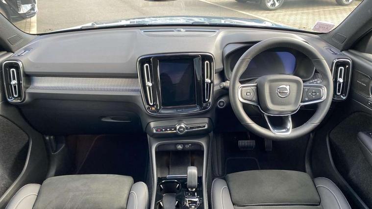 12.3" Progressive Driver Display, 360 degree surround view parking camera with side proximity sensors, 9" centre console portrait touch screen, Adjustable steering wheel force, Bluetooth hands free telephone kit, E-call, Front park assist, Google automatic services - Nav with google maps, apple carplay/android auto, voice recognition with google assistant, Hands free power tailgate, Lane keep assist with driver alert control, Oncoming Lane Mitigation, Rear park assist, Speed limiter, Speed sensitive steering, Wireless/Inductive Mobile Phone Charging, Dynamic chassis, DAB Digital radio, Premium Sound by Harman Kardon, Dolby Pro Logic II Surround Sound, Dirac Unison, 12 speakers/600W and subwoofer, Steering wheel mounted remote controls, Active bending pixel LED headlights with adaptive shadow technology, Active high beam incorporating daytime running lights, Adaptive brake lights with high level LED brake lights, Auto dimming interior mirror, Automatic headlamp levelling, Dark tinted windows for rear door side windows and cargo compartment, Front aluminium tread plates, Front and rear electric windows, Headlight cleaning system, High gloss black front and rear skid plate, High gloss black mesh front grille with high gloss black surround, High gloss black window trim, Home safe and approach lighting, Integrated roof rails in high gloss black, LED front fog lights, Power glass tilt and slide panoramic sunroof with sun curtain, Puddle lights, Rain sensor with automatic windscreen wiper activation, Rear side wing doors, Rear wiper, Roof antenna, Roof spoiler, Visible VIN plate, 12V socket in front tunnel console and luggage compartment, 2-Zone electronic climate control with CleanZone air quality system and pollen filter, 3 seat bench in 2nd row, 3 Spoke tailored steering wheel with chrome trim, 60/40 versatile split folding rear seat, A-pillar parking ticket holder, Ambient front door and instrumental panel lighting, Centre console cupholders and storage, Flexible load floor and grocery bag holder, Floor mats, Front door pocket and front cupholder illumination, Front footwell illumination, Front headrests, Front reading light and theatre lighting, Front seat cushion extensions, Front tunnel pocket, Glovebox bag hook, Heated front seats, Height adjustable passenger seat, Height/reach adjustable steering column, High gloss centre tunnel deco, Illuminated glovebox, Illuminated luggage compartment, Illuminated tailgate, Illuminated vanity mirrors, Integrated waste bin, Isofix attachments on outer rear seats, Load protection net, Multi directional lumbar support, Power driver seat with memory + exterior mirrors memory, Power folding rear headrests, Power passenger seat, Rear armrest / integral cup holders / storage tray, Rear reading and courtesy lights, Single front passenger seat, Underfloor cargo storage, Climate pack without heated front seats - XC40, Driver assist pack - XC40, 3x3 point rear seatbelts, City safety with steering support with Pedestrian + cyclist + front collision warning with full auto brake and rear auto brake, Drivers knee airbag, Dual stage driver/passenger airbags, Electronic parking brake with auto hold, First aid kit, Front and outer rear seatbelt reminder and pretensioners, Front seats SIPS airbags, Hill descent control, Hill start assist, Inflatable curtain, Passenger airbag cut-off device, Power child locks on rear doors, Road sign information display, Run off Road Mitigation, Run off Road Protection, SIPS (Side Impact Protection System), Slippery road and hazard light alert, Stability and Traction Control with Spin control, Engine Drag Control and Corner Traction Control, Tyre pressure monitoring system, Vehicle deceleration control with Anti-lock Brake System, Electronic Brake Distribution and Emergency Brake Assist, Warning triangle, WHIPS whiplash protection system - front, Anti-theft alarm including immobiliser/volume sensor + level sensor, Key integrated remote control central locking + fuel flap with deadlocking system and auto open/close power windows, Keyless drive includes keyless entry and keyless start, Locking wheel nuts,