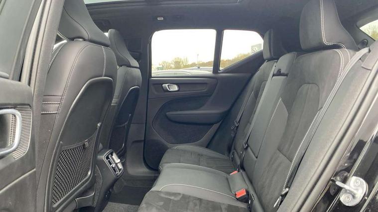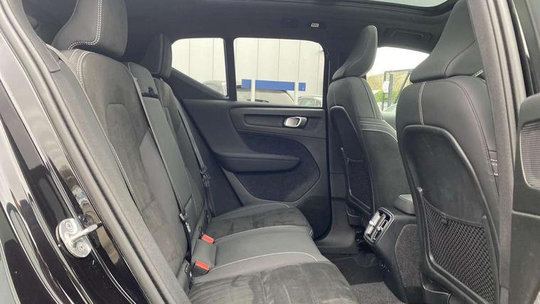 12.3" Progressive Driver Display, 360 degree surround view parking camera with side proximity sensors, 9" centre console portrait touch screen, Adjustable steering wheel force, Android auto (Wired), Apple carplay (wired), Bluetooth handsfree system, Driver alert control, Driver assistance (pilot assist and adaptive cruise control), Driver awareness - Blind spot information system with steer assist, cross traffic alert with autobrake and rear collision warning and mitigation, E-call, Front park assist, Google automotive services - Enabled entertainment apps, navigation with google maps, voice recognition with google assistant, Hands free power tailgate, Intelligent speed assistance, Lane keeping aid, Oncoming Lane Mitigation, Rear park assist, Speed sensitive steering, Volvo cars services with app - Driving journal, emergency and breakdown call, engine remote start, remote door locking/unlocking and vehicle dashboard, Wireless/Inductive Mobile Phone Charging, Automatic transmission with start/stop and manual change functions, Dynamic chassis, DAB Digital radio, Premium Sound by Harman Kardon, Dolby Pro Logic II Surround Sound, Dirac Unison, 12 speakers/600W and subwoofer, Steering wheel mounted remote controls, Active bending pixel LED headlights with adaptive shadow technology, Active high beam incorporating daytime running lights, Adaptive brake lights with high level LED brake lights, Auto dimming feature for exterior door mirrors, Auto dimming interior mirror, Automatic headlamp levelling, Colour coordinated auto folding and heated power door mirrors, Dark tinted windows - rear side windows and rear screen, Front aluminium tread plates, Front and rear electric windows, Headlight cleaning system, High gloss black front and rear skid plate, High gloss black front bumper deco, High gloss black front grille strikethrough and ironmark, High gloss black rear model, engine and volvo logo badges, High gloss black window trim, Home safe and approach lighting, Integrated roof rails in high gloss black, LED front fog lights with cornering function, Power glass tilt and slide panoramic sunroof with sun curtain, Puddle lights, Rain sensor with automatic windscreen wiper activation, Rear side wing doors, Rear wiper, Roof antenna, Roof spoiler, Visible VIN plate, 12V socket in front tunnel console and luggage compartment, 2-Zone electronic climate control with CleanZone air quality system and pollen filter, 3 seat bench in 2nd row, 3 Spoke tailored steering wheel with chrome trim, 60/40 versatile split folding rear seat, Centre console cupholders and storage, Charcoal headlining, Connect textile/microtech upholstery, Flexible load floor and grocery bag holder, Floor mats, Front cabin courtesy lights, Front door pocket, front cupholder, ambient front door, rear reading, rear courtesy, instrument panel and tailgate lighting, Front footwell illumination, Front headrests, Front reading lights, Front seat cushion extensions, Front side step illumination (under door), Glovebox bag hook, Heated front seats, Height/reach adjustable steering column, High gloss centre tunnel deco, Illuminated glovebox, Illuminated luggage compartment, Illuminated vanity mirrors + ticket holder, Integrated waste bin, Isofix attachments on outer rear seats, Load cover, Load protection net, Multi directional lumbar support for driver and passenger seat, Power driver seat with memory + exterior mirrors memory, Power folding rear headrests, Power passenger seat, Rear armrest with cupholders, Single front passenger seat, Underfloor cargo storage, Climate pack without heated front seats - XC40, 3x3 point rear seatbelts, City safety with steering support with Pedestrian + cyclist + front collision warning with full auto brake and rear auto brake, Driver and passenger airbags, Drivers knee airbag, Electronic parking brake with auto hold, First aid kit, Front and outer rear seatbelt reminder and pretensioners, Front seats SIPS airbags, Hill descent control, Hill start assist, Inflatable curtain, Passenger airbag cut-off device, Power child locks on rear doors, Road sign information display, Run off Road Protection, SIPS (Side Impact Protection System), Slippery road and hazard light alert, Stability and Traction Control with Spin control, Engine Drag Control and Corner Traction Control, Tyre pressure monitoring system, Vehicle deceleration control with Anti-lock Brake System, Electronic Brake Distribution and Emergency Brake Assist, Warning triangle, WHIPS whiplash protection system - front, 2 x Key integrated remote control central locking including with deadlocking system and auto open/close windows and sunroof, Anti-theft alarm including immobiliser/volume sensor + level sensor, Keyless drive includes keyless entry and keyless start, Locking wheel nuts,