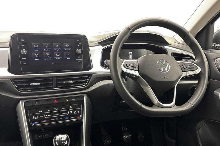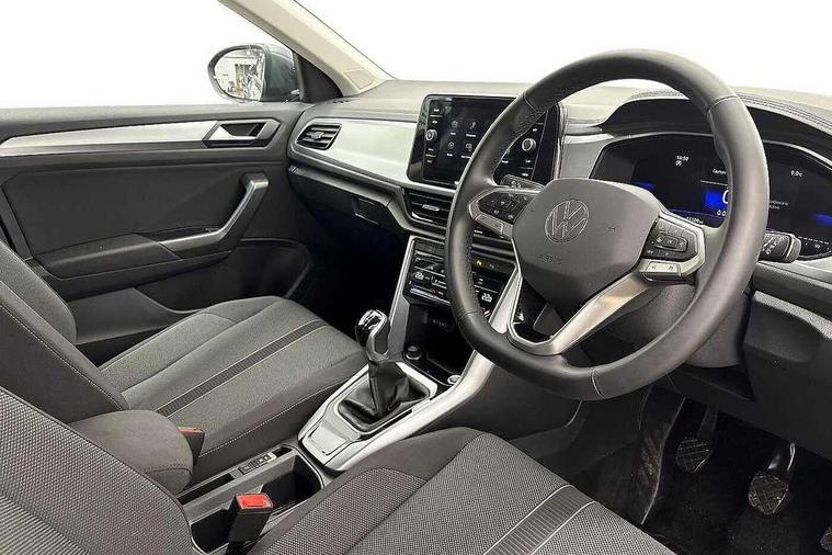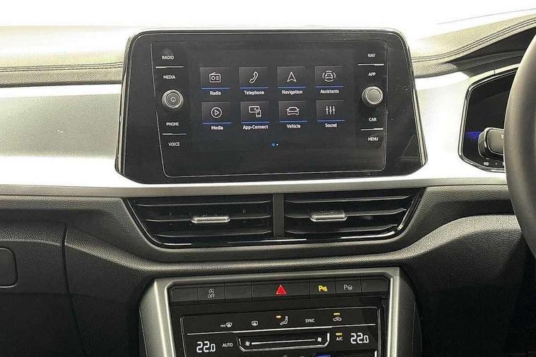 Advanced driver attention and drowsiness monitor, Dynamic road sign display, Emergency call service, Lane keeping system Lane Assist, Mobile phone interface, Modified key software - reduce switch off time for key status change to Long no motion, Online services, Park assist including front and rear parking sensors, Power assisted speed sensitive steering, Rear view camera, Service interval indicator, Tailgate/trunk lid release from outside, Think blue trainer driver tips and journey analysis, Warning sound and light for front seatbelts unfastened, Wireless app connect, Battery regeneration during braking, Front shock absorption, Rear shock absorption chassis with increased ride height, Start/stop function with battery regeneration, DAB Digital radio, Diversity antenna for FM reception, Front and rear 6 speakers, Music playback - MP3, WMA and AAC files, Premium USB cable in choice of either Apple or Android smartphone compatibility, SD card slot, Simultaneous pairing of 2 compatible mobile devices, Title and cover art display, We Connect and We Connect Plus functionality, Auto dimming interior rear view mirror, Automatic hazard lights activation under emergency braking, Automatic headlight control with LED separate daytime running lights with coming/leaving home function, Black roof rails, Body coloured bumpers and radiator grille with chrome trim and front fog lamps with chrome bezel, Body coloured exterior mirror housings and door handles, Electrically adjustable and heated door mirrors, Extended roof spoiler, Exterior mirrors aspherical on driver side, convex on front passenger side, External USB type C socket and charging sockets, Front windscreen wiper with intermittent wipe and 4 position delay, Heated rear window, LED 3rd brake light, LED rear combination lamps, LED rear number plate lights, Power windows with comfort operation and circuit breaker, Privacy glass for rear side windows and rear window, Rain sensor, Rear exhaust tailpipe, Rear fog light on one side and reversing lights on both sides, Rear side wing doors, Rear wash/wipe with intermittent wipe setting, Remote electrically foldable door mirrors, puddle lights and reverse activated passenger's door mirror, 12V power socket in centre console, 3 rear head restraints, 3 seat bench in 2nd row, 4 load lashing points in luggage compartment, Air care climatronic air conditoning system with active combination filter and 2-zone temperature control, Black stitching for floor mats, Ceramique roof liner, Cloth upholstery, Door and side trim panel in cloth, Drawer under drivers seat, Driver/front passenger seat height adjustment, Front centre armrest, Front comfort sports seats, Front cupholders x 2, Front reading light, Front seat back storage pockets, Glove compartment door with light, Instrument lighting, white adjustable panel illumination, Interior ambient lighting and surround lighting, Interior light delay, Isofix child seat preparation, Leather gearshift handle, Load-through provision with cup holder when folded down ('Unsplit rear seat bench, split folding backrest, with centre armrest), Luggage compartment lighting, Lumbar support for driver's and front passengers seat, Non-folding front passenger seat backrest, Single front passenger seat, Storage compartment in left and right luggage area, Storage compartment in rear doors, Storage compartments in driver and front passenger doors, Sunvisors with illuminated vanity mirrors, Variable boot floor, height adjustable and removable, Driver assistance pack without proactive passenger protection - T-Roc Life/Match, 3 point height adj front seatbelts + pretensioners, 3 point seatbelts in outer rear with ECE label, ABS, Child locks on rear doors, City emergency braking and pedestrian monitoring, Driver and front passenger airbag with front passenger airbag deactivation, Driver and front passenger safety-optimised head restraints, Drivers seatbelt reminder, Electronic parking brake, Electronic Stability Control (ESC) inc EDL (Electronic Differential Lock) and ASR (Traction Control), Front and rear passengers curtain airbag system including front side airbags, Front disc brakes, Hill start assist, Predictive pedestrian protection, Rear disc brakes, Two tone horn, Tyre pressure loss indicator, Volkswagen roadside assistance, Alarm with interior protection, Keyless locking and starting system keyless access with safelock, Pewter matt decorative inserts for intrument panel, centre console and door panels at the front, Trims for alloy wheels,