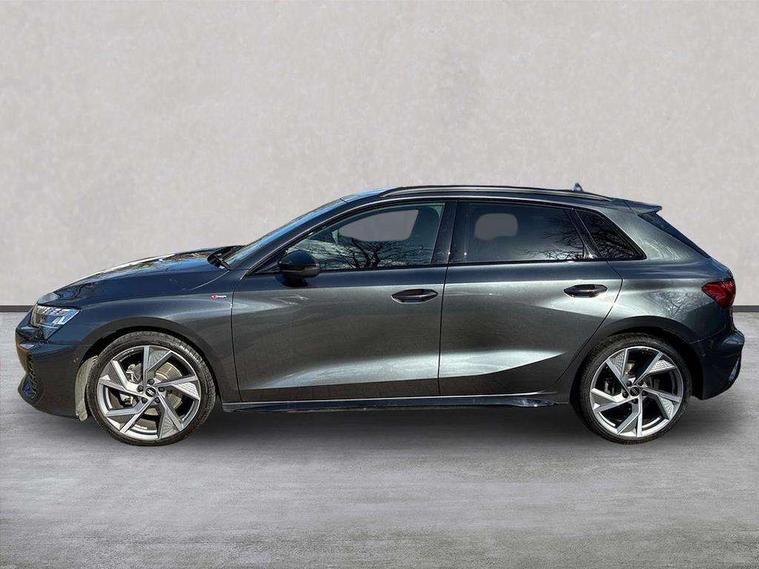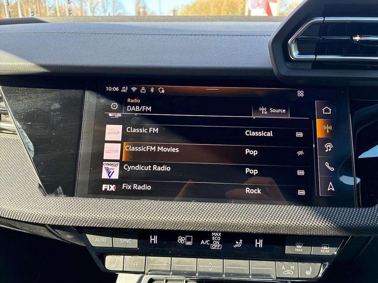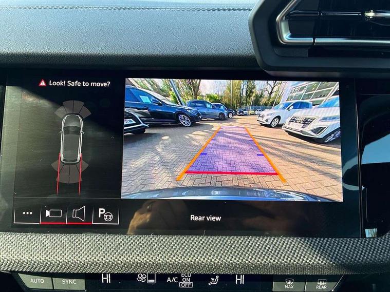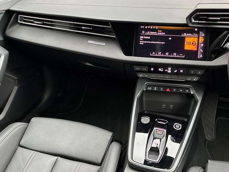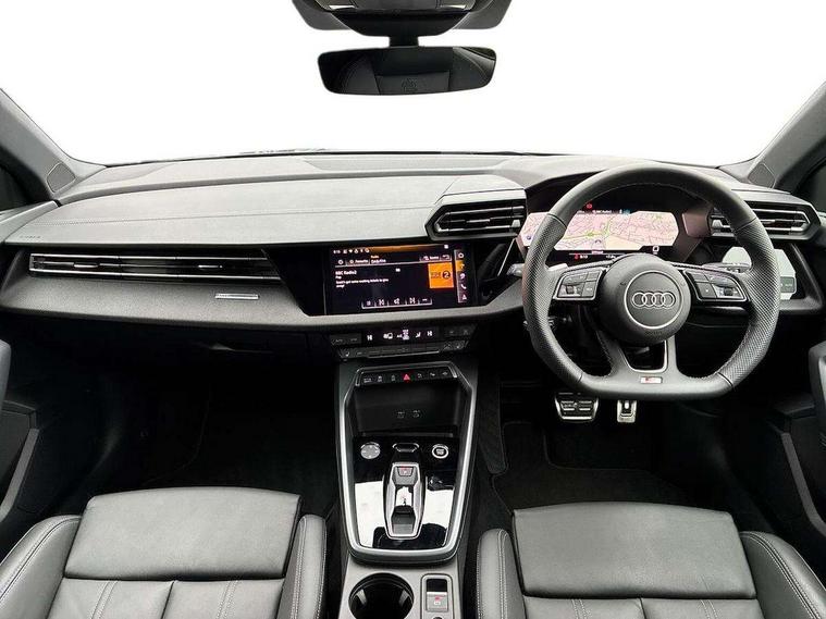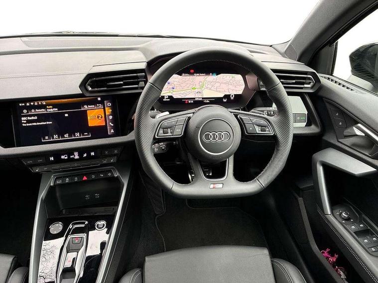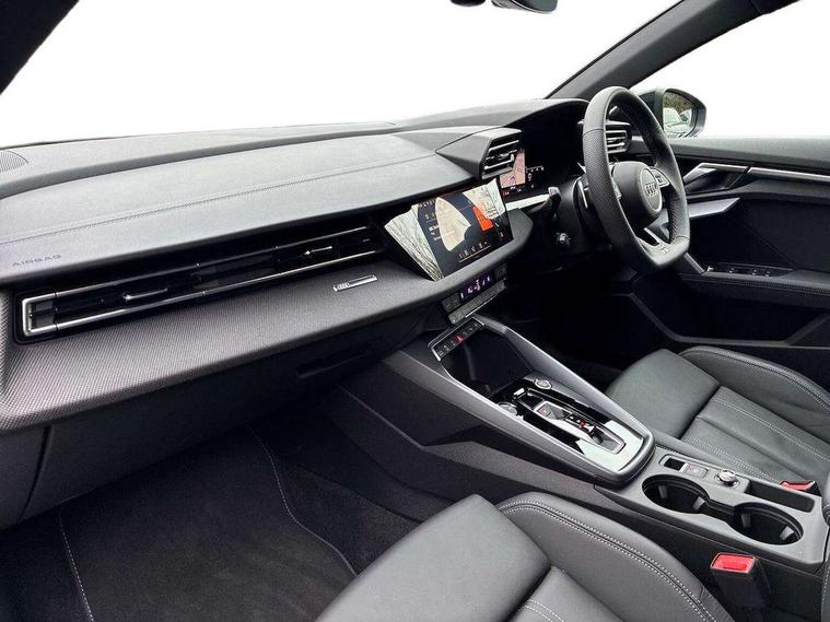 Adaptive cruise control (ACC), Adjustable speed limiter, Audi drive select (Auto, Comfort, Dynamic, Efficiency and Individual), Audi smartphone interface with app store includes wireless Apple carplay, Android auto and Amazon alexa integration, Audi virtual cockpit plus - 12.3" full HD resolution dynamic digital instrument cluster, Automatic start/stop system with recuperation, Bluetooth interface, Camera based traffic sign recognition, Collision avoidance assistant, Driver attention and fatigue detection with driver monitoring camera, e-Call (emergency call), Electromechanical power speed sensitive steering, Emergency assist, Intersection assist, Lane departure warning system, MMI Navigation Plus with high resolution 10.1" colour touch screen display, Park Assist with parking system Plus, Reversing camera, Service indicator, Trip computer, Voice control system with natural language interaction, Diesel particulate filter, Sports suspension, Audi Phonebox light with wireless charging, Audi sound system - 10 loudspeakers including centre loudspeaker and subwoofer, DAB Digital radio, USB ports with charging function in the rear, Acoustic glass windscreen, All weather light, Anthracite grey Audi rings (front and rear), Audi beam uses LEDs to project the Audi logo onto the ground as you exit your A3, Auto dimming frameless rear view mirror, Automatic dynamic range control, Black accents front and rear bumpers, Black accents in the area of the Audi single frame grille, Black accents window trims strips, Dipped beam, main beam, position light and turning light, Electrically adjustable/heated/folding/auto dimming door mirrors with integrated LED indications + kerb view function for passenger side, Exterior model badging, Front and rear side air inlets in grained matt black with dark liquid chrome frame, Front electric windows, Front radiator grill in high gloss dark chrome, Heat insulating glass windscreen, Illuminated door sills with aluminium inserts at the front with S logo, Intersection light, LED 3rd brake light, LED brake lights, LED daytime running x3, LED headlights with LED rear lights and dynamic rear indicators, LED rear number plate lights, LED reverse light, LED tail lights, Light and rain sensors, Manoeuvring light, Motorway light, Privacy glass - dark tinted rear window, rear door and side windows, Rear diffuser and grill in grained matt black with inlay in dark liquid chrome, Rear electric windows, Rear side wing doors, Rear wiper, S roof spoiler, Side sill trim in dark liquid chrome, Static Cornering lights, 12V socket and storage compartment in front centre console, 3 seat bench in 2nd row, 3 spoke flat bottomed leather multifunction sport steering wheel with gear shift paddles, 3-zone deluxe automatic air conditioning, 4 way electrically adjustable lumbar support for driver and front passenger, 40/20/40 split folding rear seat bench, Black cloth headlining, Black front and rear floor mats, Front and rear centre armrest in artificial leather with contrasting stitching on armrests and instrument panel, Front and rear headrests, Heated front seats, Height and reach adjustable steering wheel, i-Size child seat mounting on the front passenger side and outer rear seats, i-Size and top tether on the outer rear seats, Manual boot compartment lid, Manually adjustable front seats, Rear centre armrest with cupholder, S badging on the steering wheel, Seat side bolsters, Single front passenger seat, Stainless steel pedals and front footrest in black, Twin leather upholstery with front sports seats S embossed logo, Aluminium interior elements pack - A3, 3x3 point rear seat belts, Driver and front passenger airbag with passenger airbag deactivation, Electronic Stabilisation Control (ESC) including ABS, ASR and EDL, First aid kit with warning triangle and 2 safety vests, Front side airbags with head airbags and interaction airbag, Hill hold assist, Pre-sense front with pedestrian and cyclist detection, Seatbelt monitoring, Tyre pressure loss indicator, Anti theft alarm, Anti-theft wheel bolts, Electronically operated child locks, Immobiliser, Black dashboard,