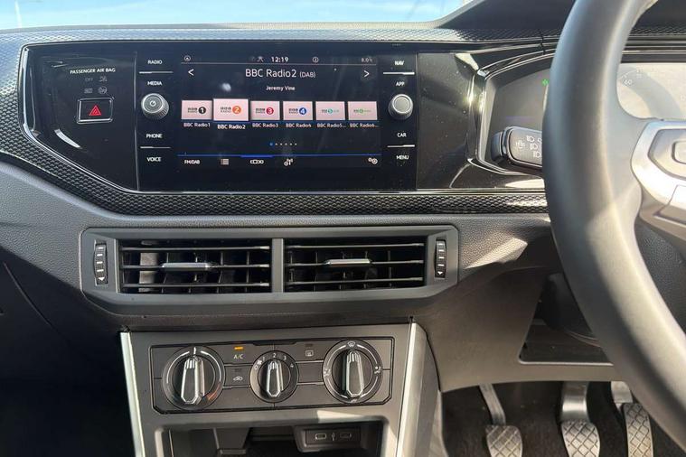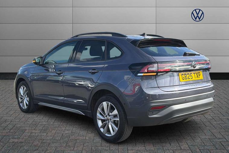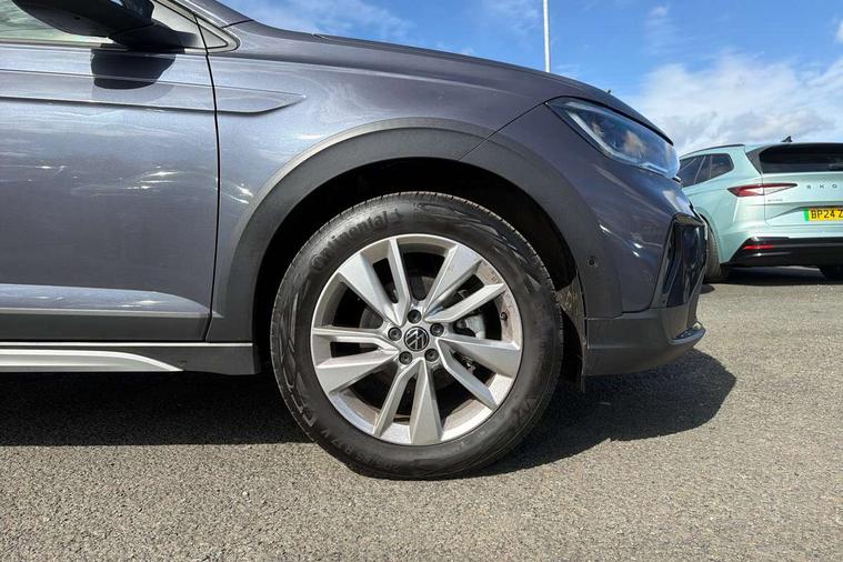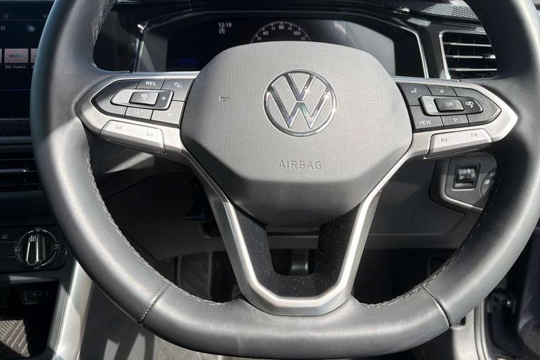 8" Digital cockpit basic display, Advanced driver attention and drowsiness monitor, Dynamic road sign display, e-Call (emergency call), Power Steering, Predictive adaptive cruise control, Rear view camera, Travel assist including emergency assist, Washer fluid level indicator, Wireless Charging including Bluetooth, Start-stop system with battery regeneration (recuperation - energy recovery during braking), Digital radio reception (DAB+), WeConnect plus, Ambient lighting with logo projection, Aspherical driver's exterior mirror, Body coloured bumpers, Body coloured exterior mirror housings and door handles, Electric windows, External USB type C socket and charging sockets, Heat insulating glass windscreen, LED rear combination lamp, LED third brake light, Left convex exterior mirror, Power folding adjustable/heated exterior mirrors and front passenger exterior mirror lowering function, Rear fog light on one side, reversing light on both sides, Rear side wing doors, Rear wash/wipe with intermittent wipe setting, Side windows in heat-insulating glass, from B-pillar and rear window dark tinted, 'Slash/ Austin' Cloth upholstery, 12V socket in centre console, 2 front reading lights, 3 rear head restraints, 3 seat bench in 2nd row, Black carpets, Ceramique headliner, Child seat anchor for child seat system i-Size, 2x top tether and child seat anchor in front on front passenger side, Door and side trim panels in titan black, Driver and front passenger seat height adjustment, Front centre armrest, Handbrake lever handle in leather, Height and reach adjustable steering wheel, Leather trimmed gear knob, Leather wrapped multifunction steering wheel, Luggage compartment floor, Luggage compartment light, Lumbar support for driver's and front passengers seat, Seat covers in titanium black, Single front passenger seat, Split folding backrest with centre armrest and unsplit rear seat bench, Storage compartment under front seats, Sun visors with illuminated vanity mirrors, Titanium black instrument panel, Chrome Package - Taigo, Drivers assistance package - Taigo, Light and sight pack - Taigo, 2 x 3-point seatbelts/outer rear seats with ECE label, 3-point seat belts in front with pretensioner and height adjustment, 3-point seatbelt for centre rear seat, Driver and front passenger airbag with front passenger airbag deactivation, Driver and front passenger safety-optimised head restraints, Electronic stability control, Extended and predictive pedestrian/ cyclist protection, Front and rear disc brakes, Front curtain and side airbags with center airbag, Hill start assist, Manual rear child locks, Single tone horn, Tyre pressure loss indicator, Anti-theft alarm system with interior monitoring, backup horn, and towing protection, Keyless locking and starting system keyless access with safelock, Black (slush) Dashboard, Lava stone black gloss/matt decorative inserts in dash and front door panels, Low rolling resistance tyres,
