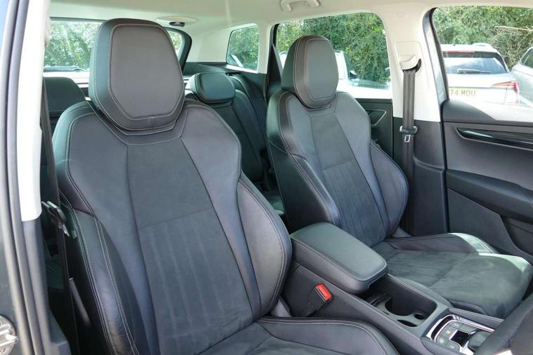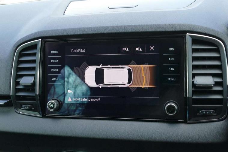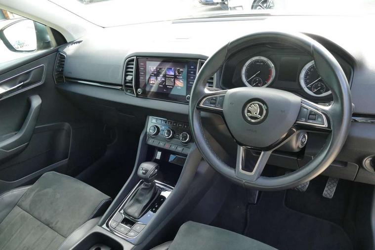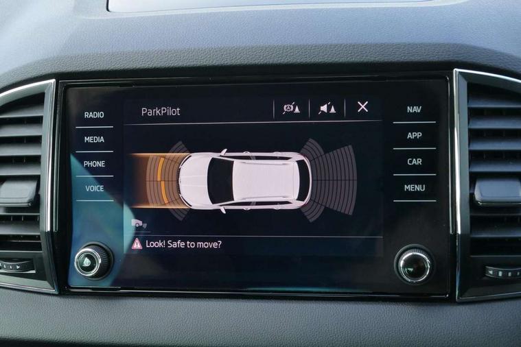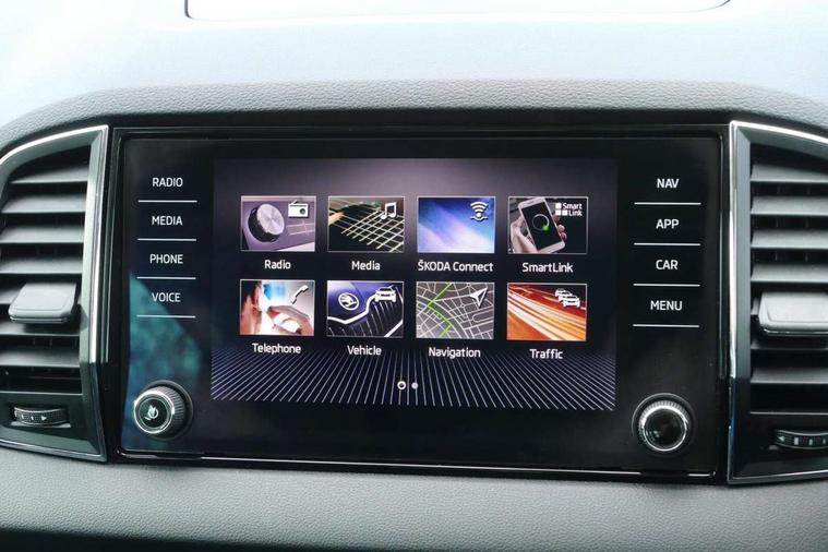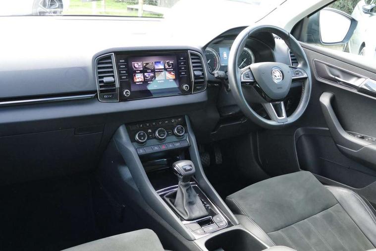 Drive mode selector, Driver alert system, Driver fatigue sensor, Driver profile selection, Multifunction colour trip computer, Outside temperature gauge, Rear view camera, Service interval indicator, Start/stop system with regenerative braking, DAB radio with Bluetooth, SD card slot, USB connection, Acoustic glass, Aero front windscreen wipers with intermittent function, Automatic headlight control system, Black electric window control buttons, Body colour door mirrors and handles, Body coloured bumpers, Electric front and rear windows with child proof lock, Full LED headlights + adaptive front light system + LED daytime running lights and front cornering fog lights, Headlight washers, Heated rear windscreen, LED rear lights with high functionality, Light assistant (coming/leaving home/tunnel light), Privacy glass, Safety reflectors on front doors, Third brake light, 1.5 litre bottle holders in driver and front passenger door panels, 12V socket in boot, 12v socket in front centre armrest with storage compartment and rear air vents, 2 Folding hooks and nets in boot, 2 Front readings lights for driver and passenger, 3 rear height adjustable headrests, 4 foldable roof handles with rear coat hooks, 4 lashing points on luggage floor, Backrest release, Cargo elements in boot, Chrome inner door handles, Dual zone climate control, Folding tables on the front seat backrests, Front seat and rear pockets, Height adjustable front three point seats belts with tensioners, Height adjustable passenger seat, Height/reach adjust steering wheel, Ice scraper, Illuminated and cooled glovebox, Illuminated luggage compartment, Isofix child seat preparation outer rear, Net programme in boot, Pen holder, Pollen filter, Rear boot cover, Rear reading lights, Rear seats fixed folding and divided 60:40, Removable LED torch in the boot, Retractable parcel shelf attachable to tailgate, Safety vest holder, Storage box in upper central dashboard closed, Storage compartment below the passenger seat, Sunvisors with illuminated vanity mirrors, Textile floor mats, Umbrella under passenger seat, VarioFlex seats with retractable parcel shelf, Chrome roof rails + chrome pack - Kodiaq, Airbags - Front side, head, knee and curtain, Automatic door unlocking in case of crash, Automatic fuel cut off in case of crash, Driver airbag, Electronic parking brake with auto hold function, Emergency rear braking signal, ESC including ABS, MSR, ASR, EDS, HBA, DSR, RBS, MKB and traction control, Front assist radar scanning of the space in front of the car with automatic braking, Hill hold control, Passenger airbag with switch-off function, Pedestrian monitor, Seatbelt reminder signalisation and pretensioner for all seats, Three point seatbelts rear, Two tone horn, Tyre pressure display, Tyre pressure monitor, Alarm with interior monitoring, back up horn and tilt sensor with safe function, Electronic engine immobiliser, Keyless entry and keyless start with safe system, Remote central locking with 2 remote folding keys, Chrome framed air vents, Storage on wheel cover,
