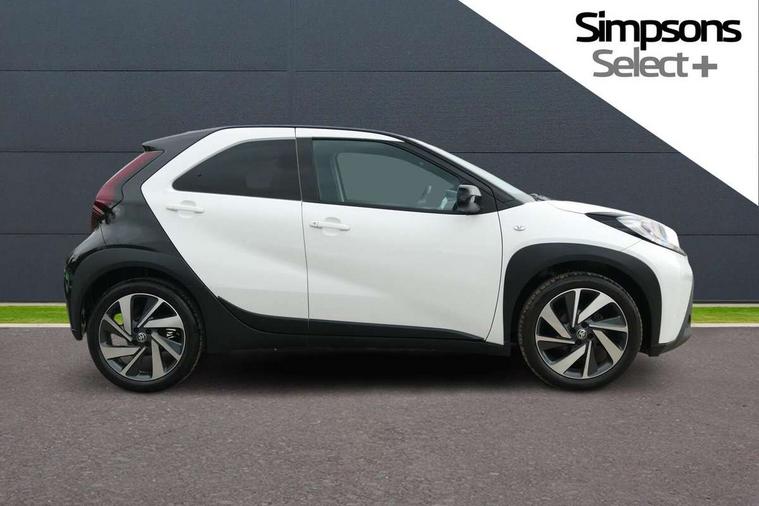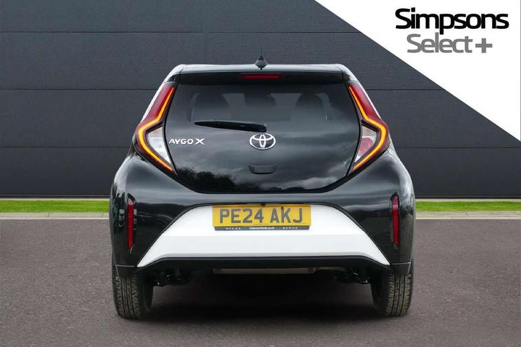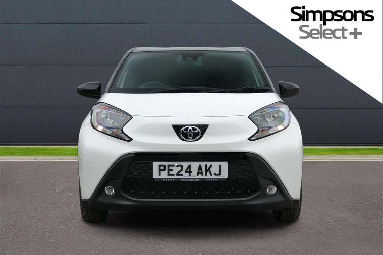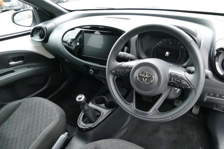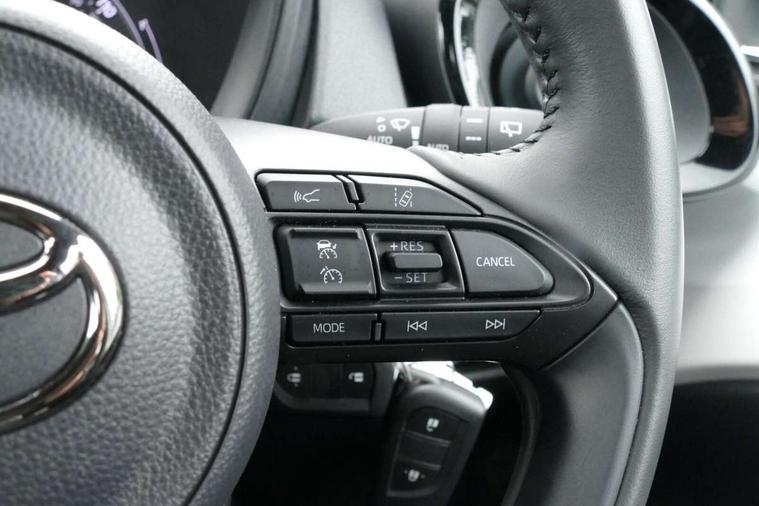 4.2" TFT colour screen, Adjustable speed limiter, Analogue speedometer, Bluetooth connectivity, Digital tachograph, Driver attention alert system, eCall emergency call system, Electric power steering, Intersection turn assist, Key reminder warning, Noise reduction kit, Pre collision system with emergency steering assist, Reversing camera with static guide lines, Smart phone integration with Apple car play/Android Auto, Speed limit display, Start and stop, Vehicle Stability Control (VSC), 4 speakers, 9" HD multimedia display touch screen with Toyota smart connect, DAB digital audio broadcast, USB connector, Auto headlights, Auto wipers, Automatic headlights cut-off, Bicycle towing hook, Black contrast roof, Black side protection mouldings, Black wheel arch mouldings, Body colour door handles, Body coloured front bumper, Boot door scuff plate, Eclipse black rear bumper, Electric heated door mirrors, Follow me home headlights, Front fog lights, Front power windows, Gloss black door mirrors, Gloss black upper front grille, Headlight cut-off reminder, LED daytime running lights, LED front light guide, LED High mounted stop lamp, Manual day/night rear view mirror, Manual headlight levelling, Pagoda roof, Power adjustable door mirrors, Power back door, Privacy glass, Projector halogen headlights, Rain sensor, Rear combination lights LED bulb type, Rear side wing doors, Rear windscreen defogger, Rear windscreen wiper, Short antenna, Variable intermittent windscreen wipers, 12v power outlet - front, 2 seat bench in 2nd row, 3 spoke leather steering wheel, 50/50 split folding rear seat, Adhesive roof headlining, Adjustable speed limiter switch on steering wheel, Audio and telephone switches on steering wheel, Auto air conditioning, Black insert on steering wheel, Black roof lining, Boot light, Centre room light, Chrome interior door handles, Chrome surround on air conditioning buttons, Clean air filter, Console box storage in body color, Fabric upholstery, Floor mats, Front and rear cup holders, Front head rest deco art, Front head restraints, Height adjustable driver seat, Intelligent adaptive cruise control switch on steering wheel, ISOFIX child restraint system on rear seats, Lane departure alert switch on steering wheel, Leather gearshift knob, Manual tilt steering wheel, Manually reclining and sliding driver seat, Manually reclining and sliding front passenger seat, Multimedia switches on steering wheel, Pollen filter, Rear door pockets, Rear head restraints, Satin silver insert on gear shift knob, Single compartment glovebox with lights, Single front passenger seat, Soft tonneau cover, Sun visors with mirror on driver and passenger side, Voice recognition switch on steering wheel, Toyota safety sense pack - Aygo X, Anti lock braking system + Electronic brake force distribution, Child safety door lock, Emergency brake light signal (EBS), Hill start assist control (HAC), Passenger airbag on/off switch, Seat belt reminder for front and rear seats, Supplement restraints system (SRS) - 6 airbags, Traction control, Tyre pressure warning system, Immobiliser, Remote power door locks, Black wheel centre caps, Tyre repair kit,