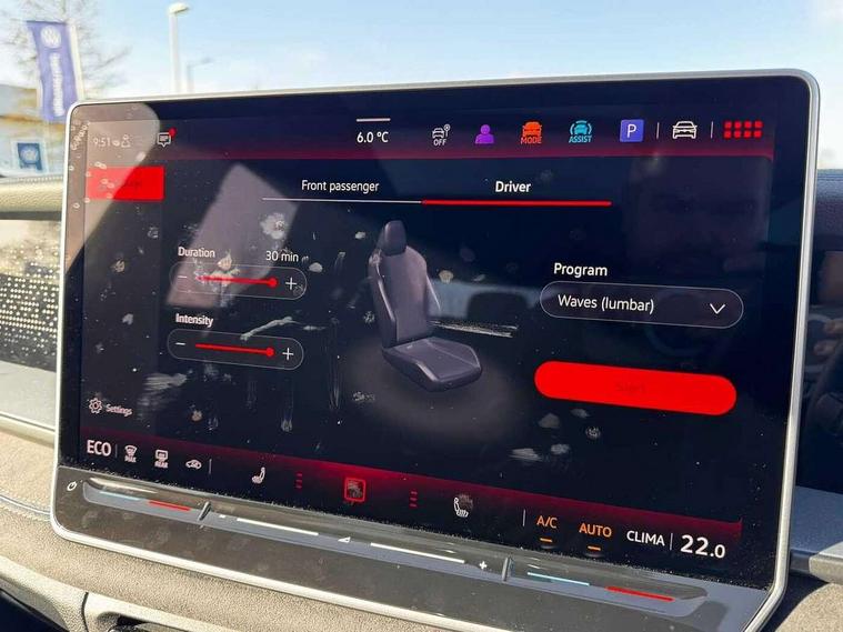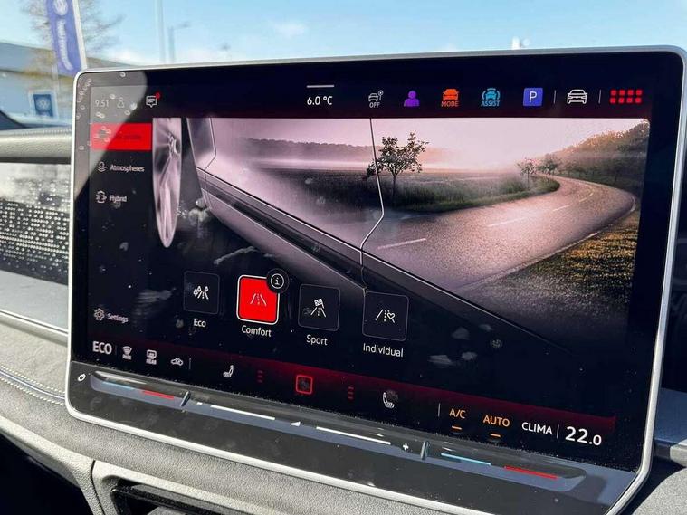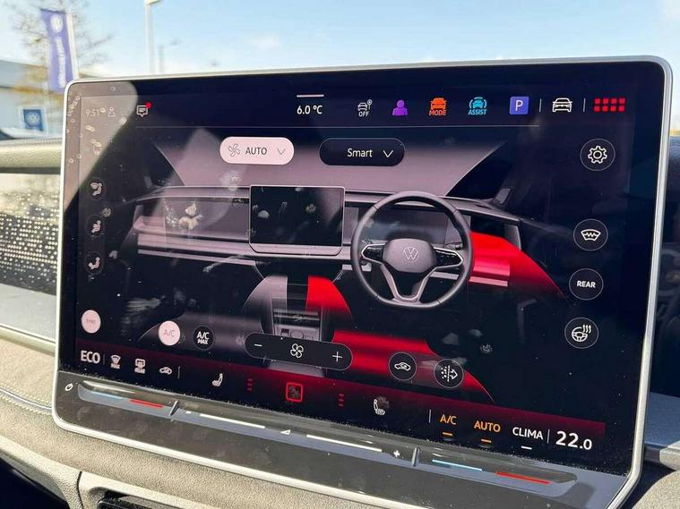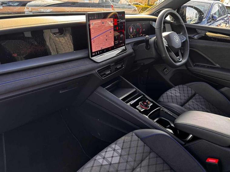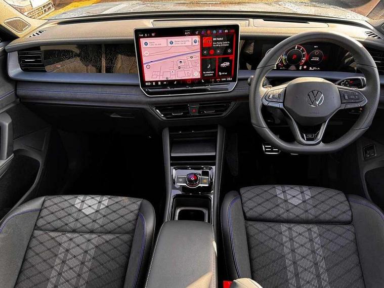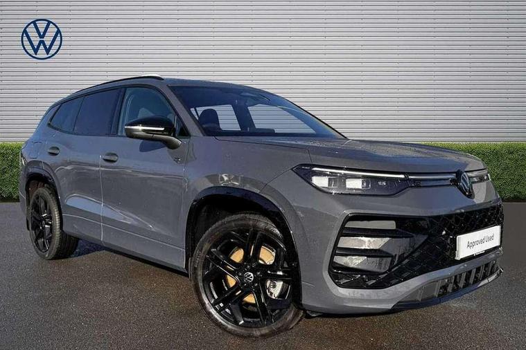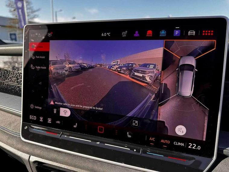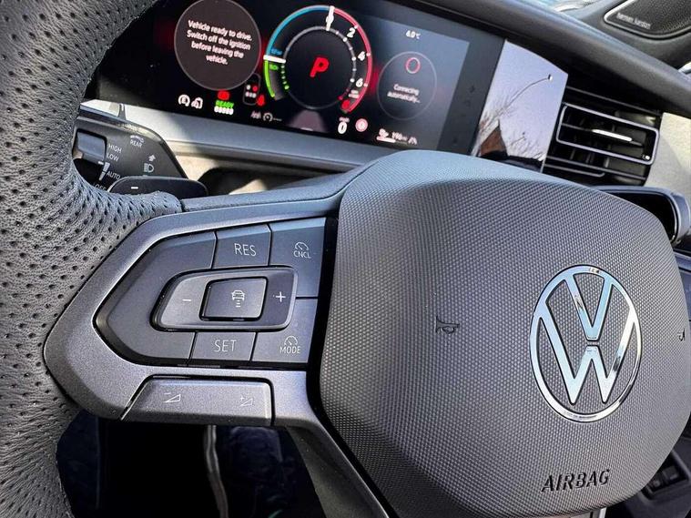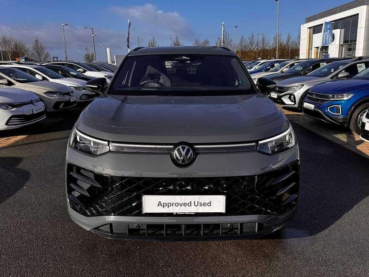 Adaptive cruise control (ACC), Digital Cockpit Pro - 10.25" high resolution dash display screen with customisable menus and information, Driver alert system, Driver attention monitoring system, Dynamic road sign display, E-Sim card for online connectivity, eCall emergency call system, Lane change system, Side assist, Rear traffic alert and Exit warning system, Multifunction front facing camera, Oncoming vehicle braking when turning including swerve support, Progressive steering, Start/stop system with regenerative braking, Voice activation spoken voice commands for telephone and navigation system, Warning signal and warning light for front and rear seatbelts not fastened, Wireless App-Connect, Adaptive chassis control DCC pro includes driving mode selection, Charging cable Mode 2 Type 2 / G (10A), Charging cable Mode 3 Type 2 / 3 (16A), Front shock absorption G08, Front wheel drive, Rear shock absorption, Digital radio reception (DAB), Diversity antenna for FM reception, Air intake with Chrome trim, Auto dimming interior rear view mirror, Automatic headlight control system, Body colour door handles, Chrome moldings on the side windows, Coming/leaving home lighting function, Dynamic headlight range control with dynamic cornering light, Exterior mirrors convex on the left and aspherical on the right, Heat insulating glass in side and rear windows, Illuminated Volkswagen logo rear with animation, Laminated safety glass windshield, heat insulating, LED 3rd brake light, LED separate signature day time running light, Puddle lights, Rain sensor windscreen wipers, Rear fog light on one side, reversing light on both sides, Rear side wing doors, Rear wiper, Reverse activated passenger's door mirror, Surround lighting with welcome light, Tilting and sliding panoramic sunroof with rear panoramic sunroof, Volkswagen logo in front, illuminated lighting animation with wake up/goodbye scenario and illuminated door handles, 10 colour interior ambient lighting, 12V outlet in center console rear and in luggage compartment, 3 rear headrests, 3 rear seat bench in 2nd row, split folding, longitudinally movable and folding with load-through hatch, Black roof lining, Brushed stainless steel pedals, Carpet mats, front and rear, Centre console with illuminated storage compartment with sliding cover and two drinks holders, Chrome elements on the mirror switch and power window switches and door pulls, Door and side trim panel insert in Art velour, Flat luggage compartment floor, Front centre armrest, Front scuff plates in aluminium, ISOFIX anchors for child seats on outer rear seats and front passenger seat compatible with i-Size, Mechanical rear seat release, Power adjustable lumbar support in front, Single front passenger seat, Sports comfort seats in front, Sun visors with illuminated vanity mirrors, Comfort package with park assist pro - Tayron, 3 Point seat belts in front with pretensioners, 3 point seatbelts in outer rear with ECE label, Autonomous emergency braking front assist with pedestrian and cyclist monitoring, Driver and front passenger airbag with front passenger airbag deactivation, Electronic parking brake with auto hold, First aid kit with warning triangle and safety vest, Front and rear curtain airbags, Front and rear side airbags, Front centre airbag, Front disc brakes, Hill start assist, Rear disc brakes, Two tone horn, Decorative material set R-Line, Interior door handle in matte chrome,