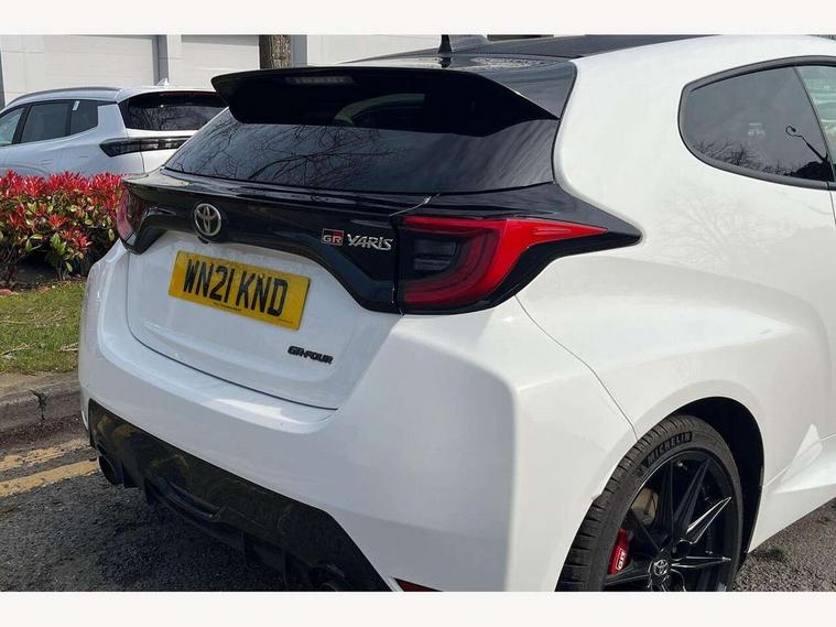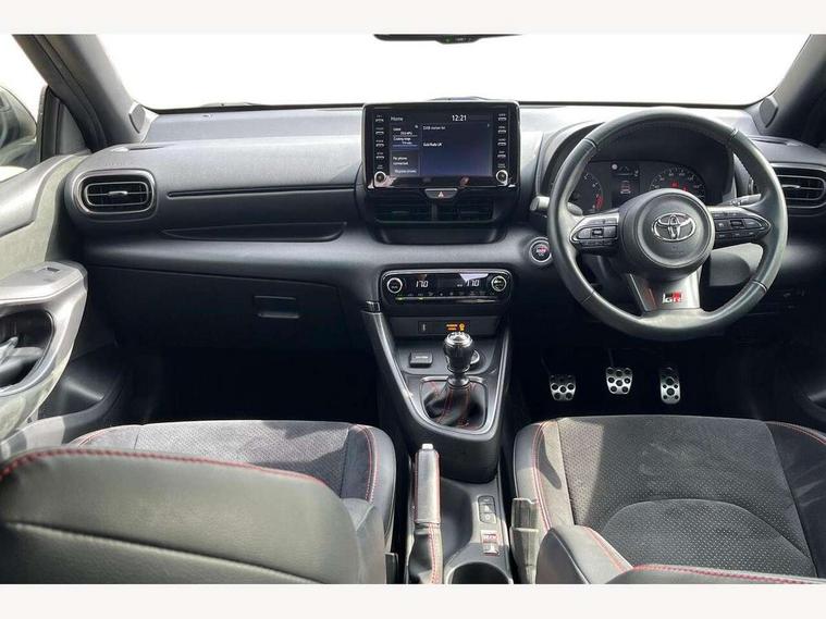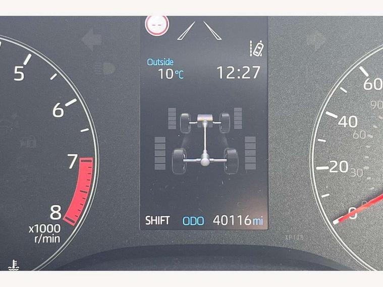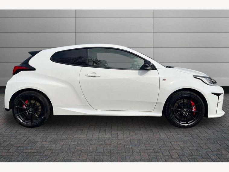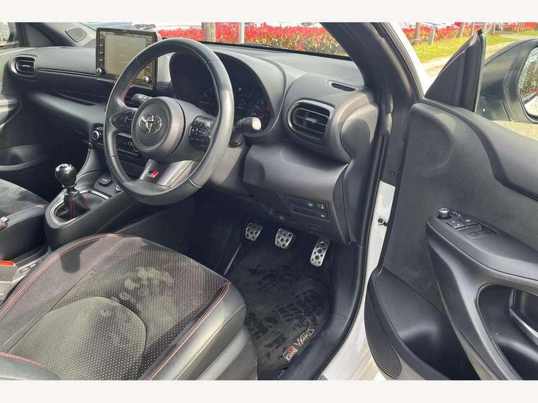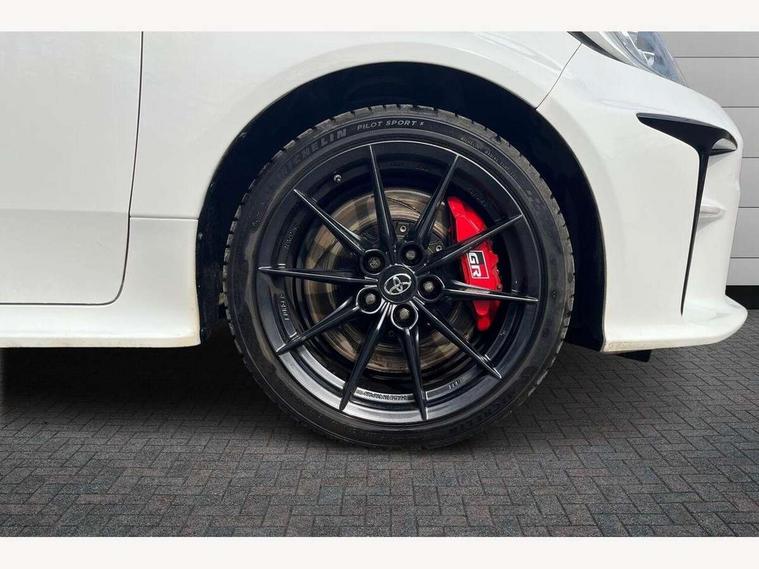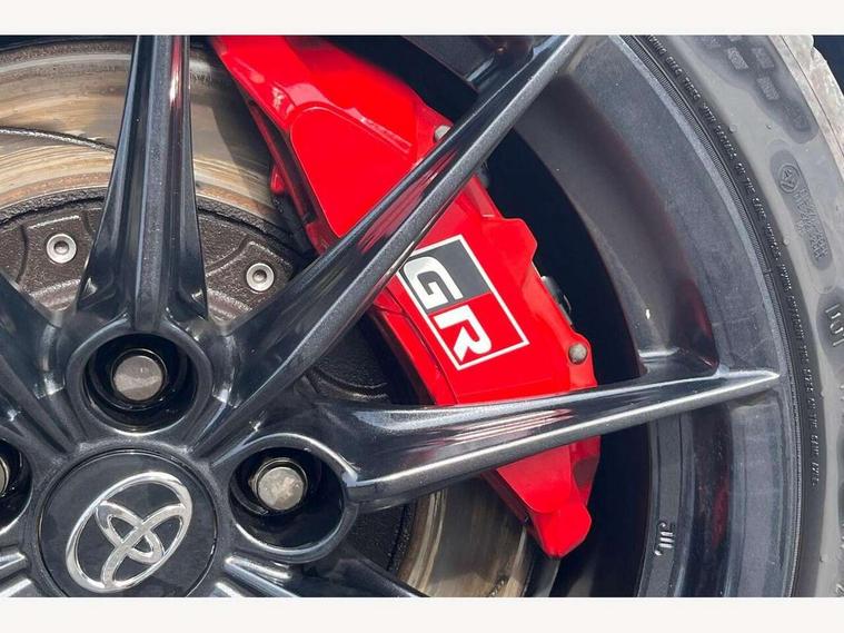 Apple car play/Android Auto, Coloured TFT multi informational display, eCall emergency system, Emergency steering assist, Intelligent adaptive cruise control, Lane Departure Alert (LDA) switch on steering wheel, Lane trace assist, Power Steering, Pre-collision system (PCS), Reversing camera, Road sign assist - RSA, Circuit tuned GR suspension, Double wishbone rear suspension, GR-Four AWD switch, MacPherson front suspension, Vehicle Stability Control (VSC), 6 speakers, 8" Multimedia display touch screen, DAB Digital radio, Toyota touch 2 multimedia system, USB connection, Adaptive high beam assist, Adaptive LED Headlights, Air intakes for brake cooling, Auto dimming eletrochromatic rear view mirror, Auto windscreen wipers, Automatic headlights, Automatic headlights cut-off, Automatically retractable door mirrors, Black contrasting colour door mirrors, Black rear spoiler, Body coloured door handles, Body coloured rear bumper, Carbon fibre roof wrap, Door scuff plates, Dual exhaust pipes, Electric adjustable heated door mirrors, Follow me home headlights, Front auto power windows with anti jam protection, Gloss black GR front bumper, GR badges 1 front, 1 rear and 2 sides, GR lower front grille, Integrated LED indicators in door mirrors, LED daytime running lights, LED fog lights, LED High mounted stop lamp, LED rear combination lights, Piano black side air vents, Privacy glass on rear and back windows, Rear auto power windows with anti jam protection, Rear window defogger, Shark fin antenna, 12v socket in front, 2 rear head restraints, 3 spoke leather sports steering wheel, 60/40 split folding rear seat, Aluminium pedals, Clean air filter, Driver and passenger headrests, Driver's sun visor with vanity mirror, Dual zone automatic air conditioning, Front bottle holders, Front cup holders, Front map light, Front sports seats, GR floor mats, GR logo on steering wheel, GR Ultrasuede leather upholstery, Height adjustable driver's seat, Isofix child rear seat restraints, Leather gearshift, Leather handbrake, Manual slide adjustable on driver's and passenger seats, Microphone on front personal light, Multimedia switch on steering wheel, Pollen filter, Red stitching on gearshift, Red stitching on handbrake lever, Satin chrome interior door handles, Soft tonneau cover, Ticket holder on driver's sun visor, Tilt/telescopic steering column, ABS with Brake Assist, Airbags - driver and front passenger, Driver and passenger side airbags, Emergency brake light system (EBS), Front passenger airbag on/off switch, Front seatbelt reminder, Hill start assist control (HAC), Rear passenger airbag, Rear seat belt reminder, Red brake callipers, Red sport front and rear brake pads, Start holding control, Torsen limited slip differentials x2, Tyre pressure warning system, Alarm/immobiliser, Keyless smart entry with push button start, 18" 10 spoke forged alloy wheels with Michelin pilot sport, Tyre repair kit,