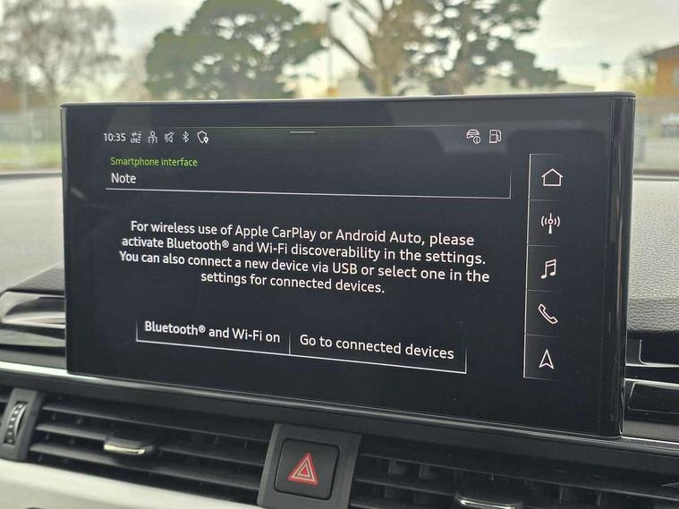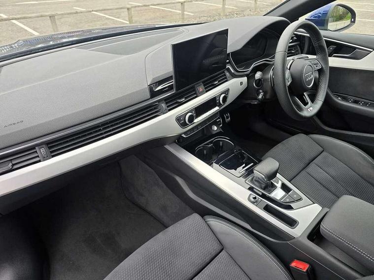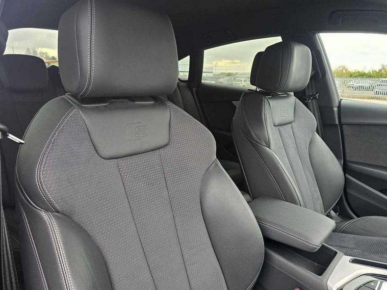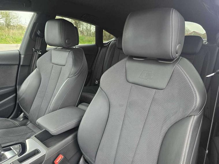 Audi connect safety and service (e-call), Audi connect with Amazon Alexa Integration, Audi drive select (Auto, Comfort, Dynamic, Efficiency and Individual), Audi parking system plus with front and rear sensors, Audi smartphone interface, Audi virtual cockpit - 12.3" full colour digital instrument cluster, vehicle/engine speed, Radio/media information+Driver assistance systems, Automatic start-stop system with coasting functionality and efficiency programme, Bluetooth interface, Electro-mechanical power steering, Email, calendar and text messages displayed via MMI, MMI nav+ with MMI touch - 10.1" high resolution MMI display, touch sensitive, 3D map, route/country info, dynamic route guide, personal route assist, Power operated tailgate, Rear view camera, Service interval indicator, Voice control system, Diesel particulate filter, Sports suspension lowered by 23mm, 8 passive loudspeakers, CD player, DAB digital radio reception, Two additional USB ports for rear passenger in rear centre console, Two SDXC card slots, Auto dimming door mirrors, Auto dimming rear view mirror, Body colour bumpers, Body colour door handles, Body colour front spoiler lip, Body colour side sill trim, Body coloured door mirrors, Electric adjustable heated door mirrors, Electric folding door mirrors, Electric front windows, Front fog lights, Honeycomb structure radiator grille in grained matt black, Kerb-view function for passenger side, LED headlights and rear lights with LED daytime running lights, LED side indicator lights integrated into door mirrors, LED third brake light, Matt aluminium silver tailpipe trim, Privacy glass, Rain and light sensors, Rear side wing doors, Rear wiper, S line badges on front wings, S line front and rear bumpers with side skirts, S Line rear diffuser in matt anthracite black with trim strip in matt aluminium silver, Side air inlets in grained matt black with matt aluminium silver inlay, Variable front intermittent wipers, Windscreen with acoustic glazing, 3 seat bench in 2nd row, 3 spoke high multifunction leather sport steering wheel with paddle shfit and S badging perforated leather grips, 4 way electric lumbar support for driver and front passenger, 40/20/40 split folding 3 seater rear bench seat, Adjustable steering column, Black cloth headlining, Black perforated leather gearknob, Contrast stitching on seats, steering wheel and gear lever gaiter, Deluxe 3 zone electronic climate control, Front centre armrest, Front head restraints, Front/rear floor mats, Heated front seats, Illuminated door sill trim with S logo, ISOFIX child seat mounting and top tether, Luggage compartment mat, Manual seat adjustment, Rear centre armrest, Rear headrests, Single front passenger seat, Stainless steel pedals, Sunvisors with vanity mirrors, LED interior light pack - A5/RS5, 3x3 point rear seatbelts, 6 airbags - Driver, front passenger, curtain and side airbags, Electromechanical parking brake, Electronic Stabilisation Control (ESC) including ABS, ASR and EDL, Front passenger airbag deactivation, Height adjustable front seatbelts, Hill hold assist, Manual child lock in rear doors, Multi collision brake assist, Pop-up bonnet for pedestrian protection, Pre sense city, Seatbelt monitoring, Tyre pressure warning, Variable restraint system, Warning triangle and first aid kit, Anti theft alarm system, Anti theft wheel bolts, Immobiliser, Keyless Go, Remote central locking, Matt brushed aluminium inlays, Tool kit, Tyre repair kit,