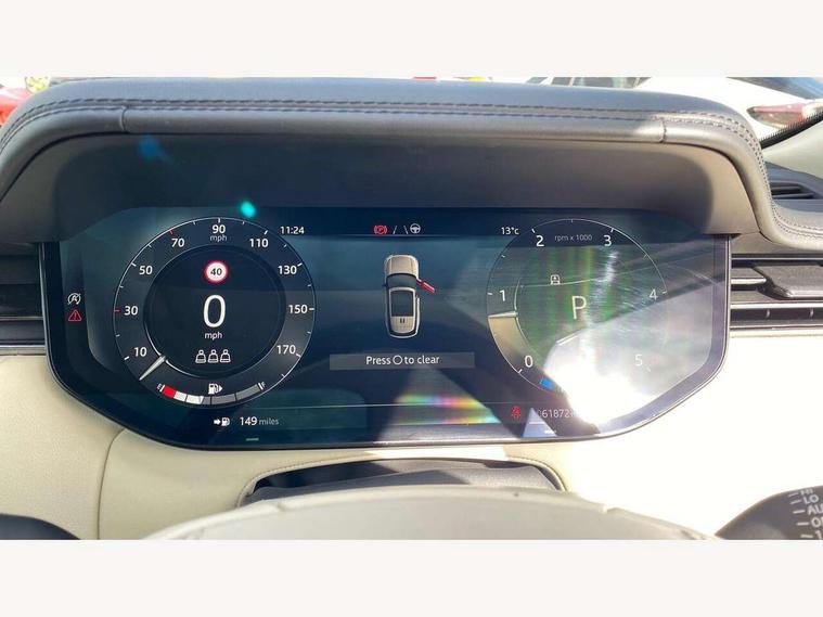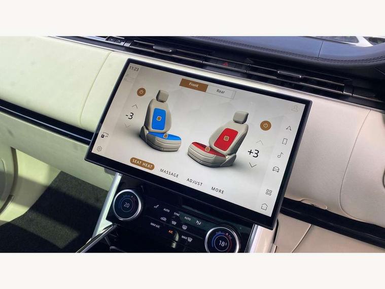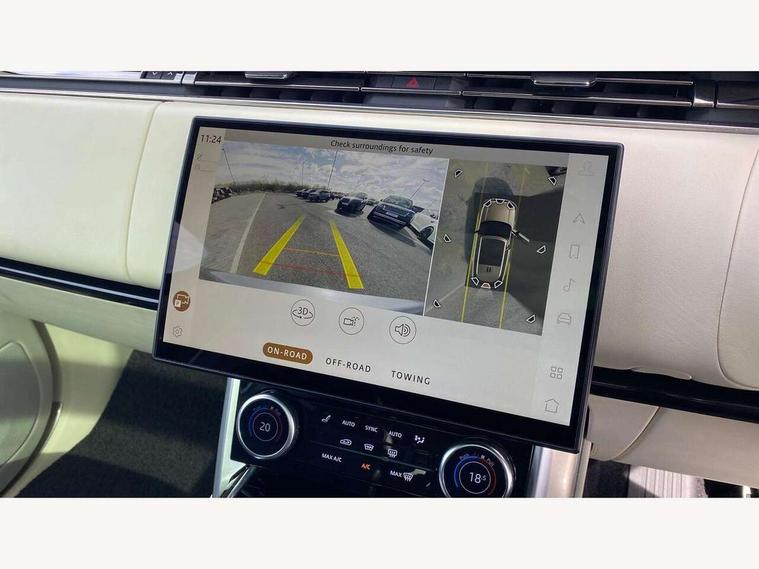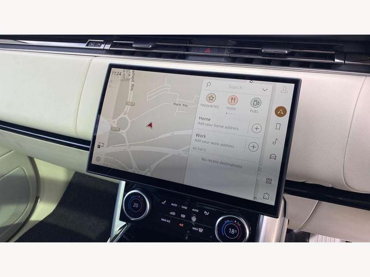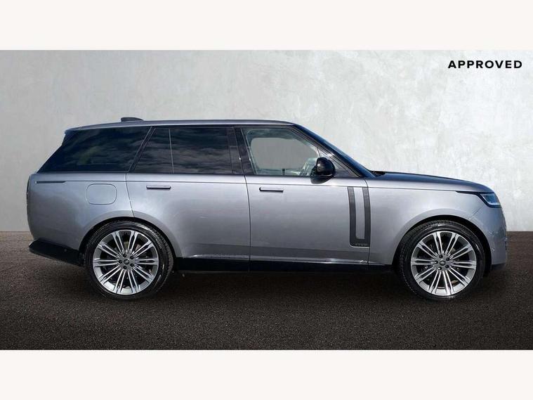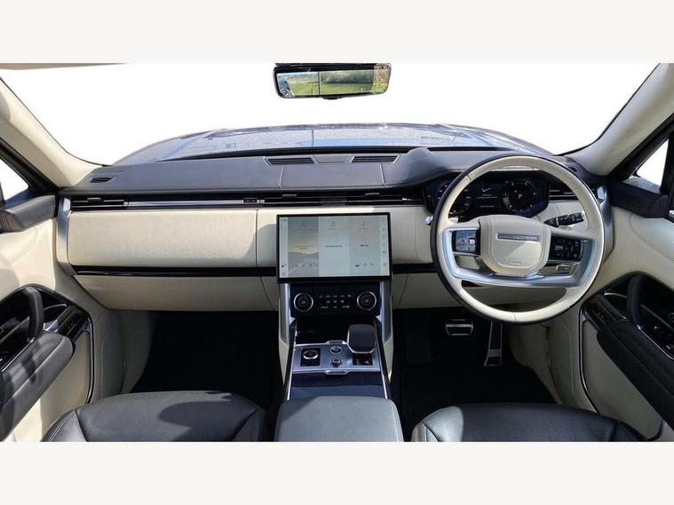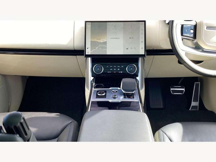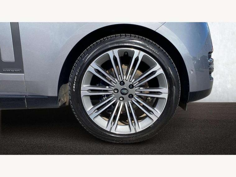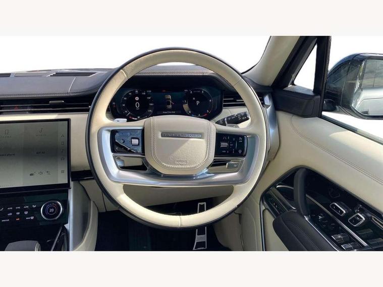13.1" Touchscreen, 3D surround camera inc frwd traffic detection, vehicle clearance guidance, 3D view, clearsight ground view, manoevure light, 360 parking aid, wade sensing, Adaptive cruise control with steering assist, All Terrain Info Centre, All wheel steering, Android Auto, Apple car play, Blind spot assist, Bluetooth connectivity streaming, Configurable programs, Driver condition response, Eco mode, Electric power assisted steering (EPAS), Emergency call service, Front and rear parking aid, Head up Display, Interactive driver display, Lane keep assist, Powered gesture tailgate/boot lid, Rear collision monitor, Rear traffic monitor, Remote, Traffic sign recognition with adaptive speed limiter, Wi-Fi Enabled with data plan, Wireless device charging with phone signal booster, 8 speed automatic transmission, Active damper technology system, Adaptive dynamics, All terrain progress control, All Wheel Drive (AWD), Automatic access height, Electronic active differential with torque vectoring by braking, Electronic air suspension with dynamic response, Terrain Response 2 Auto, Twin speed transfer box, Digital Audio Broadcast radio-DAB, Meridian 1600W signature sound system, Pivi pro including smart settings, Connected navigation pro, nuance speech, USB socket, Acoustic laminated windscreen, Animated directional indicators, Automatic headlights, Automatic levelling headlights, Centre high mounted stop light, ClearSight interior rear view mirror, Electric windows with one touch open/close and anti trap, Flush deployable exterior door handles, Front and rear recovery eyes, Front fog lights, Headlamp power wash, Heated rear window, Heated washer jets, Illuminated metal treadplates with Autobiography script, Laminated front and rear side glass, LED tail lights, Power fold, auto-dimming, heated door mirrors with approach lights, Rain sensing windscreen wipers, Rear boot, Rear fog lights, Rear side wing doors, Rear wash/wipe, Side repeater indicators in mirror, Solar attenuating windscreen, Trailer stability assist, Winter wiper park position, 12V power sockets, 3 seat bench in 2nd row, Air quality sensor, Auto folding loadspace cover, Bright metal pedals, Cabin air purification pro, Cabin lighting, Customer configurable single point entry, Driver and passenger front seat armrests, Easy boot loading, Ebony Carpet, Electric rear side window sunblinds, Four zone climate control, Front and rear cupholders, Front and rear grab handles, Front head restraints, Gearshift paddles, Heated steering wheel, Hook in load space, Loadspace light, Luggage tie down in loadspace, Multifunction steering wheel, Rear centre armrest, Rear head restraints, Rear ISOFIX, Single front passenger seat, Soft close doors, SV bespoke carpet mats, Twin blade sunvisors with Illuminated vanity mirrors, Upper and lower glovebox, Versatile loadspace floor in tailgate, Online pack with data plan - Range Rover, 3x3 point rear seat belts, Anti-lock braking system (ABS), Black brake calipers, Brake hold function, Cornering brake control (CBC), Customer configurable autolock, DSC - Dynamic Stability Control, Electronic brake force distribution, Electronic parking brake, Electronic traction control, Emergency brake assist, Emergency braking, Front airbags with passenger seat occupant detector, Front side airbags, Hill descent control, Hill launch assist, Illuminated seat belt buckles, Low traction launch, Occupant protection assist, Power operated child locks, Roll stability control, Tyre pressure monitoring system (TPMS), Immobiliser, Intrusion sensor and alarm, Keyless entry, Locking wheel nuts, Remote central locking, Noble chrome controls,
