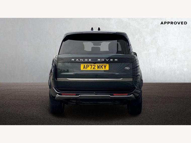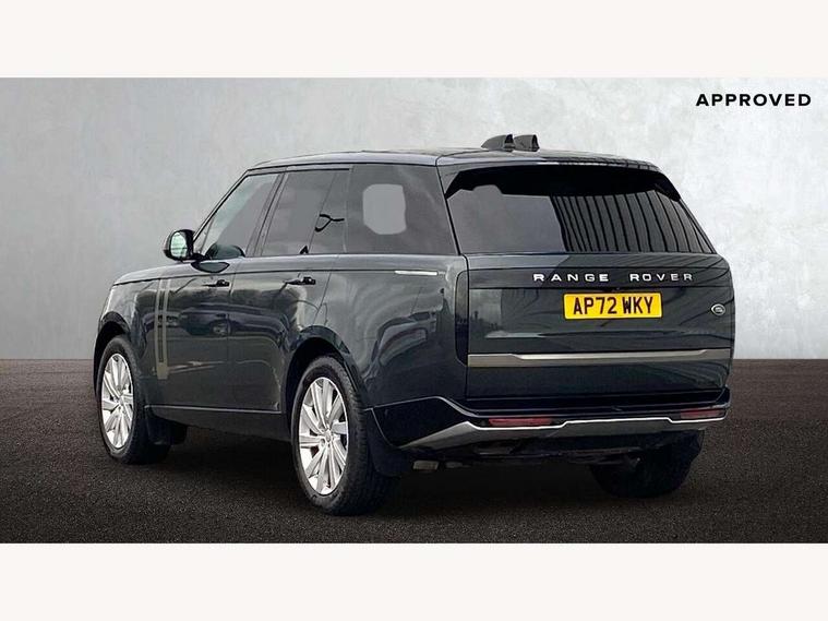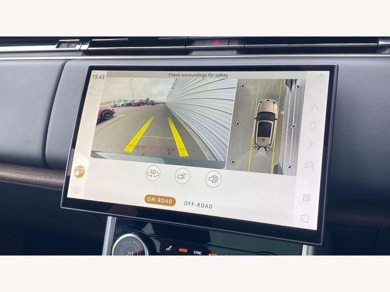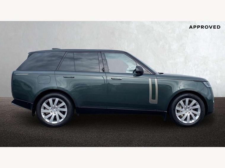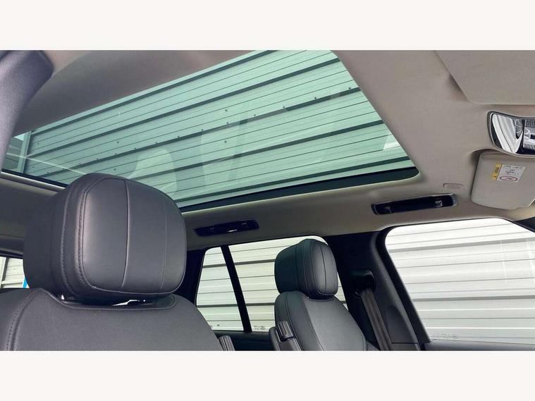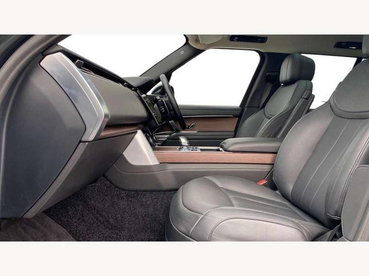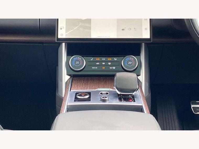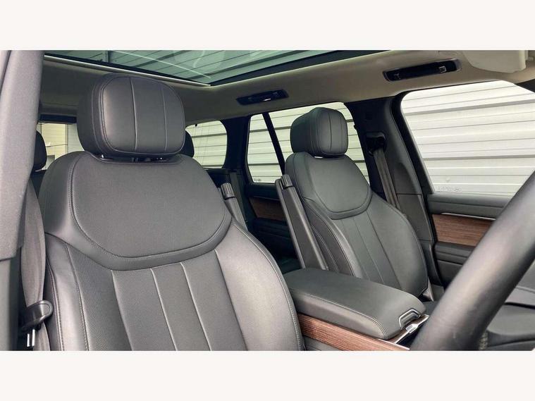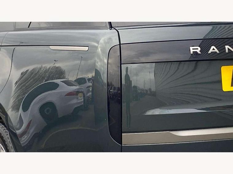 13.1" Touchscreen, 3D surround camera inc frwd traffic detection, vehicle clearance guidance, 3D view, clearsight ground view, manoevure light, 360 parking aid, wade sensing, Adaptive cruise control with steering assist, All Terrain Info Centre, All wheel steering, Android Auto, Apple car play, Blind spot assist, Bluetooth connectivity streaming, Driver condition response, Eco mode, Electric power assisted steering (EPAS), Emergency call service, Front and rear parking aid, Interactive driver display, Lane keep assist, Powered gesture tailgate/boot lid, Rear collision monitor, Rear traffic monitor, Remote, Traffic sign recognition with adaptive speed limiter, Wi-Fi Enabled with data plan, Wireless device charging with phone signal booster, 8 speed automatic transmission, Active damper technology system, Adaptive dynamics, All terrain progress control, All Wheel Drive (AWD), Automatic access height, Electronic active differential with torque vectoring by braking, Electronic air suspension with dynamic response, Terrain Response 2 Auto, Twin speed transfer box, Digital Audio Broadcast radio-DAB, Pivi pro including smart settings, Connected navigation pro, nuance speech, USB socket, Acoustic laminated windscreen, Animated directional indicators, Automatic headlights, Automatic levelling headlights, Centre high mounted stop light, Electric windows with one touch open/close and anti trap, Flush deployable exterior door handles, Front and rear recovery eyes, Front fog lights, Headlamp power wash, Heated rear window, Heated washer jets, LED tail lights, Power fold, auto-dimming, heated door mirrors with approach lights, Rain sensing windscreen wipers, Range rover badge, Rear boot, Rear fog lights, Rear side wing doors, Rear wash/wipe, Side repeater indicators in mirror, Trailer stability assist, Winter wiper park position, 12V power sockets, 3 seat bench in 2nd row, Air quality sensor, Bright metal pedals, Cabin lighting, Customer configurable single point entry, Driver and passenger front seat armrests, Easy boot loading, Ebony Carpet, Front and rear cupholders, Front and rear grab handles, Front head restraints, Gearshift paddles, Heated steering wheel, Hook in load space, Loadspace light, Luggage tie down in loadspace, Multifunction steering wheel, Rear centre armrest, Rear head restraints, Rear ISOFIX, Single front passenger seat, Soft close doors, Twin blade sunvisors with Illuminated vanity mirrors, Upper and lower glovebox, Online pack with data plan - Range Rover, 3x3 point rear seat belts, Anti-lock braking system (ABS), Brake hold function, Cornering brake control (CBC), Customer configurable autolock, DSC - Dynamic Stability Control, Electronic brake force distribution, Electronic parking brake, Electronic traction control, Emergency brake assist, Emergency braking, Front airbags with passenger seat occupant detector, Front side airbags, Hill descent control, Hill launch assist, Low traction launch, Occupant protection assist, Power operated child locks, Roll stability control, Tyre pressure monitoring system (TPMS), Immobiliser, Intrusion sensor and alarm, Keyless entry, Locking wheel nuts, Remote central locking, Noble chrome controls,
