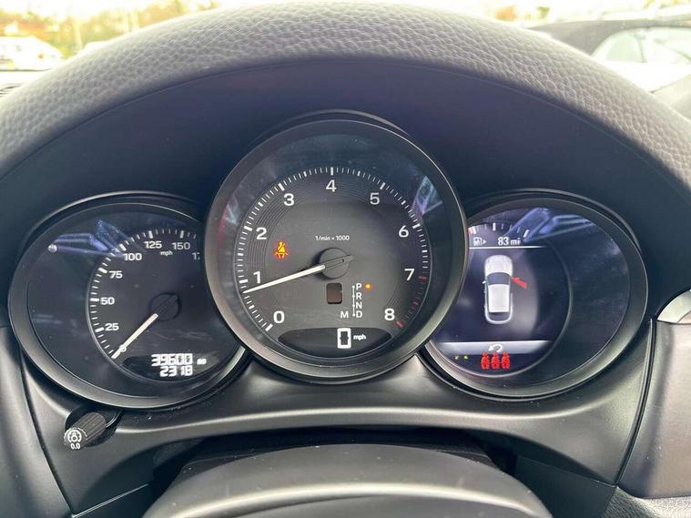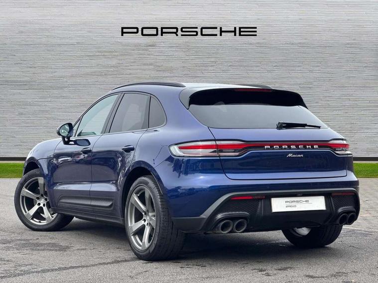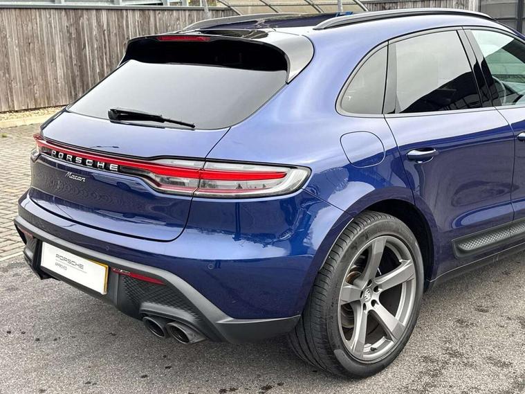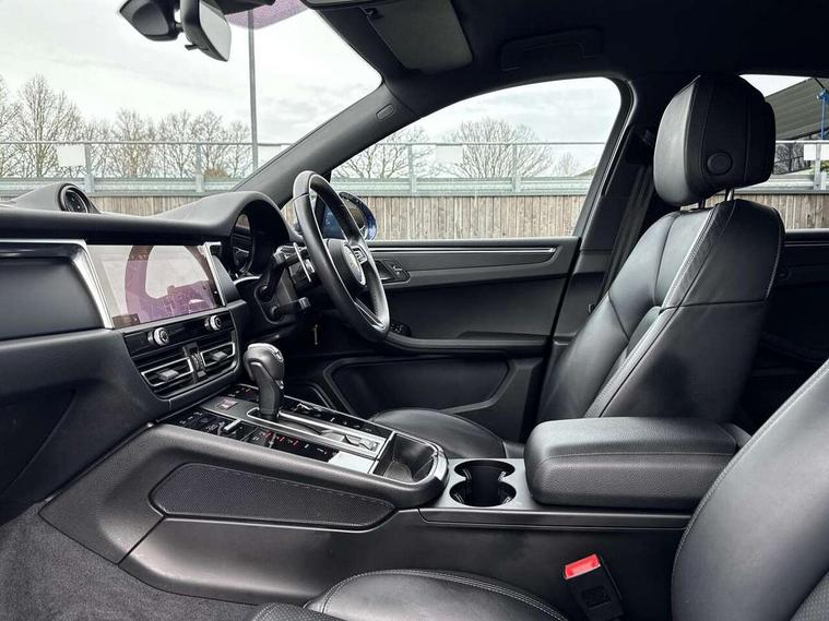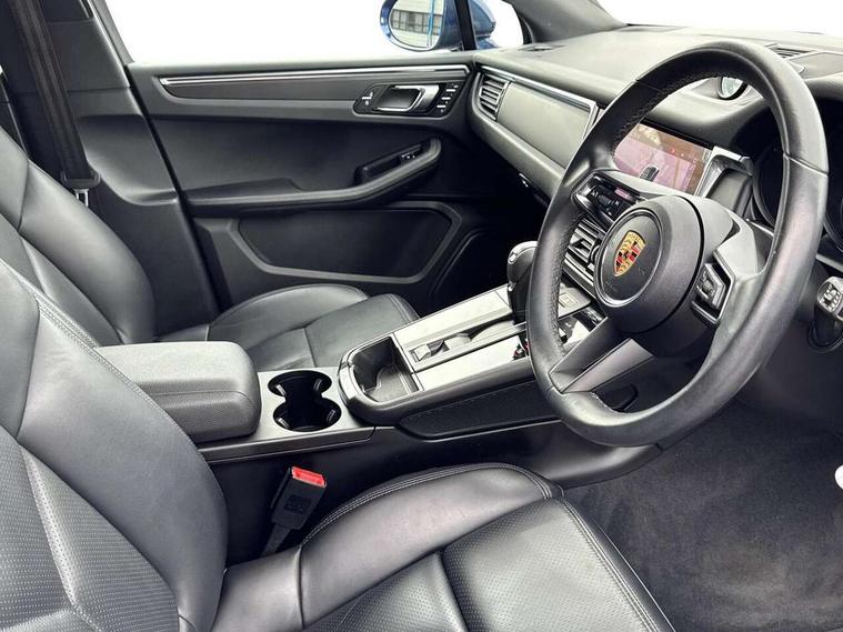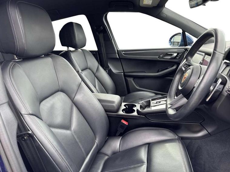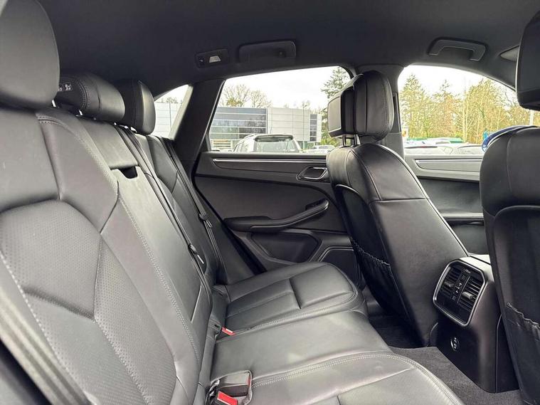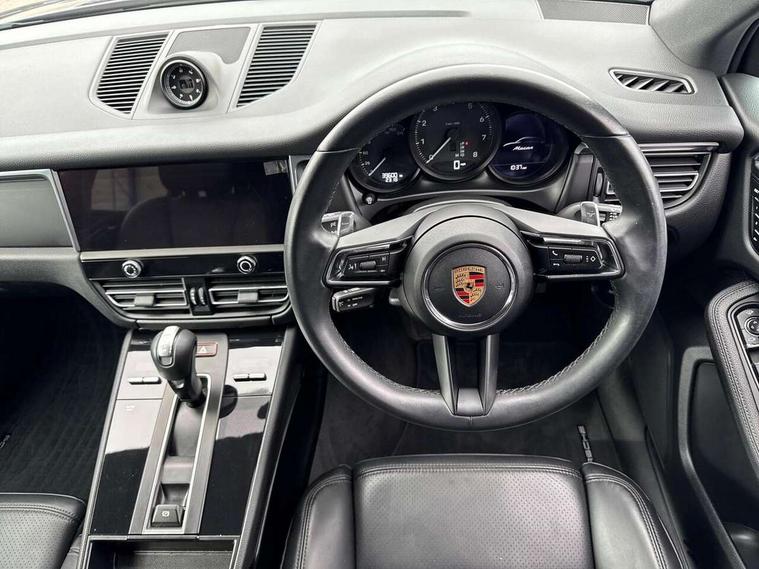 Analogue clock on dashboard, Automatic start/stop system, Automatic tailgate, eCall emergency call system, Instrument cluster with high resolution 4.8-inch TFT display, gear indicator for PDK, service interval display, external temperature indicator, fuel gauge, Off-road button, On board computer, Porsche Communication Management (PCM) including online navigation module, mobile phone preparation, audio interfaces and voice control system, Sports button in centre console, 7-Speed Porsche Doppelkupplung (PDK) with automatic mode and manual controls (gearshift paddles) on steering wheel, Direct fuel injection (DFI), Gasoline particulate filter, VarioCam camshaft control for inlet and exhaust valves, 2 USB sockets in rear centre console, Apple CarPlay with Siri voice recognition, Connect Plus including online navigation, LTE communication module with SIM card reader, wireless internet access, Porsche Car Connect services, DAB Digital radio, Porsche Vehicle Traking System Plus (PVTS Plus), Smartphone compartment with wireless charging, Two USB C charging and connectivity ports in the front centre console storage compartment, Active radiator grille shutters, Automatic headlight activation including welcome home lighting, Bumper system with high strength cross members and two deformation elements + One threaded fixture point for towing eye contained in onboard tool kit, Dynamic cornering lights, speed-sensitive headlight and dynamic range control, adverse weather function, four-point LED daytime running lights, Electric front and rear windows with remote closing function + anti trap + one touch, Electrically folding and heated exterior mirrors, Front light modules with LED position lights and direction indicators, Front windscreen wipers with two speeds, intermittent wipe and rain sensor, Front with integrated cooling air intakes, Fully galvanised body, Heated rear window with automatic switch off, High level 3rd LED brake light integrated into roof spoiler, Loading edge protection in aluminium, Rear side wing doors, Rear window wiper with intermittent function and washer jet, Roof spoiler in high gloss black, Towbar preparation, 3 adjustable rear headrests, 3 rear seats, 3 zone auto climate control separate temperature setting+air recirculation include quality sensor, airflow regulation+AC MAX button+humidity sensor, 4 way adjustable front head restraints, 40:20:40 split folding rear bench seat, Cloth hook b-pillar, Fold up centre console armrest with fore/aft adjustment, Front and rear bottle holders in door panels, Front passenger seat, Glove compartment, Isofix fastening system for child seats on outer rear seats, Luggage compartment cover, Particle/pollen filter with active carbon filter, Rear armrest with 2 cupholders, Storage bin in centre console, Storage compartment in side of luggage compartment and storage compartment in spare wheel recess, Storage pocket in front and rear doors, Two integrated cup holders in front with variable diameter, Two socket 12V power outlets in front console and luggage compartment, Uncovered storage compartment in centre console, Ambient comfort lighting pack - Macan, Lower exterior trim package in black - Macan, 3-point automatic seatbelts with front and outer rear seats pretensioners and force limiter + manually height adjustable seatbelt + reminder warning, Auto hold function, Black painted brake calipers, Child locks on rear doors, Curtain airbags along entire roof frame and side windows from A pillar to the C pillar, Electronic parking brake, Front passenger airbag deactivation facility for installation of child seats indicator in overhead console, Front side airbags integrated into seat, Full size driver and passenger airbags, Internally vented brake discs with diameter of 350mm at front and 330mm at rear, Multi-Collision braking, Porsche hill control (PHC), PTM(Porsche Traction Management) and All-wheel drive with map-controlled multi-plate clutch, Roll over sensor for curtain airbag and seatbelt pretensioners, Side impact protection in doors, Tyre pressure monitoring system, Vehicle stability system, Porsche stability management (PSM) including ABS, ASR, ABD, MSR and trailer stability management, Vented discs brake with 4 piston aluminium monobloc fixed caliper at front, Vented discs brake with combination floating calipers at rear, Alarm system with ultrasonic interior surveillance, Dashcam prep, Engine immobiliser with key transponder, Remote control central locking, Accent trims with silver coloured finish,